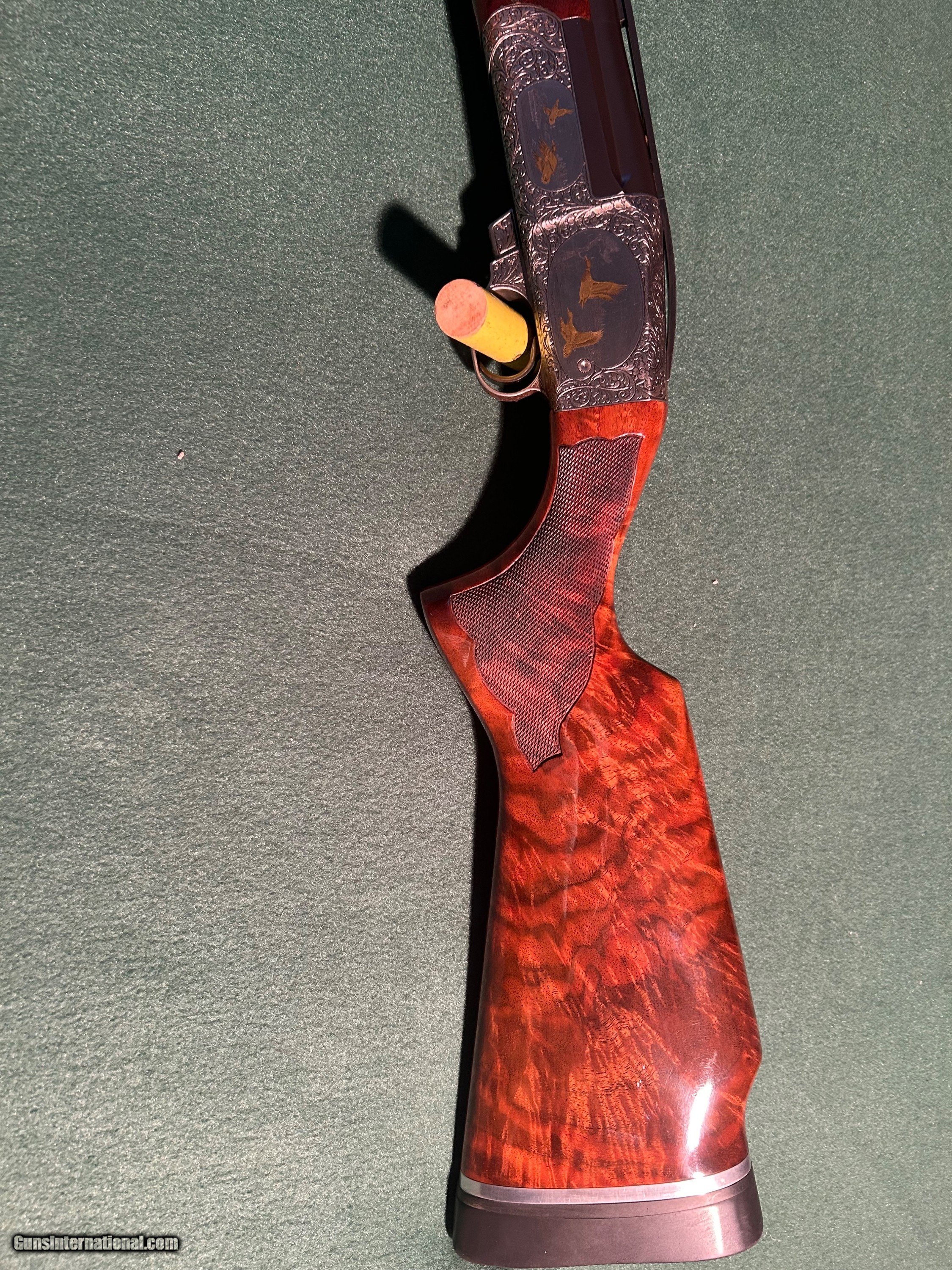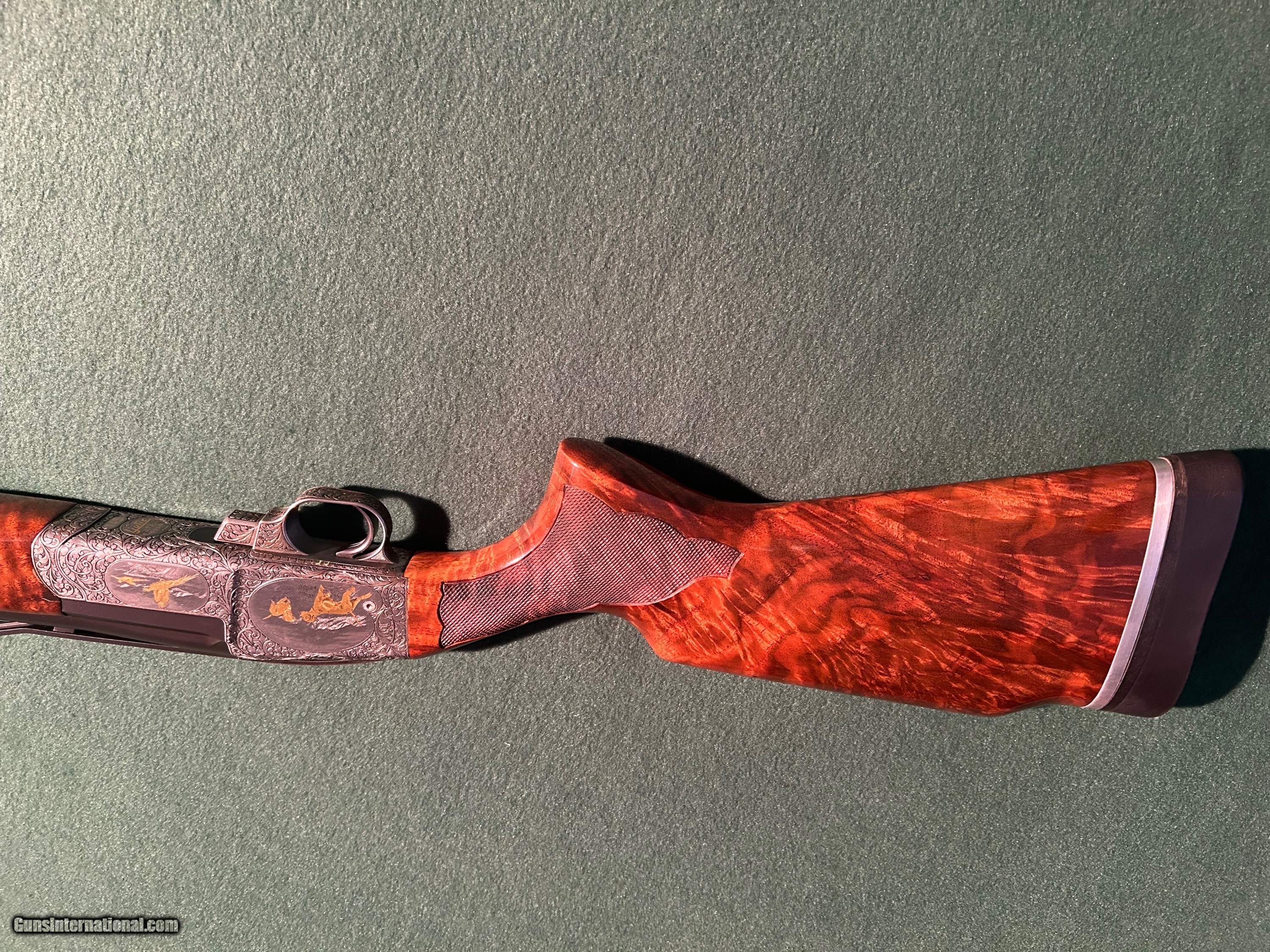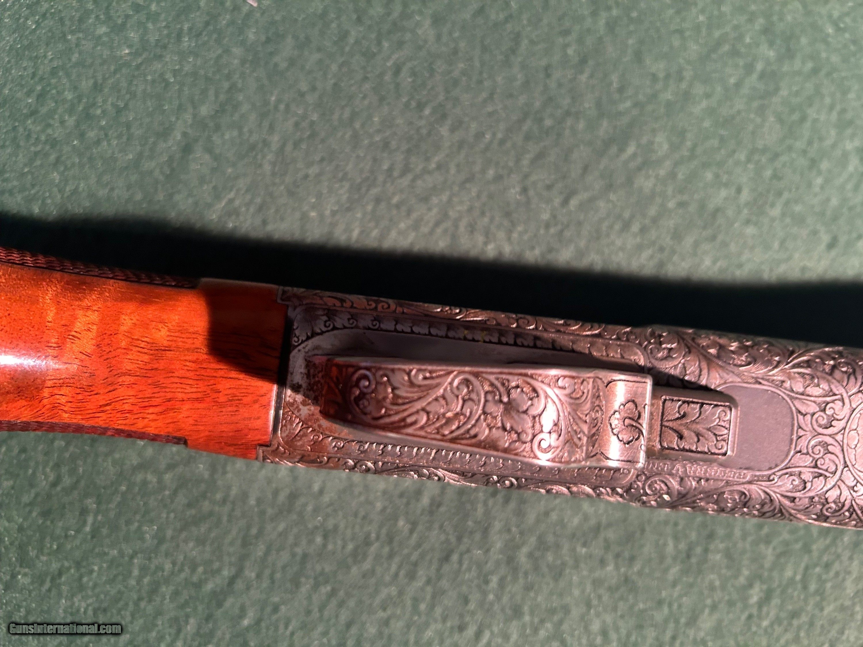 Description: Used but still very nice .LOP 15.50. Nice wood and steel. Some dings and small scratches on wood 1" thick kickers recoil pad . Medium height rib. 2 beads cast off. Very nice engraving and gold inlays by Revera. Small oxidation behind the trigger guard. Shotgun Gauge: 12 Gauge Manufacturer: Ljutic Model: LTX gold Serial Number: 145 Barrel Length: 33” Chambers: 2/34 Ejectors: Pops out empty Condition: Very good Metal Condition: Very good Wood Condition: Very good Bore Condition: Shiny Barrels: O/u Barrel Type: Medium rib Action: Single shot Triggers: Pull Stock: Monte-carlo Stock Cast: Cast off Butt Pad: 1” kickeez LOP: 15.00 Rib: Mid Finish: Polished oil Weight: 8.8 lbs. Sights: 2bead Chokes: Full Engraving: Silver with gold inlays Extras: None Case: No Item Location: Fl. Price: $7,995.00 Shipping: $65.00 Buy Now Contact Seller |