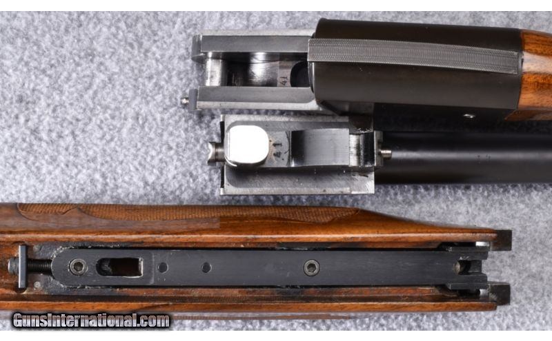 Description: This fixed rib Mono-Gun is in excellent overall condition. There are a couple handling and use marks in stock with a few areas where finish is flaking on cheek-piece. Blue remains excellent as does bore. Fully adjustable cheek-piece and butt pad. Forend h 12 Gauge SOLD Caliber Info: 12 GA Item Location: Wheeling |