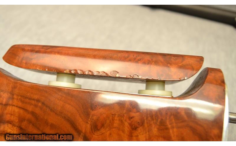 Description: This Ljutic Mono-TC (Trap Competition) is a high quality trap gun chambered in 12 gauge. It shows wear on the wood and barrel commensurate with its age and use. The gun has aftermarket additions such as adjustable rib, adjustable comb, and Kick-eez butt plate recoil reduction system. This is a finely crafted shotgun that is sure to bust clays. 12 Gauge SOLD Chambers: 2 3/4 Metal Condition: Overall -- good. Gun shows signs of wear commensurate with its age and use. Wood Condition: "Good. Some finish peeling on comb with wear marks, scratches and dents on forend and stock. Bore Condition: "Good, smooth bore. Barrels: "Smooth, Ported, 34"" Triggers: Factory Stock Dimensions: 49" Overall Gun Length. 14.5" LOP. Checkered wood. Fore End: Checkered wood forend. Butt Pad: Kick-Eez aftermarket recoil system with rubber pad. Weight: 10.15 lbs Sights: Single bead front and mid rib Chokes: None. Barrel is fixed at .700 choke Item Location: Cheektowaga, NY |