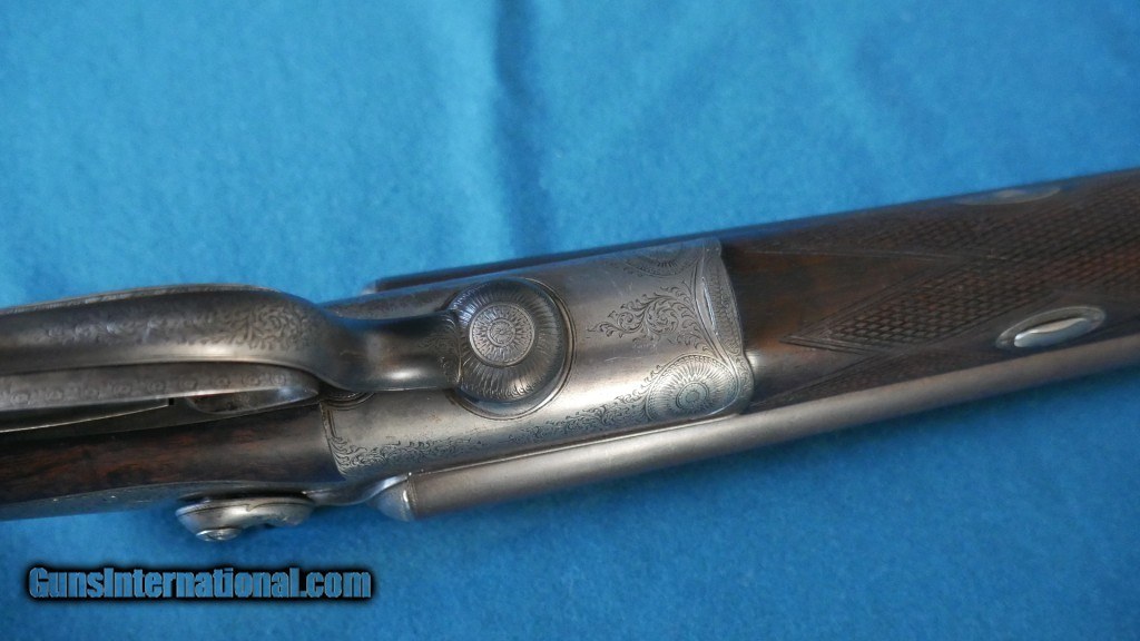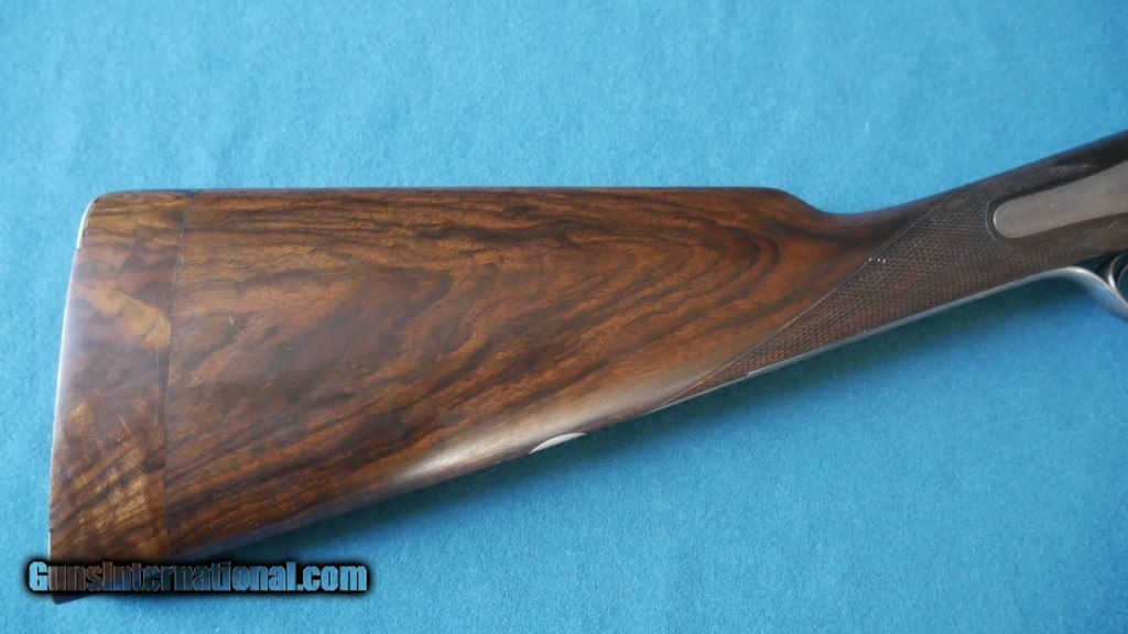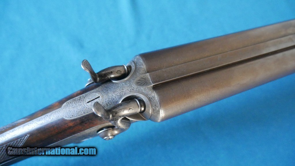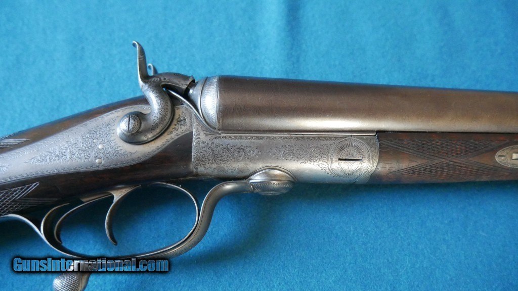 Description: A 12-BORE 1865 PATENT DOUBLE-BARRELLED ROTARY-UNDERLEVER HAMMERGUN, serial no. 12469, circa 1870, 30in. nitro reproved bold damascus barrels, the rib engraved in elaborate script 'John Manton. Son. &. Coe. Dover Street. London.', 2 3/4in. chambers, bored approx. true cyl. in both, John Emme patent extractor mechanism, patent no. 1460 of 25th May 1865, Jones patent rotary underlever, carved percussion fences, signed non-rebounding back-action locks with dolphin hammers, fine border and bold acanthus scroll engraving, 15in. stock including 1 3/8in. wooden extension with steel heel and toe plates, weight 6lb. 15oz. Shotgun Gauge: 12 Gauge Manufacturer: John Manton Model: Hammer Gun Serial Number: 12469 Barrel Length: 30 Bore Info: 12 Chambers: 2 3/4 Ejectors: No Condition: Excellent Metal Condition: Excellent Wood Condition: Excellent Bore Condition: Excellent Barrel Type: Double Action: Hammer Triggers: Double Stock: Walnut Stock Dimensions: 15" LOP Stock Drop: 1.5 inch Stock Comb: 1 1/2 inch Stock Heel: 2 Stock Cast: 1/8" off Fore End: Splinter LOP: 15 Weight: 6lb 15oz Choke Left: Skeet Choke Right: Skeet Engraving: Scroll Proof:Nitro: Yes Minimum Wall Thickness Left: 28 Minimum Wall Thickness Right: 26 Price: $4,995.00 Shipping: $150.00 Contact Seller |