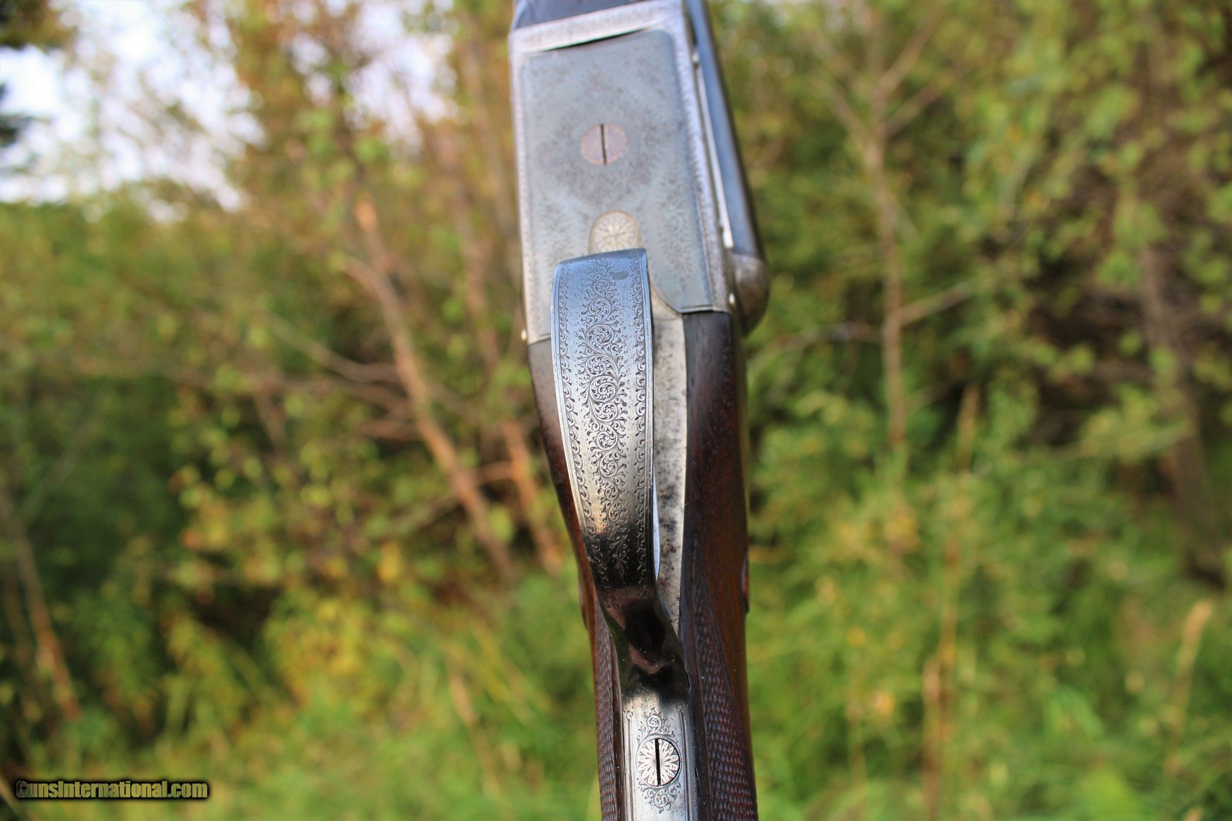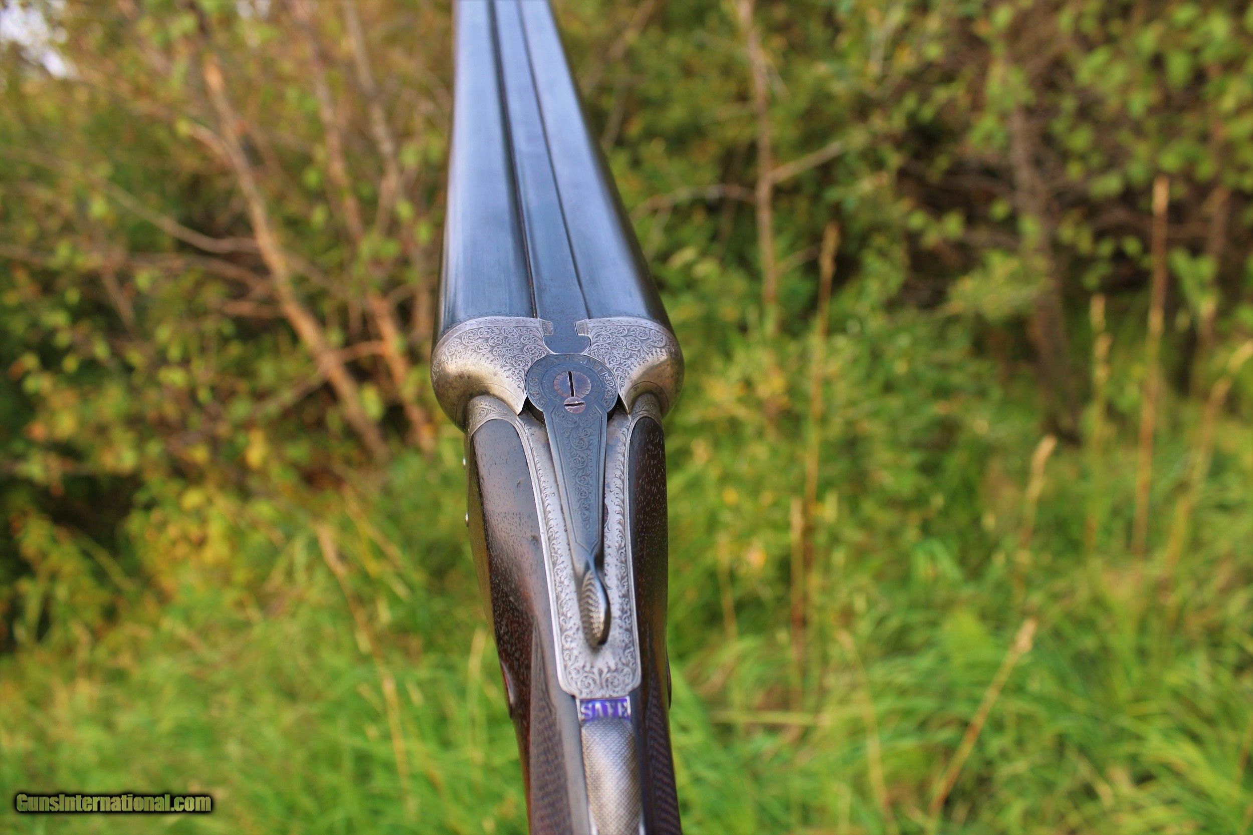 Description: SOLD Here is a rare Phillips Patent Vena Contracta boxlock ejector by Manton & Co. The 30 inch barrels taper rapidly from 12 bore at the breech to 20 bore at the muzzles. The idea behind Horatio Phillips' patent, with its exaggerated diminishing bore diameter, was to distribute the weight of the gun more effectively, with a heavier action and lighter stock. Writing in "The Field" in 1894, Phillips had this to say about his patent: "Practically speaking, the recoil and the pressure in the chamber are exactly the same as obtains in an ordinary 12-bore gun firing the same shot charge; but the vibration set up in the stock of an ordinary gun, and which is the chief factor in producing gun-headache, is almost entirely absent, the vibration being absorbed by the mass of metal surrounding the breech of the gun. Guns utilising this patent are handy in consequence of the greater portion of the weight being concentrated near the middle of the length." This particular example balances and swings beautifully. The 30" barrels have 2 1/2" chambers (they were originally proofed at 2"). They are choked .007/.015, or approximately improved cylinder/modified. (Remember: these are essentially 20 gauge tubes.) The swamped rib is engraved: MANTON & CO. GUN MAKERS TO H.R.H. THE DUKE OF EDINBURGH. K.G. LONDON & CALCUTTA. The receiver has fine border and scroll engraving. The gun locks up tight with a doll's head extension. The action features intercepting sears. The fore-end has an Anson push-rod release. The lightly figured stock measures 1 1/2" x 2" x 14 1/2" with slight cast off. The weight is a hair under 5 lbs 12 oz. An extremely unusual and absolutely beautifully handling little gun. SOLD Curio/Relic: Yes Shotgun Gauge: 12 Gauge |