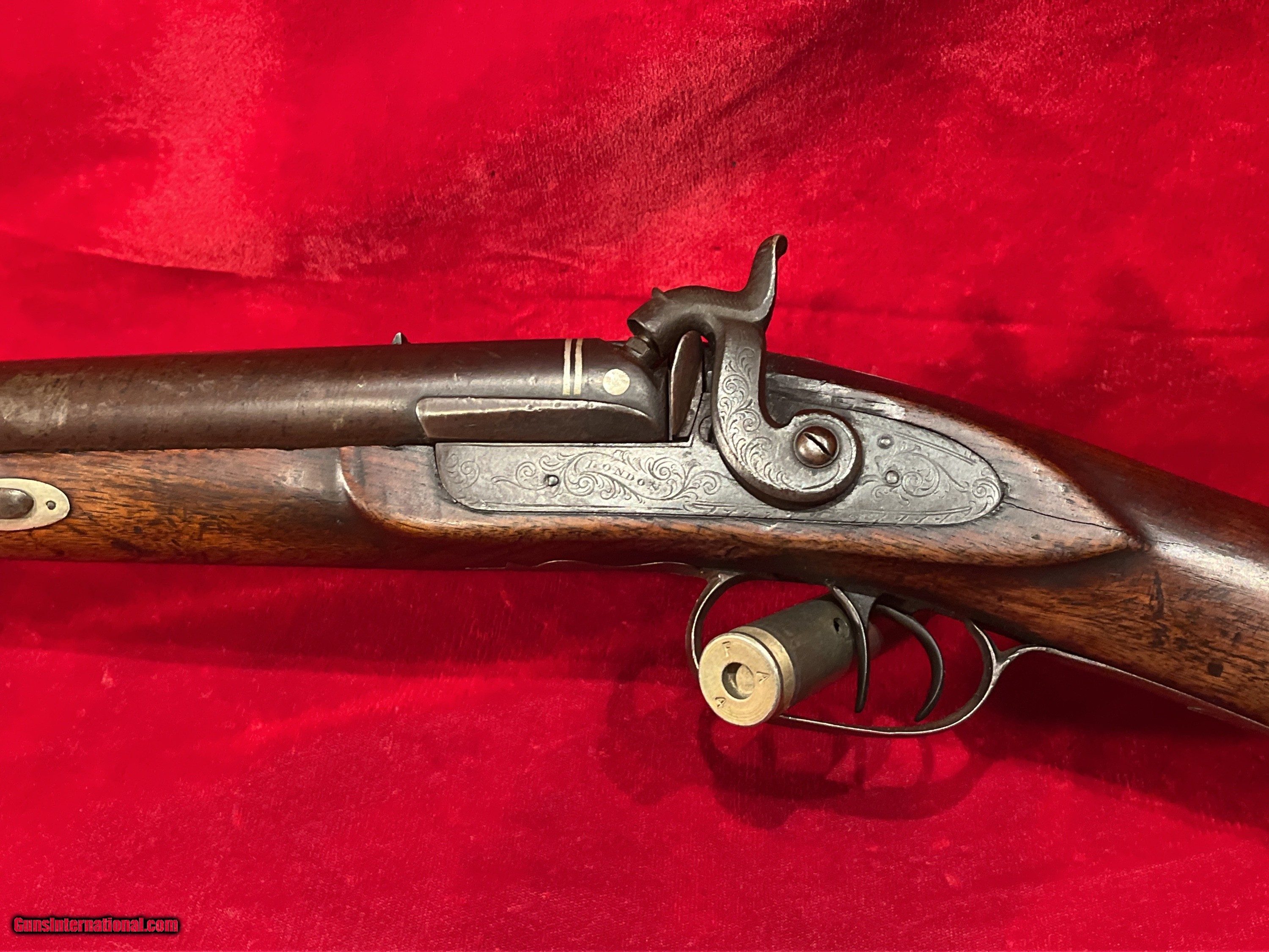 Description: Up for sale we have what I believe is a custom order Manton & Sons Side By Side Muzzle Loaded 10 Gauge Percussion Shotgun. This is a shotgun is marked as being manufactured as a special order for James Adger who became one of the wealthiest and most influential merchants of antebellum Charleston, and he used his position to good effect in the affairs of the city. The engraving on the rib is faint but still legible. I believe this shotgun was made by Manton & Sons but am not certain on the manufacturer. It is marked "London" on both side plates but I haven't disassembled it to see proof marks or inspected the flats. Since that company was known for producing high-end special order shotguns for hunting and shooting marketed to the richest of the rich prior to the civil war it seems to be a good fit. The shotgun is intricately designed with silver inlays and the shotgun is actually engraved on the rib " Manufactured for J. Adgers Charleston SC". Overall this shotgun is in good condition maintaining most of its original finish. This was a special order so the receiver is specially engraved and there are what look to be silver inlays in the barrel at a few different points. The stock itself is very ornate as well and in great condition. The barrels are 29 inches long and have the original bead. The length of pull is 14 1/2 inches. SHIPPING 60$ From and internet article: James Adger became one of the wealthiest and most influential merchants of antebellum Charleston. He entered business as a cotton buyer shortly after his arrival in the city, forming the firm of Bones & Adger in partnership with his kinsman Samuel Bones, and then established the hardware firm of James Adger & Company. In 1818 Adger had the good fortune to make the acquaintance of Alexander Brown of Baltimore, who, together with his sons, oversaw one of the largest mercantile and merchant banking operations in the United States. Adger became the Charleston agent of Brown, a connection that became the primary foundation of Adger’s subsequent fortune. Concentrating his varied business activities on East Bay Street, Adger formed a commission and factorage partnership with James Black to create the firm of Adger & Black and then purchased his own wharf. By 1850 Adger held at least $200,000 in real estate and was considered the wealthiest merchant in Charleston. To purchase this firearm simply send me a message via GI with your contact info. I will respond via e-mail with all the information required to complete the purchase. If you must contact me via phone, please text. Keep in mind I am on the West coast and if you call me at 5AM before I've had my coffee we will be off to a rough start. I am an FFL. I will provide my FFL with the shipped item. Total price is sales price plus shipping price. SOLD Shotgun Gauge: 12 Gauge |