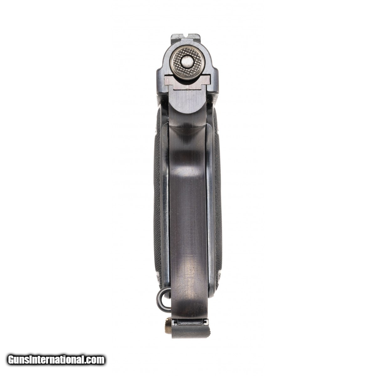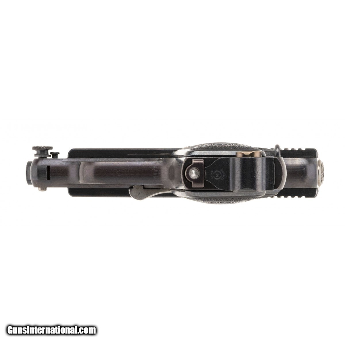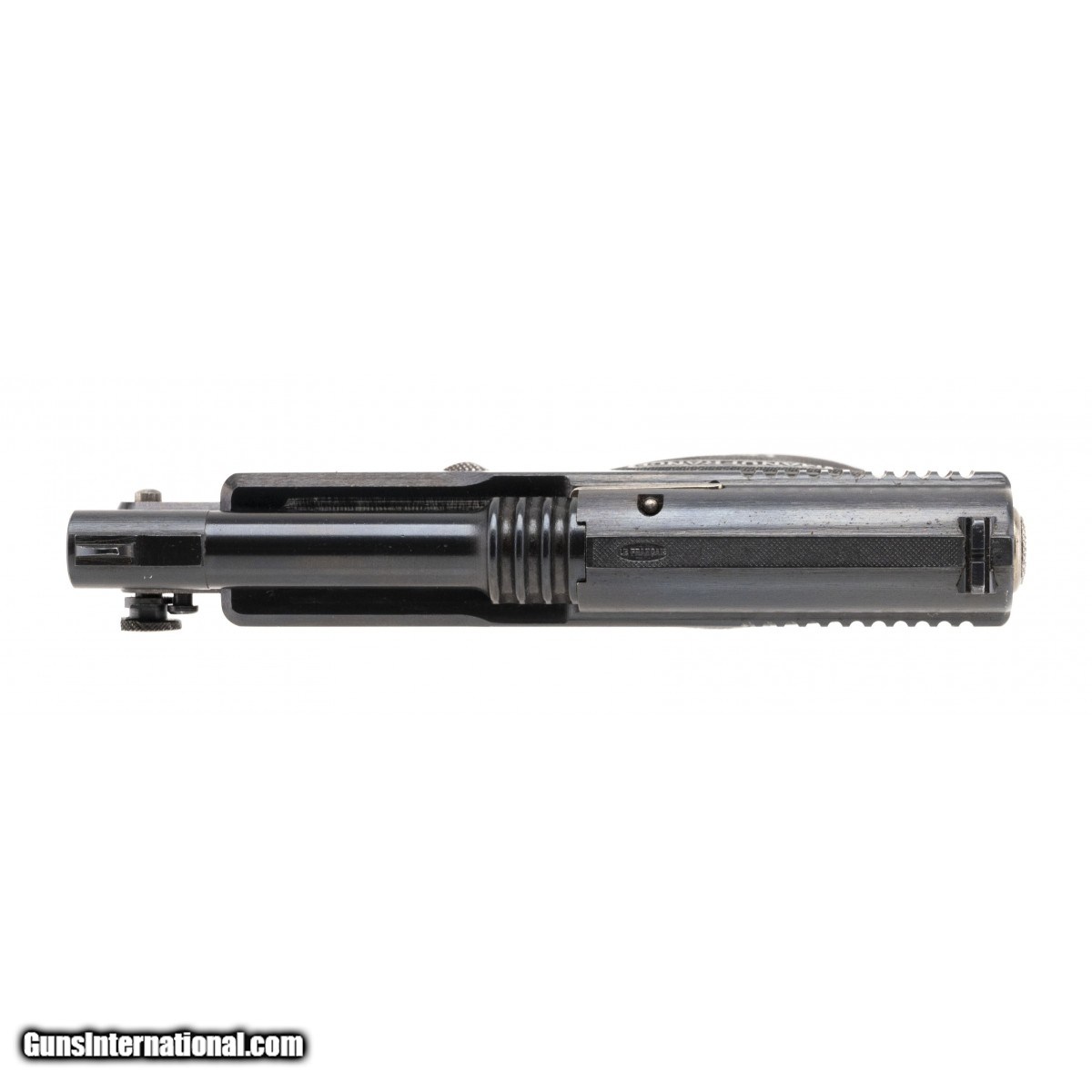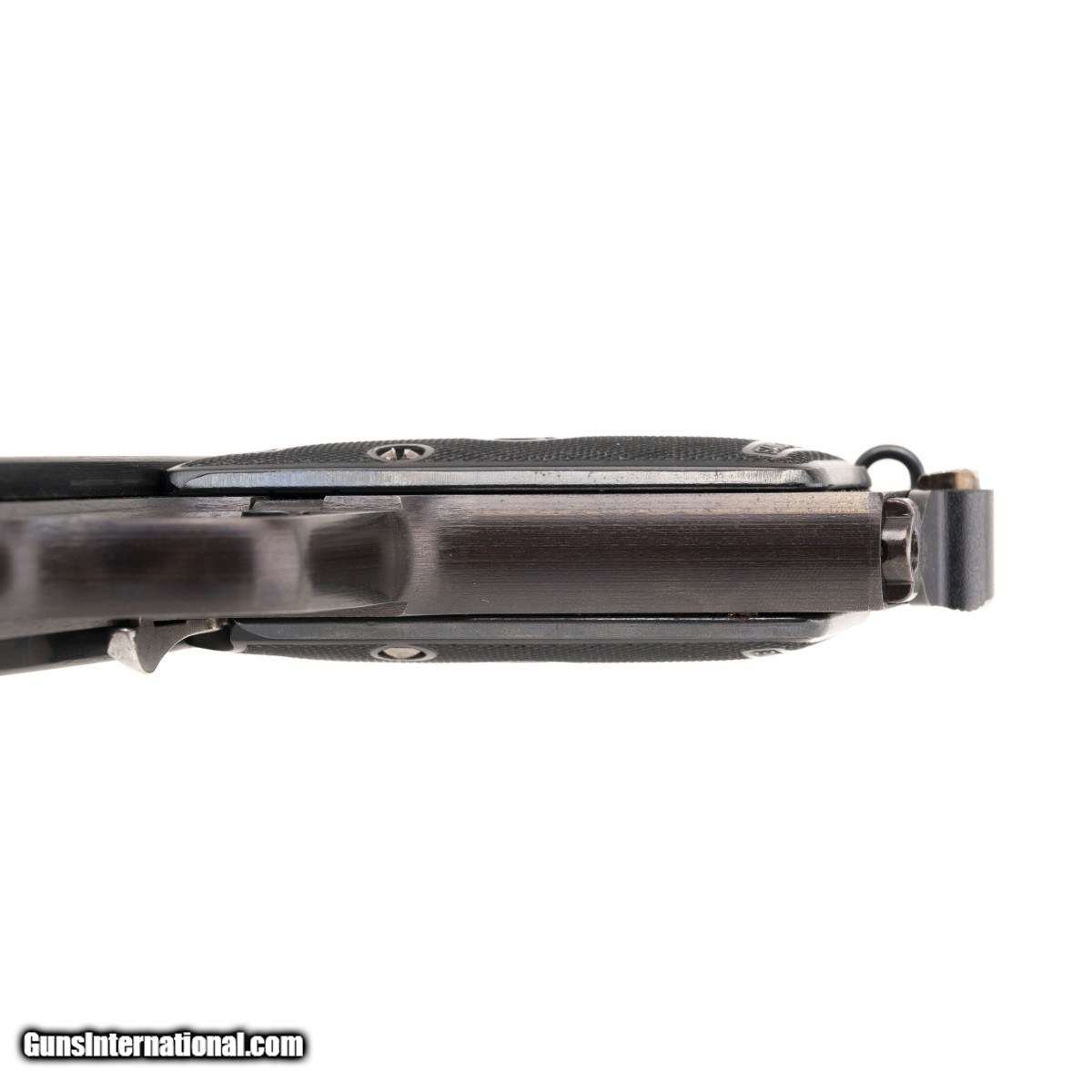 Description: " French semi-auto pistol with 3"" barrel. The grips are excellent and are marked ""Manufrance, St-Etienne."" The pistol is like new with 100% original blue. The finned barrel pops opens by depressing the lever on right hand side. An excellent and hard to find pistol. SOLD |