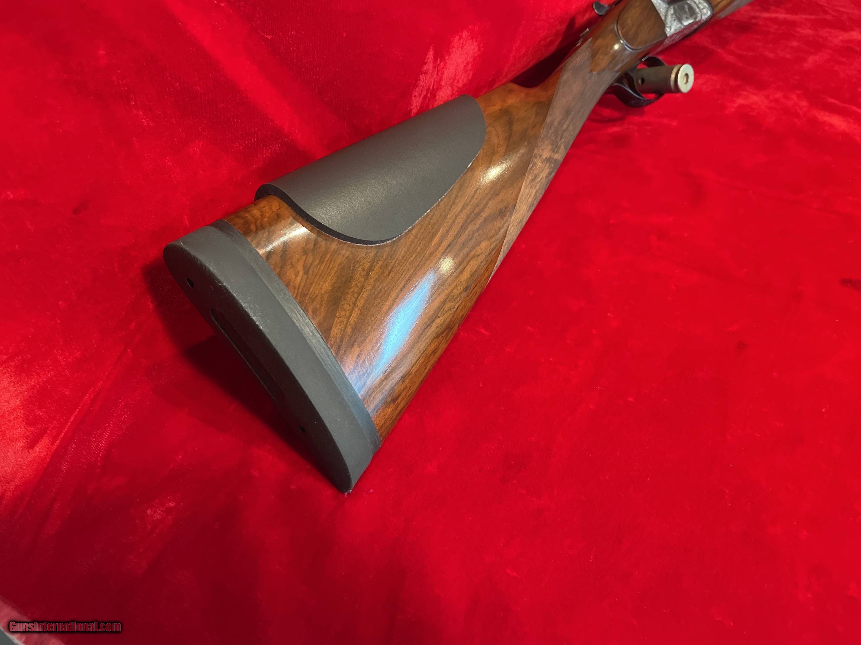 Description: Up for sale we have a stunning Beschi 20 Gauge SXS IC/IM withan Engraved Receiver. This is a beautiful side by side shotgun in great condition that looks to have seen light use but maintains a beautiful stock and finish. The owner added a cheekpad on the stock which can be easily removed if not desired. I must say if the intent is to shoot skeet or sporting clays with this shotgun it is quite comfortable for shouldering. The barrel is 26 inches long and chambered for 3 “ shells. The length of pull is 14.75 to the end of the buttpad and 14 to the end of the wood. The drop at heel is 2.5 inches. The drop at comb is 1.5 This is a cast off shotgun intended for a right hand shooter. The action is smooth and trigger pull breaks clean. The lockup is tight and the beavertail is well right as if not broken in. The receiver is engraved beautifully on a silver coin finish giving it a beautiful tone. Beschi is manufactured in Italy and imported. This gun would make a beautiful collection piece or range gun. SOLD Shotgun Gauge: 20 Gauge |