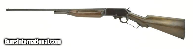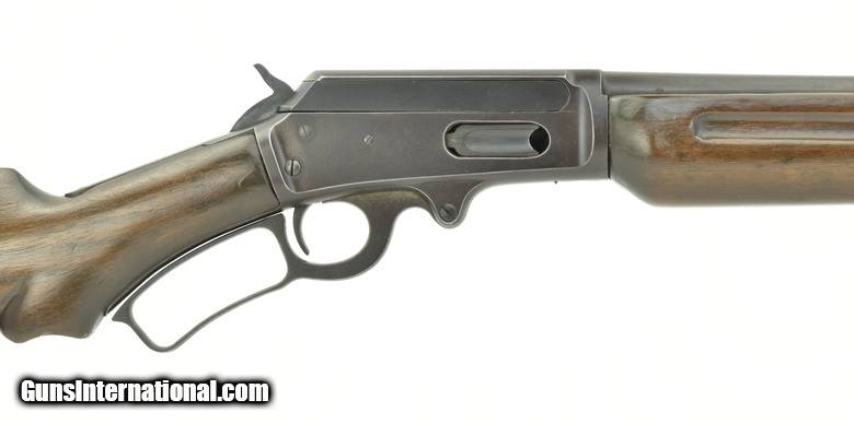 Description: Marlin 410 .410 Gauge shotgun. Very scarce Marlin model .410 lever action shotgun. 26” Round .410 Gauge (2½.“ shell). Barrel with excellent bore. These very scarce lever action shotguns were made between 1929 and 1932. This gun is circa 1929/30. The overall gun has a pleasing smooth blue/brown finish. Stock are very good with most of the original finish, the original butt plate is intact. There are a couple of minor dents in the pistol grip area. The top tang is marked “Marlin/410” with some wood loss on both side at the rear. Action functions correctly. This is a very scarce Marlin. It won’t last! ccccc SOLD |