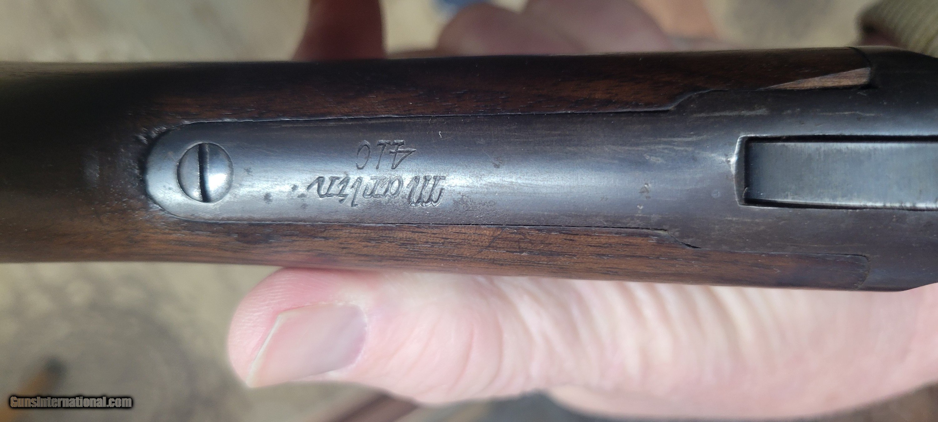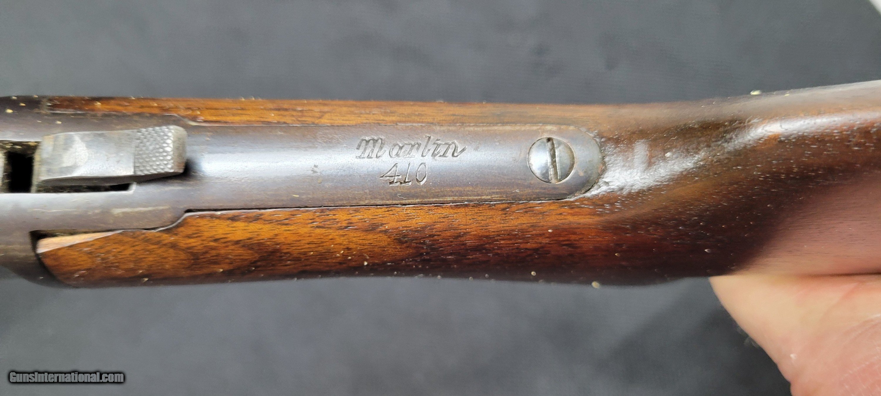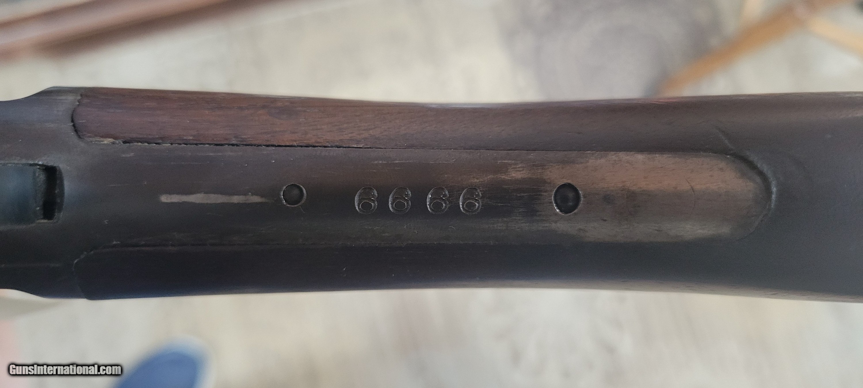 Description: Rare marlin model 410 lever action shotgun. Less than 10000 made. They were made for stockholders 1929-1932. They bluing is showing normal patina. All wood is in great shape with no cracks or repairs. It has 26 inch barrel with clean bright bore. Still has marlin bullseye. Definitely a collector piece. 1995.00. Shipping $75 insured. Cc fee 3% SOLD Shotgun Gauge: .410 Gauge Manufacturer: Marlin Model: 410 Serial Number: 6666 Barrel Length: 26 Bore: Clean Condition: Normal patina Wood Condition: Good |