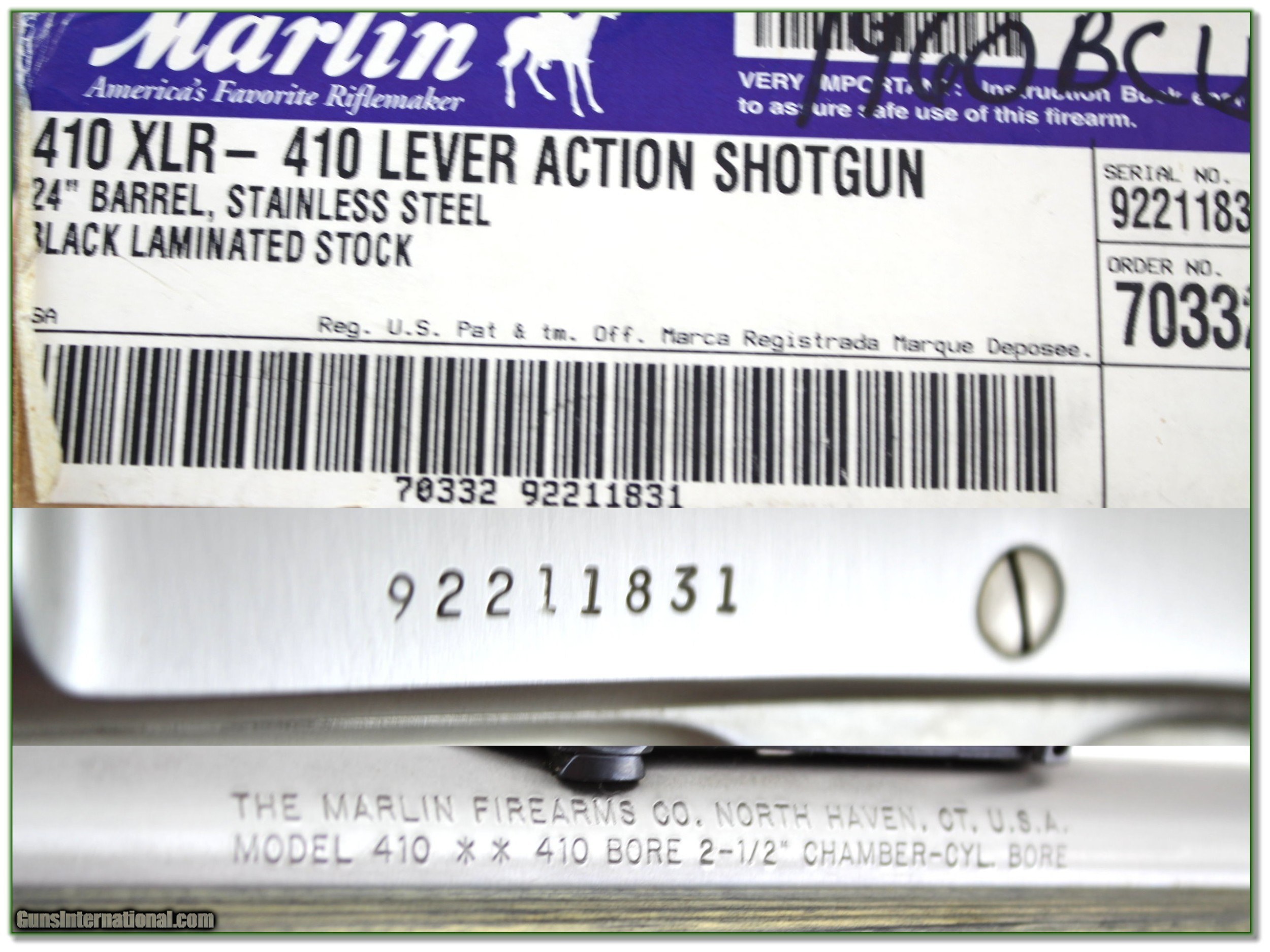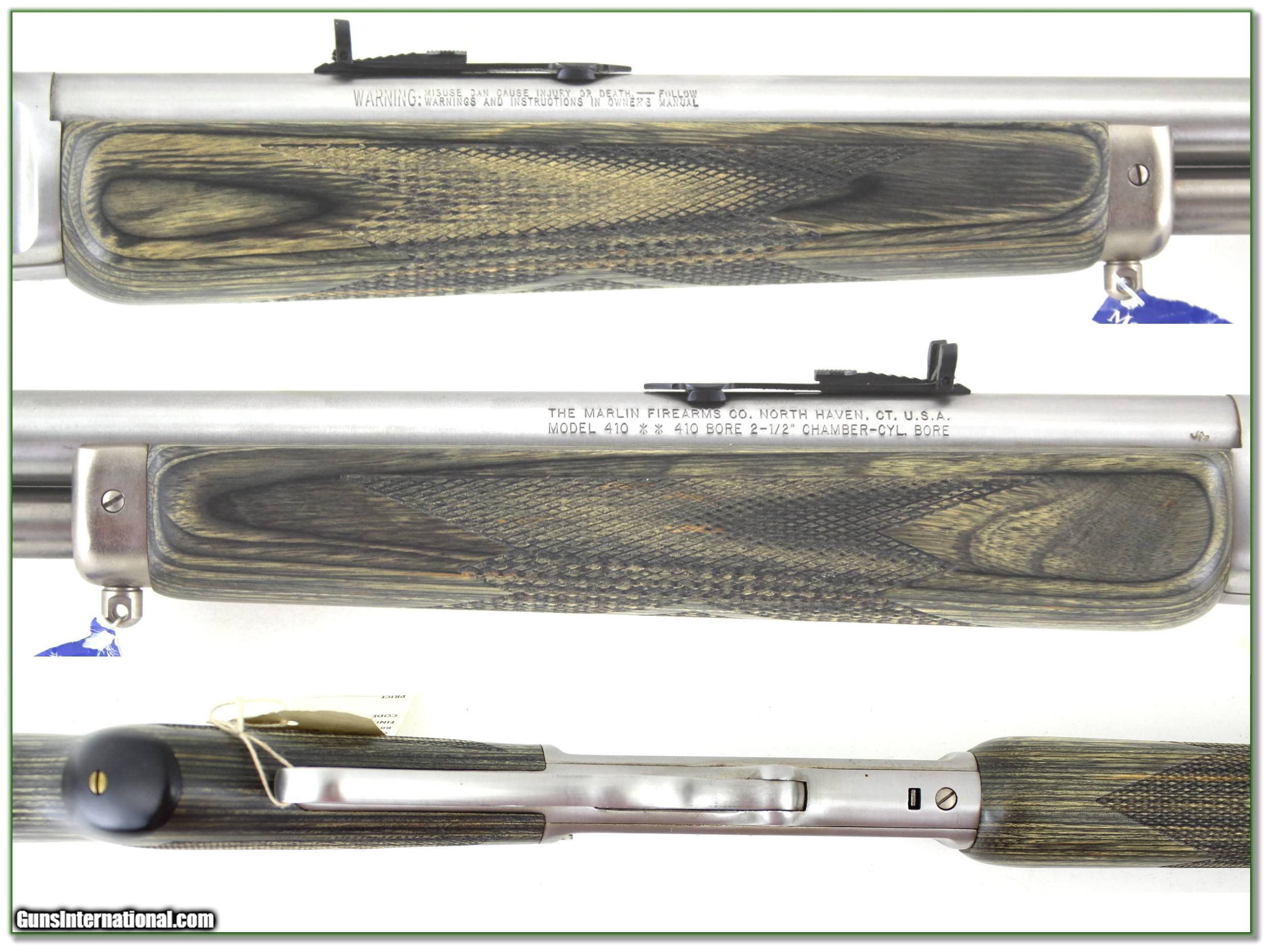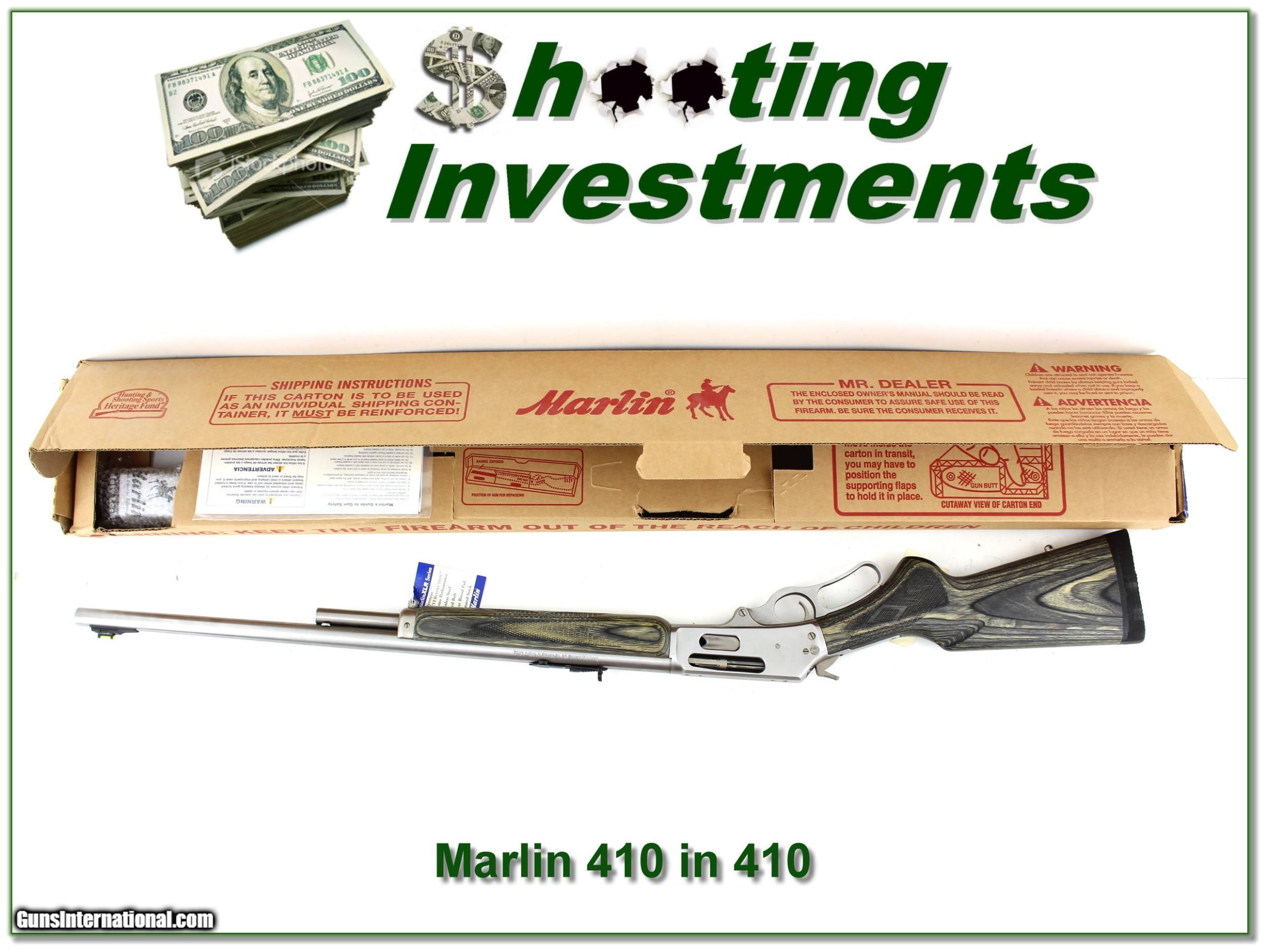 Description: This is a very hard to find Marlin 410 Stainless Laminated stock shotgun! It is an earlier JM marked Marlin and has a 24in barrel with cylinder bore. I looks to have been only test fired. I find no marks. It comes as seen in original box with papers. It is a real Shooting Investment! I am selling this one on consignment and as such lay-a-way can’t be used. It does of course have the standard 3-day inspection. Shipping and insurance is $39. Please email me with any questions or larger pictures. (Consign your quality firearms with Shooting Investments for only 12%! Let me know if you have any you would like to sell!) 21-0937 Payment: Payment is by Money Order, Cashiers Check or Personal Check. I can now also accept Credit Cards (MasterCard, Visa, Discover & American Express) with a 3% convenience fee. Shipping: The shipping charge will be listed in each description. It is $39 for most firearms. Some heavy guns or those insured for over $2000 will be higher. Shipments to Alaska and Hawaii are higher because air shipment is required. Most firearms are shipped on Tuesday and Thursday and usually in 5 days of receipt of payment. We package all shipments carefully and insure them. Optics are shipped Priority Mail and most other non-firearm shipments are shipped First Class. Returns: Our return policy is simple. If for any reason you are not pleased with your purchase, you may return your item for a full refund of purchase price. Ammunition cannot be returned. It is important to us that you are happy. Guns cannot be fired or dissembled before returning them and they must be returned in the same condition as received. Notification of a return must occur with-in 3 days of receipt at your dealer. Shipping, convenience and dealer fees are not refundable and are the responsibility of the buyer. Lay-a-way: If needed, we offer a 60 day lay-a-way option on most firearms. It is 1/3 now, 1/3 in 30 days and 1/3 in 60 days. Lay-a-way firearm sales are final and if not completed the first payment cannot be returned. Consigning your firearms with Shooting Investments: We will help you get top dollar for your firearms. While most local guns shops charge 20% or more, our fee is only 12% with a minimum of $75. At your local gun shop it might take months to sell. Selling on-line provides instant access to thousands of interested buyers. You won’t find any other on-line dealer willing to sell your firearms for only 12% or listing every gun on 3 separate s. Selling through an House typically costs the seller 15% and the buyer an addition 15% (so 30%) and you have to wait several months to sell and longer to receive funds. If properly priced, we will sell your firearms in a few weeks. Send us an email or give us a call and we’ll explain how easy it is for you to get top dollar. Trading: Trading for use is really just buying your gun to re-sell. If you have a gun you want to trade, please email a picture and we will let you know what we can give or it. You will always get more if we sell it for you on consignment. Help for California Buyers: We are happy to ship to California. It is the buyer’s responsibility to make sure any item you buy is legal in your state. We are also happy to help with your purchase of a firearm from someone other than us. If you see a gun you would like to buy but the seller can’t or won’t ship to California they can ship to use and we’ll then ship it to your California dealer. The cost for this service is only $30 + shipping. Let us know if we can help! SOLD |