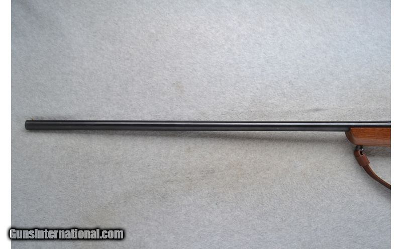 Description: This Marlin Model 55 The Original Goose Gun is a right hand bolt action 12 Ga. shotgun. It has a 36 inch barrel. A brass bead front sight. With a 3 inch Magnum chamber it has a fixed Full choke. The butt stock is a smooth grip walnut pistol grip. The forearm is a smooth grip walnut. It comes with a brown leather sling. 12 Gauge SOLD Chambers: 3 inch. Metal Condition: Very Good. A couple minor marks. Wood Condition: Excellent. Bore Condition: Bright and shiny. Barrels: 26 inch. Triggers: Golden. Stock Dimensions: LOP 13 7/8 inches. Fore End: Smooth grip walnut. Butt Pad: Brown rubber recoil pad. Weight: 7 LB. 15 OZ. Sights: Brass bead front. Chokes: Fixed Full. Item Location: Richfield, WI |