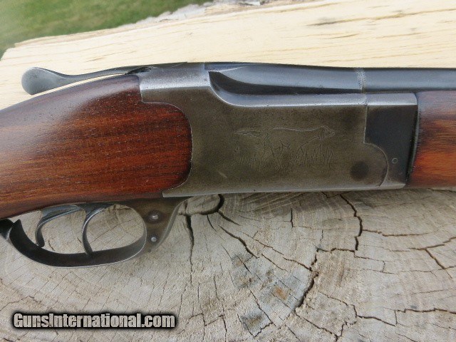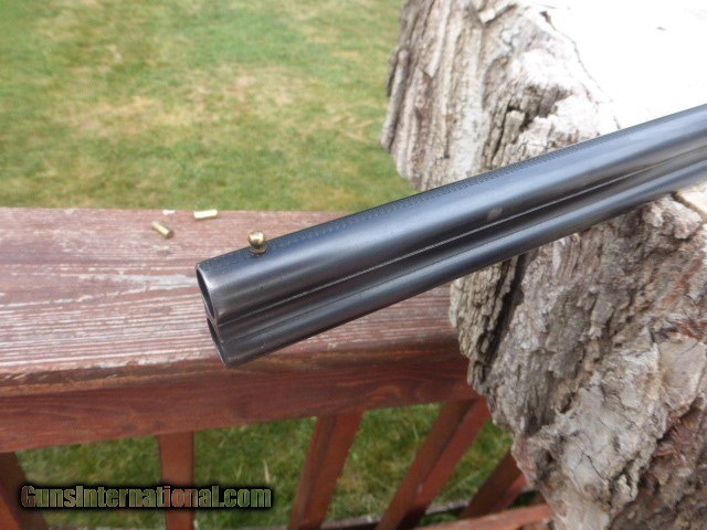 Description: Marlin model 90 with a 26 inch bbl, mod and improved cylinder, double trigger, madded rib, great dog sean on both sides, 100% original, bluing on bbl 80-85%, receiver plumming out with 50% left, handles 2 1/2 or 3 inch shells,bores perfect, from the butt plate to the bead on the front of bbl all correct to gun, taken to canada for 7-8 years and shot many ruff and spruce gruse to the kitchen table, 1 very nice one mounted on fireplace, very light scuffing hardly notice on the wood, butt plate fits better than factory, wood to metal unbelievable, bit of case coloring left on top tang under cocking lever, free shipping, no tax, 7 day shootable inspection retun no questions asked, phone call better than email for me. Reduced price from 1450.00 to $1350.00. SOLD |