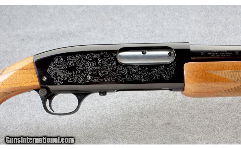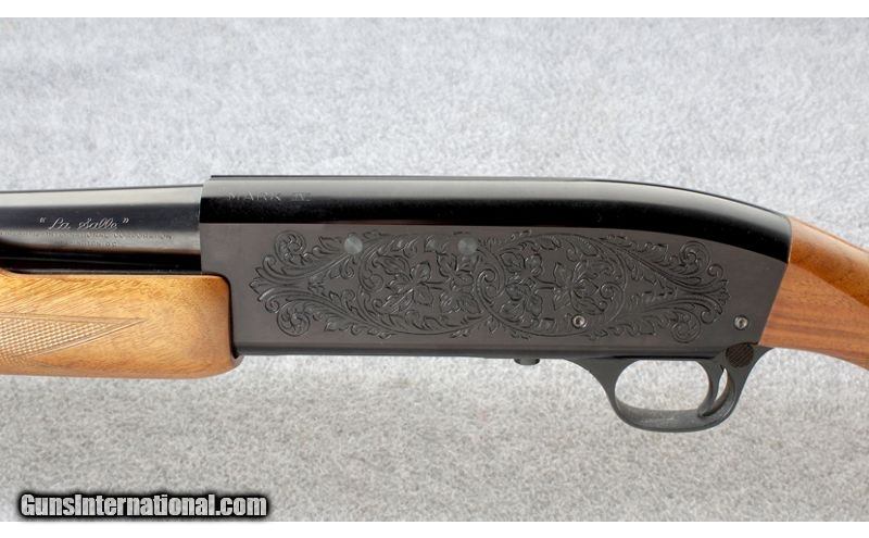 Description: The Marlin Mark IV Le Salle was manufactured by ManuFrance and marketed in the United States under the Marlin label. It is pump action shotgun with an alloy receiver. Manufactured in France from 1960 to 1963 12 Gauge SOLD Chambers: 2 3/4 inch Metal Condition: Excellent Wood Condition: Very good with some handling marks Bore Condition: Very good with signs of use Barrels: 28 inch barrel Stock Dimensions: 14 1/4 in. LOP Fore End: Checkered walnut Butt Pad: ManuFrance black plate Weight: 6 lbs. 1 oz. Sights: Single bead Chokes: Modified Item Location: Lehi, UT |