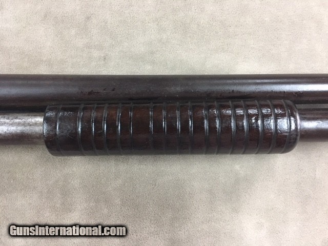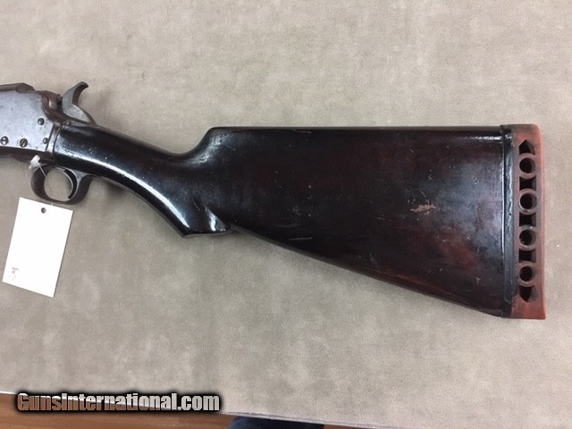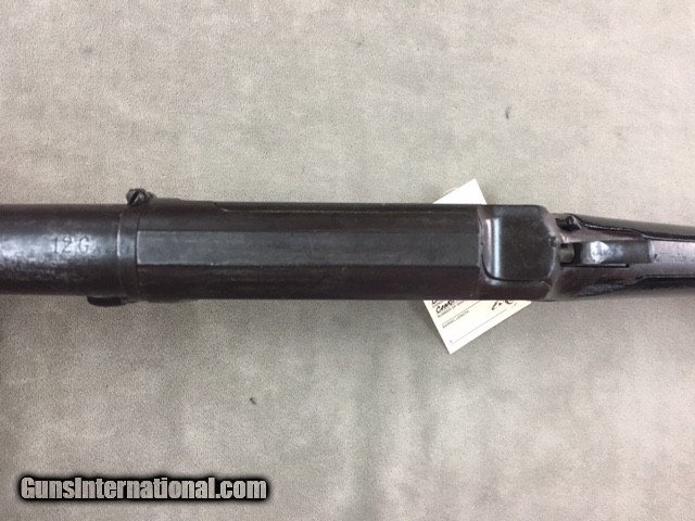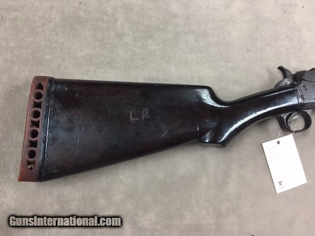 Description: While this old Marline is a model 1894 it has patent dates on the barrel all the way up to 1904 so it is not an antique and requires an ffl or c&r to purchase. The shotgun's metal has a dark patina overall and the stock has the initials LR carved on the left side but overall the wood is solid with finish added (could use a new recoil pad). Barrel is 30 inches with a full choke. Shotgun is in good working order, even if over 112 years old, and could use a good thorough strip & clean but at the price shown we shall let the new owner take care of that. At the listed price the gun is worth much more just for spare parts...... SOLD Curio/Relic: Yes |