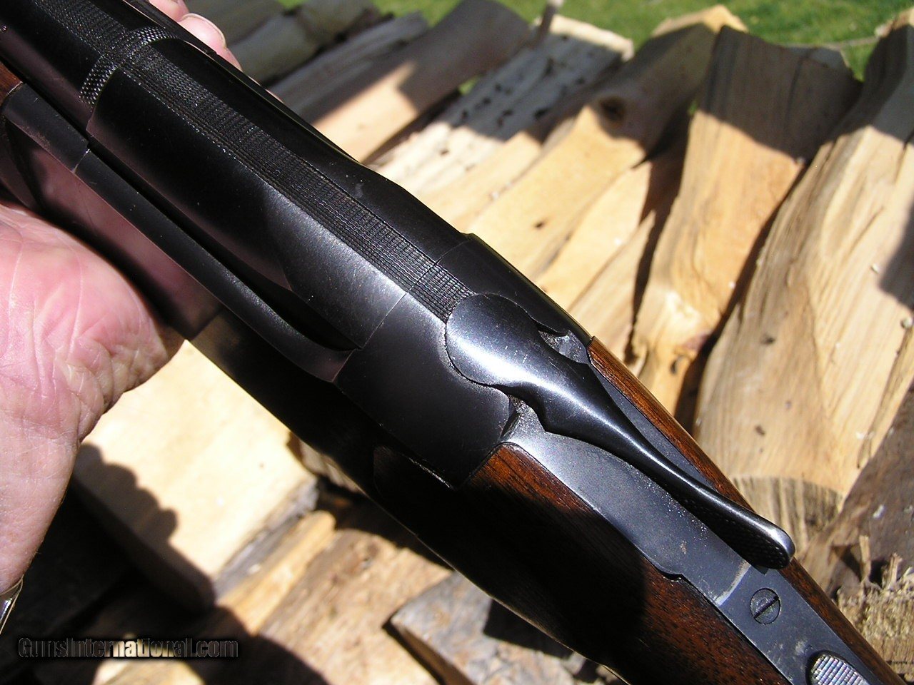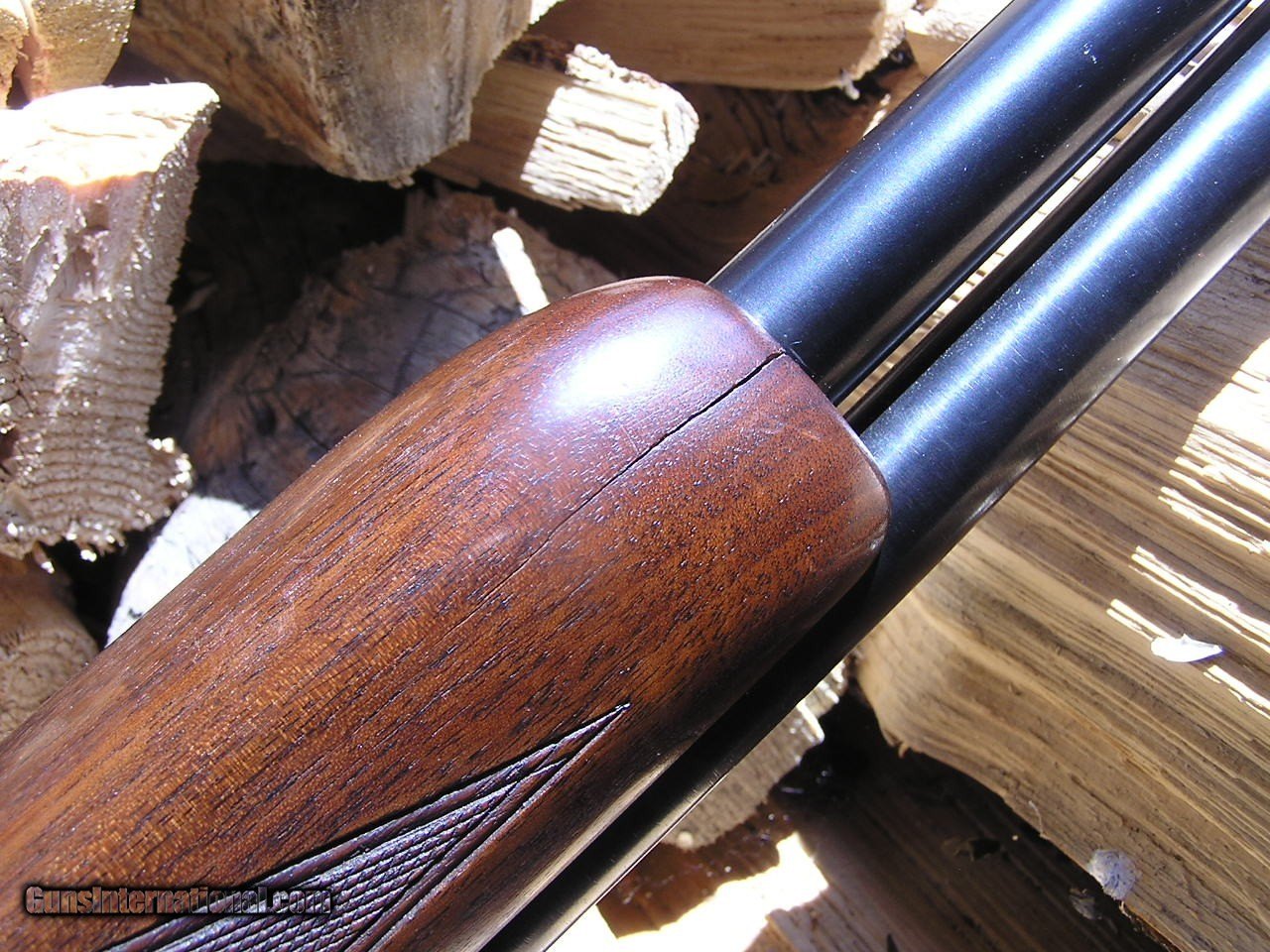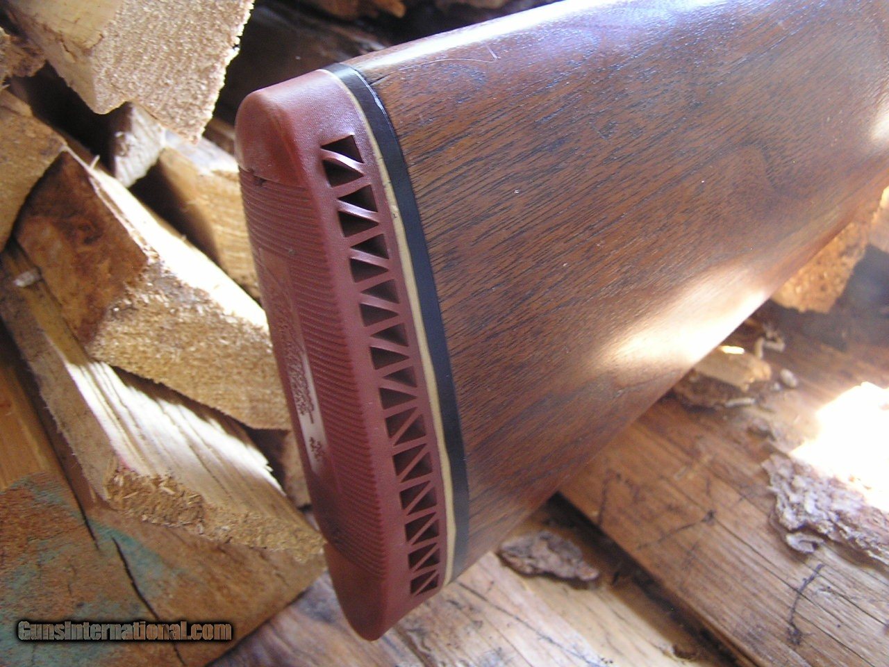 Description: A local Estate purchase here in Wyo. A Nice 12ga Marlin mdl 90 O/U. Honest 97% blue with orig stock finish. Short crack in the fore stock (shown) easy repair.Period recoil pd, 13 3/4" LOP on the front trigger and 12 3/4" on the rear. Exc M & F bores. matted rib with deluxe checkering.Blue wear on the bottom of the receiver indicates lottsa carrying and little shooting. Not much upland game and little flyway activity here, it's more of a riflemen's environment LOL. $40.00 S&H to the lower 48, others higher. Serious offers entertained. Pictures better describe it's condition..Remember to send your prayers to the men and women of our Armed Forces and Law Enforcement. We need'um now more than ever! ................................P.S. A watcher shared this with me, The "H" in the serial number indicates a 1951 mfg date, also the year marlin introduced the release lever forend hanger.. SOLD Curio/Relic: Yes Shotgun Gauge: 12 Gauge Manufacturer: Marlin Model: 90 Barrel Length: 30 Chambers: 2 3/4 Ejectors: no Condition: very good Metal Condition: very good Wood Condition: very good Bore Condition: excellent |