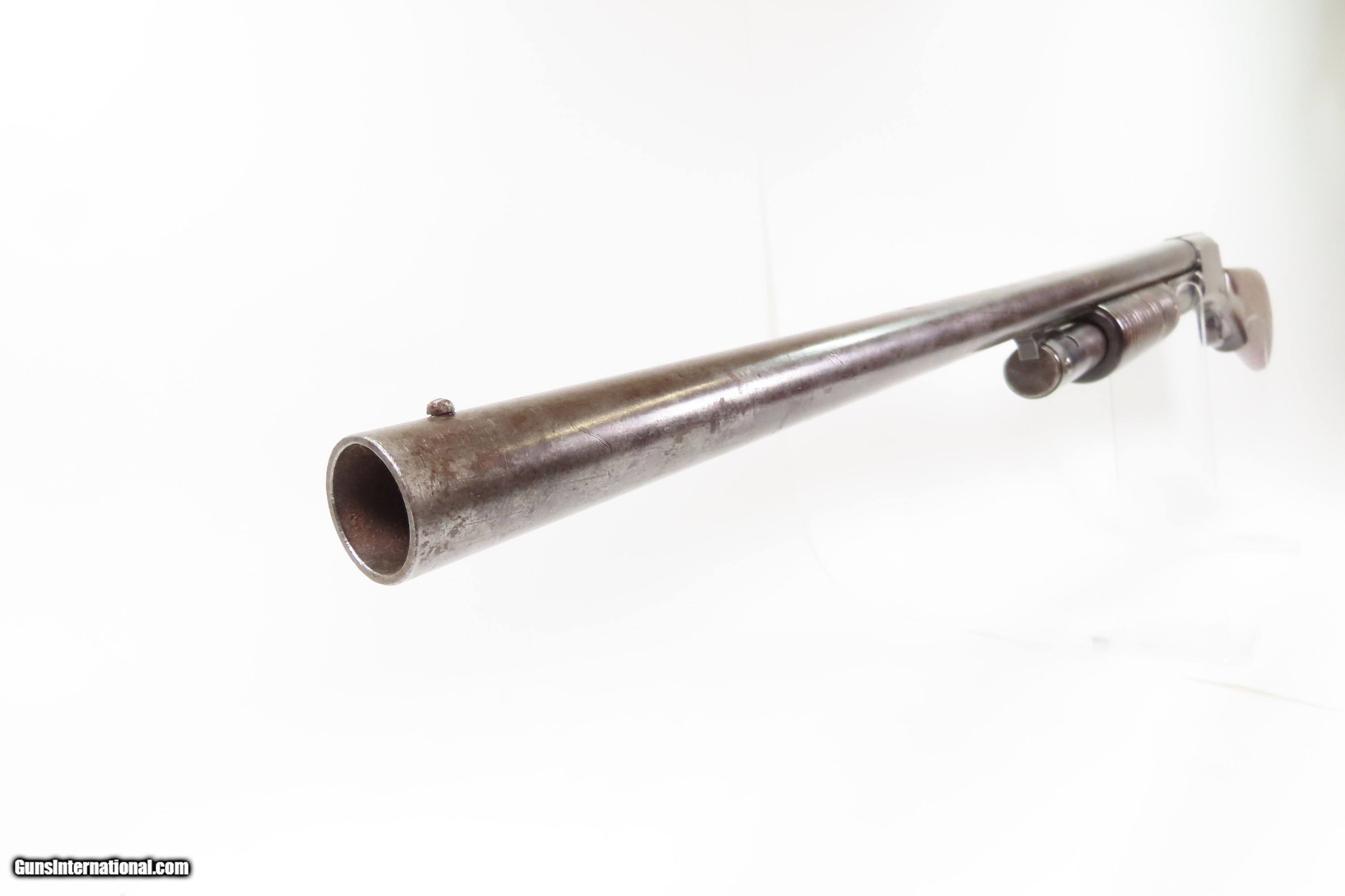 Description: Scarce MARLIN FIREARMS Model 19 Slide Action SPORTING/HUNTING Shotgun C&R TURN OF THE CENTURY Pump Action 12 Gauge SCATTERGUN Here we present a C&R Marlin Model 19 Slide Action Shotgun manufactured during its two-year production between 1906 and 1907 in New Haven, Connecticut. Produced for a short two-year period, the often-overlooked Marlin Model 19 was a shotgun that signaled the end of the 19th century thinking and stepped boldly towards a modern design that we can still appreciate today. This shotgun holds five rounds with barrels ranging in length from 28 to 30 inches and features a takedown design for easy transport. When you slide back the fore-end back, the hammer cocks and you’re ready to shoot. It’s equipped with a cross-bolt safety located behind the trigger guard, ensuring safe handling at all times. The Marlin 19 Pump is a unique and classic shotgun that has become a collectible for many enthusiasts. 1-1/2” comb drop, 2-1/4” heel drop. Weight: 7.2 pounds. The overall condition is good. Scattered remnants of original blue finish with mixed brown and gray patinas. The solid stock shows light use and remains solid. The slide is missing a small portion between the barrel and magazine; small cracks and wood filler are used but remain stable. The action is strong. Legible markings throughout. The bore is bright and smooth with a ring of pitting toward the muzzle. Own the original! This firearm is classified as a Curio & Relic. Barrel is 27-1/2 inches Caliber: 12 Gauge Chamber: 2-3/4 inches. Choke: Cylinder LOP: 13-1/2 inches Overall condition as seen in photos. Very Fast. Very Safe. FREE SHIPPING. Will need to be sent to your local FFL or C&R Licensee. This firearm is classified as a Curio & Relic. Guaranteed AUTHENTIC & Includes CERTIFICATE OF AUTHENTICITY. ancestryguns $1400 #257013 Curio/Relic: Yes Price: $1,400.00 Buy Now Pay with