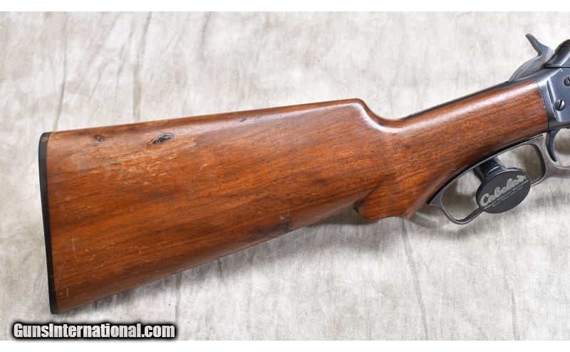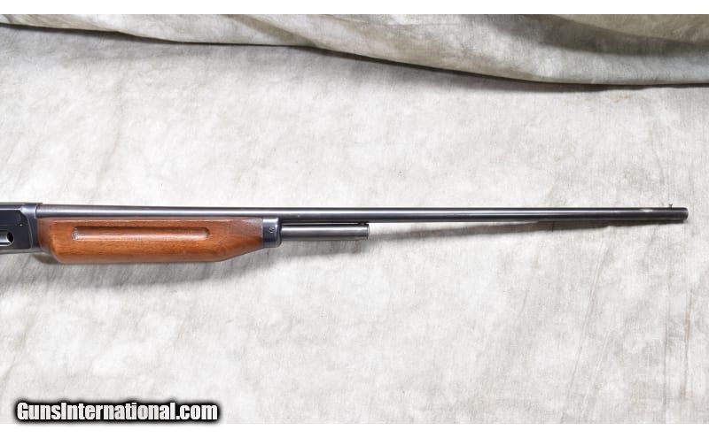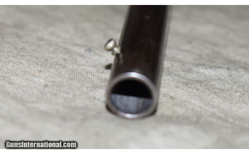 Description: The Marlin 410 was manufactured as a way to attract investors in The Marlin Company stock. If you purchased four $25 shares of stock, you got a shotgun. About 5-6000 of these were produced from 1929-34. The original list price of these was $30, but early in the depression no one had any cash anyway. The firearm itself is based upon the Marlin 1886 action with mod's to fit the cartridge. There is little on the gun to identify it beyond the S/N stamp and the manufacturer's stamp "Marlin 410." ' .410 Bore SOLD Chambers: 4+1 capacity Metal Condition: Very good. Nearly 90% of the blue persists as well as most of the case color. Wood Condition: Good. A large number of shallow scratches. Bore Condition: Shiny and bright. Barrels: 26-inch Triggers: Factory trigger Stock Dimensions: 13-1/2 inch LOP Fore End: Matching walnut Butt Pad: Black plate Weight: 6 lb - 4 oz. Sights: Silver bead Chokes: Fixed IC choke Item Location: Rogers |