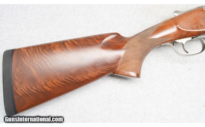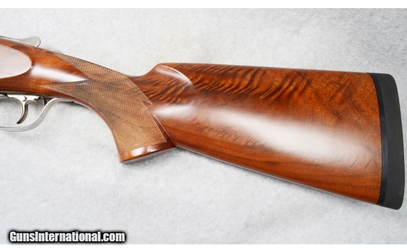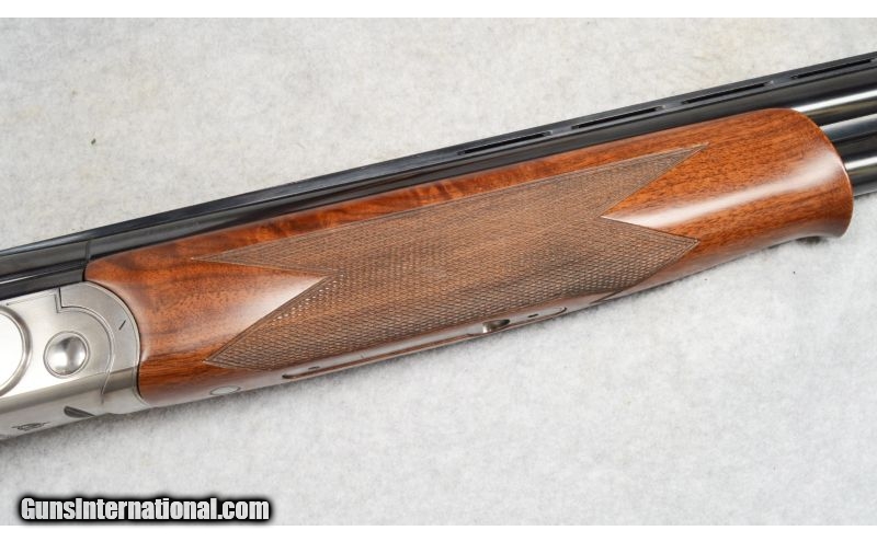 Description: Includes case. SOLD Caliber Info: 12-Gauge. Chambers: 2¾". Metal Condition: Excellent. Wood Condition: Very good with handling marks. Bore Condition: Shiny. Barrels: 30 Triggers: Single select. Stock: Checkered walnut. Stock Dimensions: LOP 14¼", DAH 2¼" DAC 1¾". Fore End: Checkered walnut. Butt Pad: Polymer recoil pad. Weight: 8-lbs. Sights: Front blade. Chokes: F, IM, M, two IC and two C. Item Location: Fort Worth, TX |