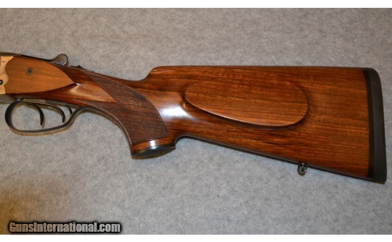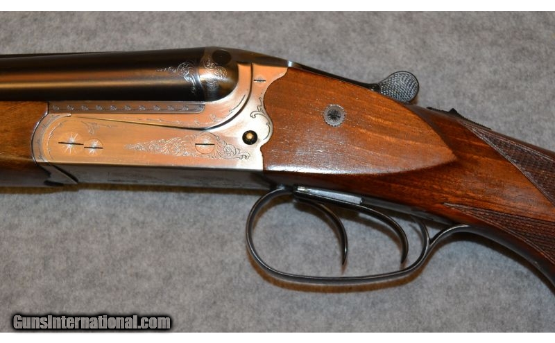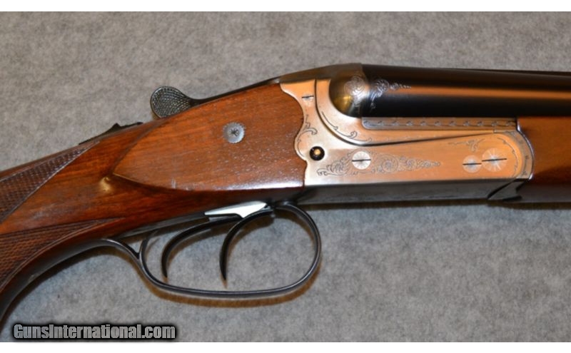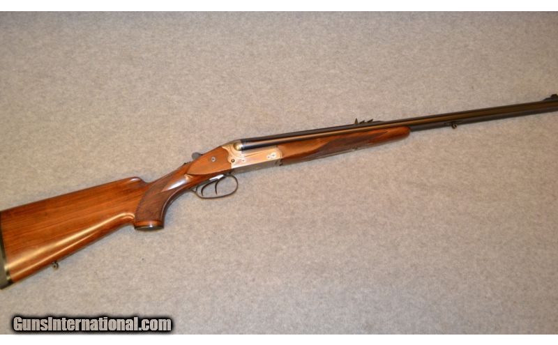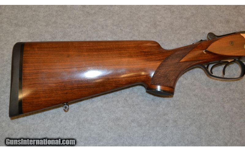 Description: SOLD Caliber Info: .375 Holland & Holland Magnum Metal Condition: Excellent, near new Wood Condition: Excellent w/handling marks Bore Condition: Excellent, near new Barrels: 23.5" with extractors Triggers: Double Stock: Checkered pistol grip with cap Stock Dimensions: 14.25" LOP Fore End: Checkered with Deeley release Butt Pad: Merkel rubber Weight: 10 lbs 10 oz Sights: Beaded blade front, Three leaf express rear Item Location: Charleston, WV |