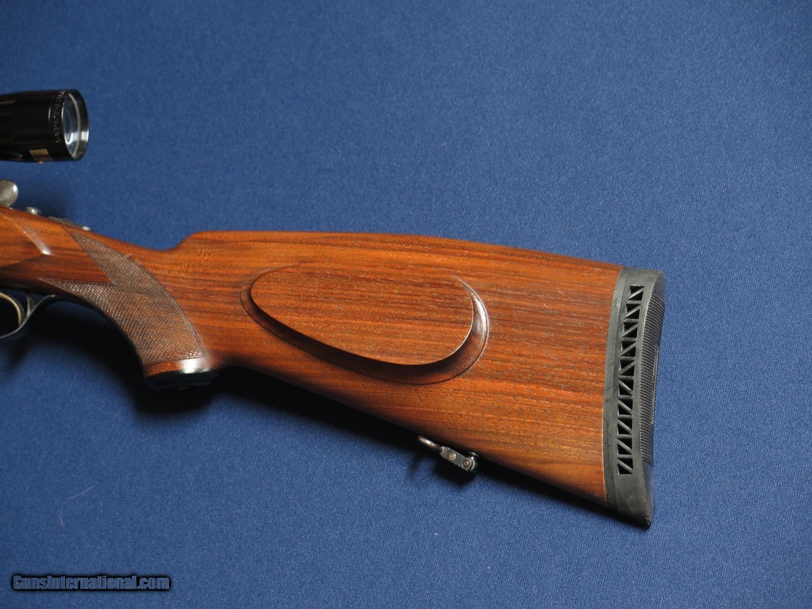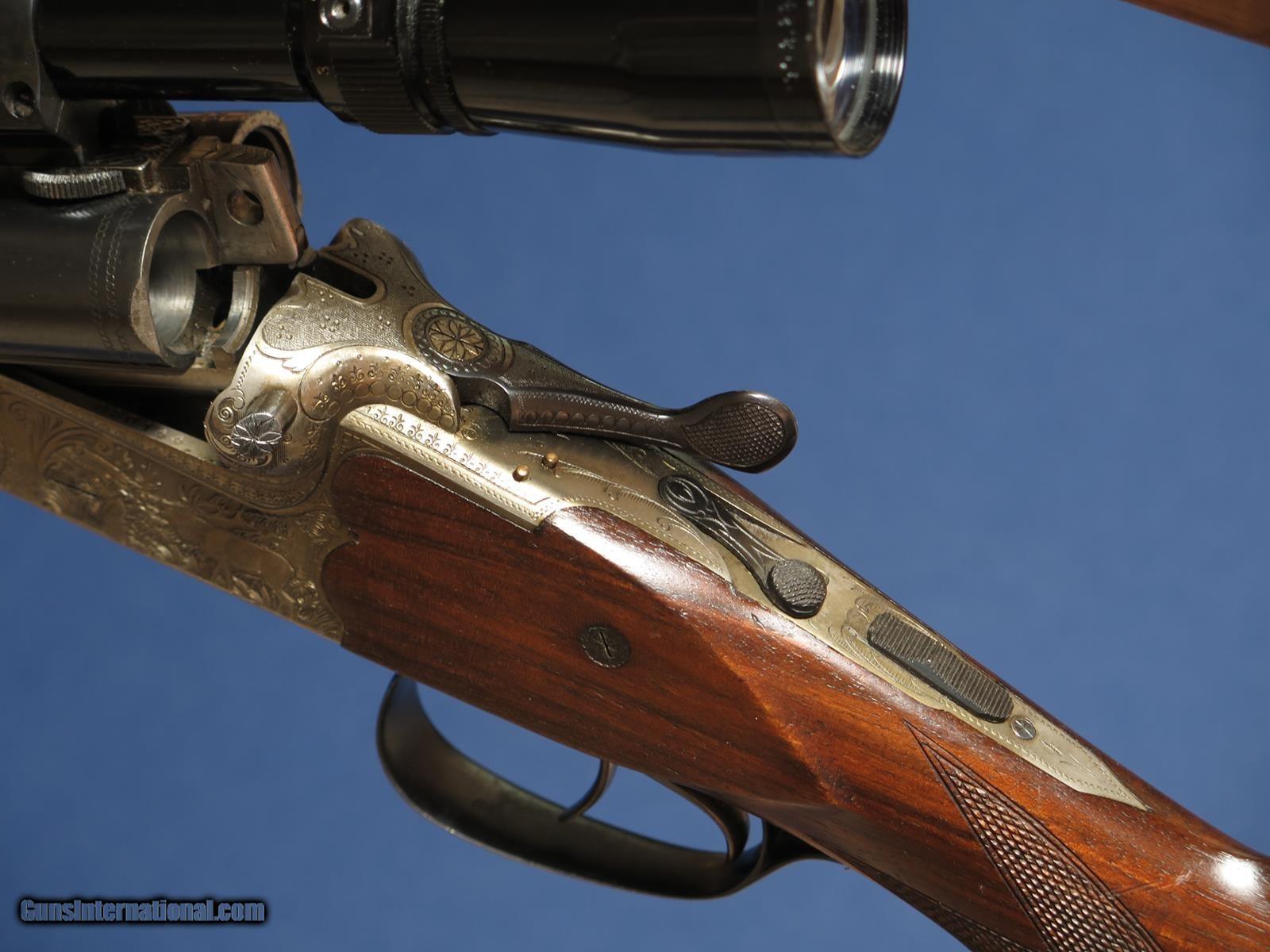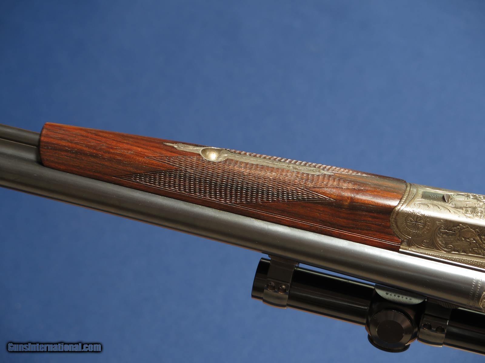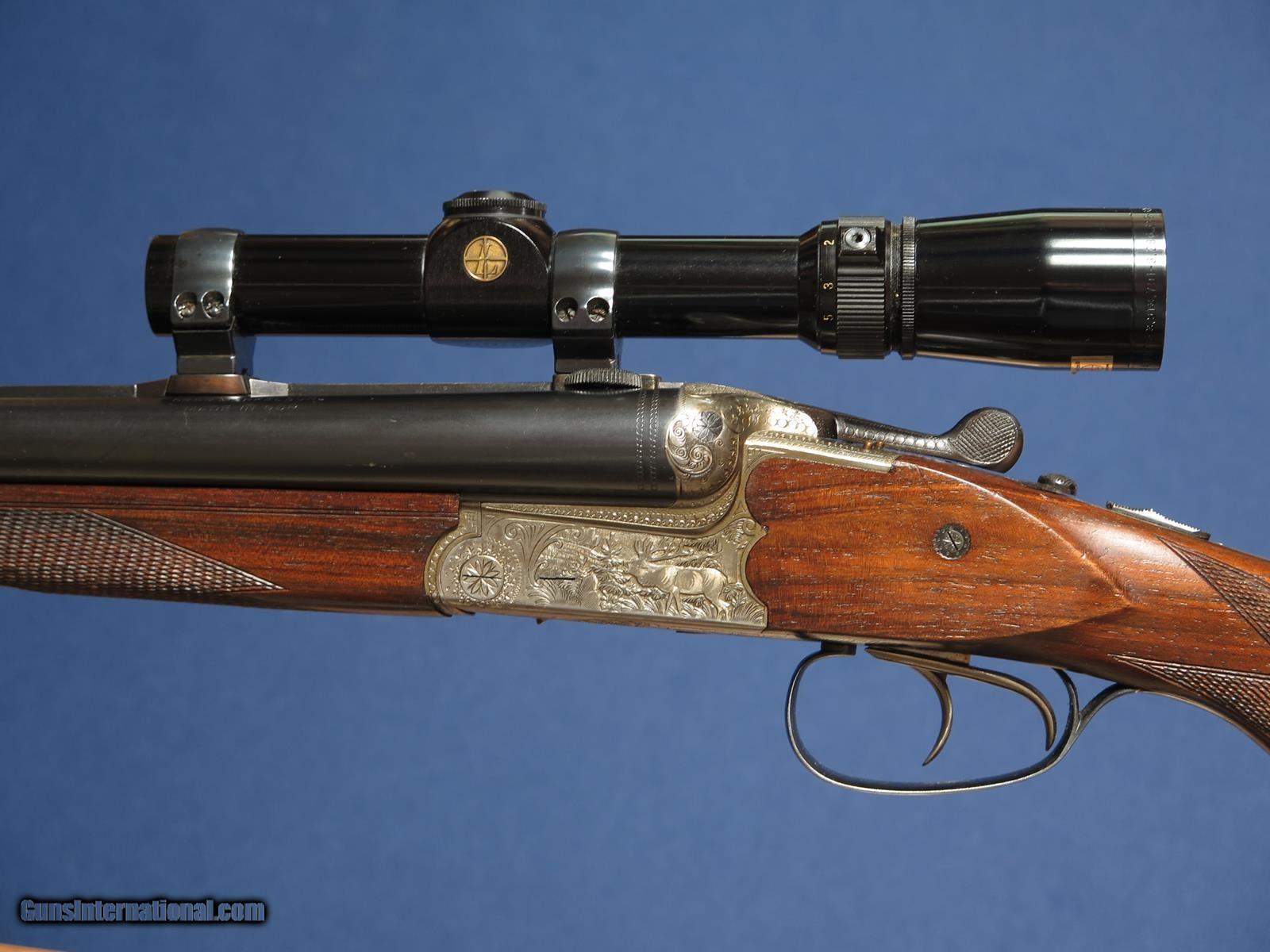 Description: Merkel game scene engraved drilling 12ga/12ga/5.7x43 (222 Rem) 25 inch barrels. Double triggers. Cocking indicators. Side clips. Greener cross bolt. 14 3/4 LOP pad. 14 inch LOP to curved wood. Wood has not been cut. Leupold Vari X III 1.5x5 scope with claw mount rings. Gun is tight and in excellent condition and bores. 2 3/4 chambers. 1977 mfg. Over 45 years in business, and not only do we buy guns, but we accept collections (and single/multiple guns) on consignment. SOLD |