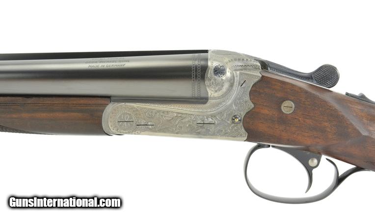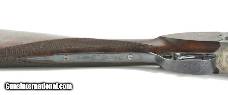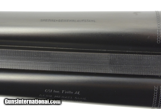 Description: Merkel 147 12 Gauge shotgun. German made boxlock double. Has scalloped receiver with game scene engraving, single selective trigger, and cocking indicators and extractors. The English style stock is of figured straight grain walnut. Length of Pull is 14 1/8.” The 28” barrels are chocked full/modified. A quality double shotgun in excellent condition.