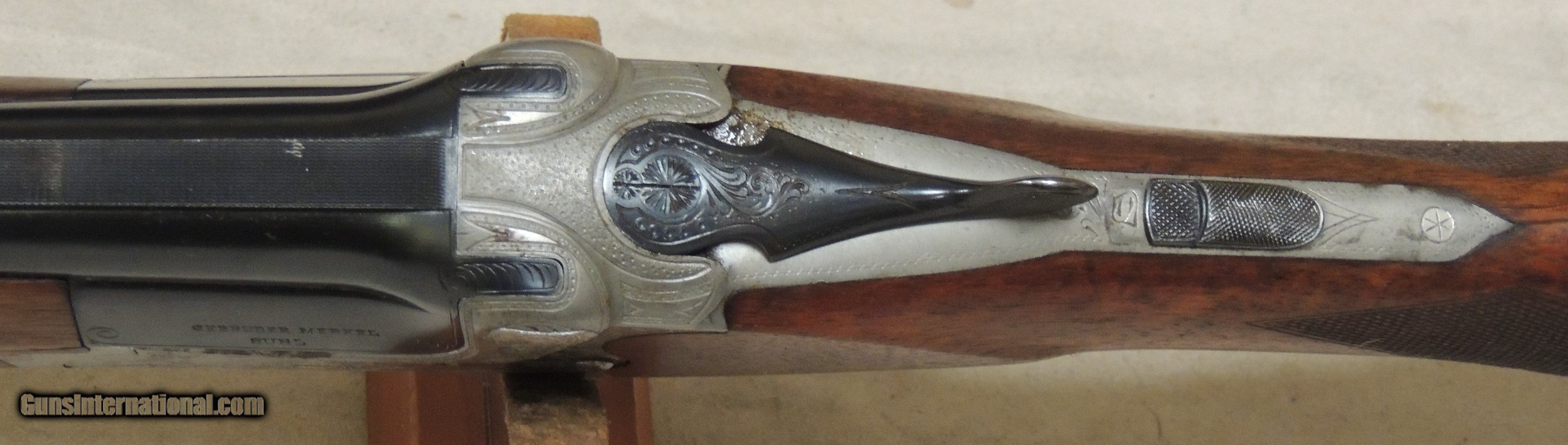 Description: Cased Merkel Scalloped Boxlock Shotgun