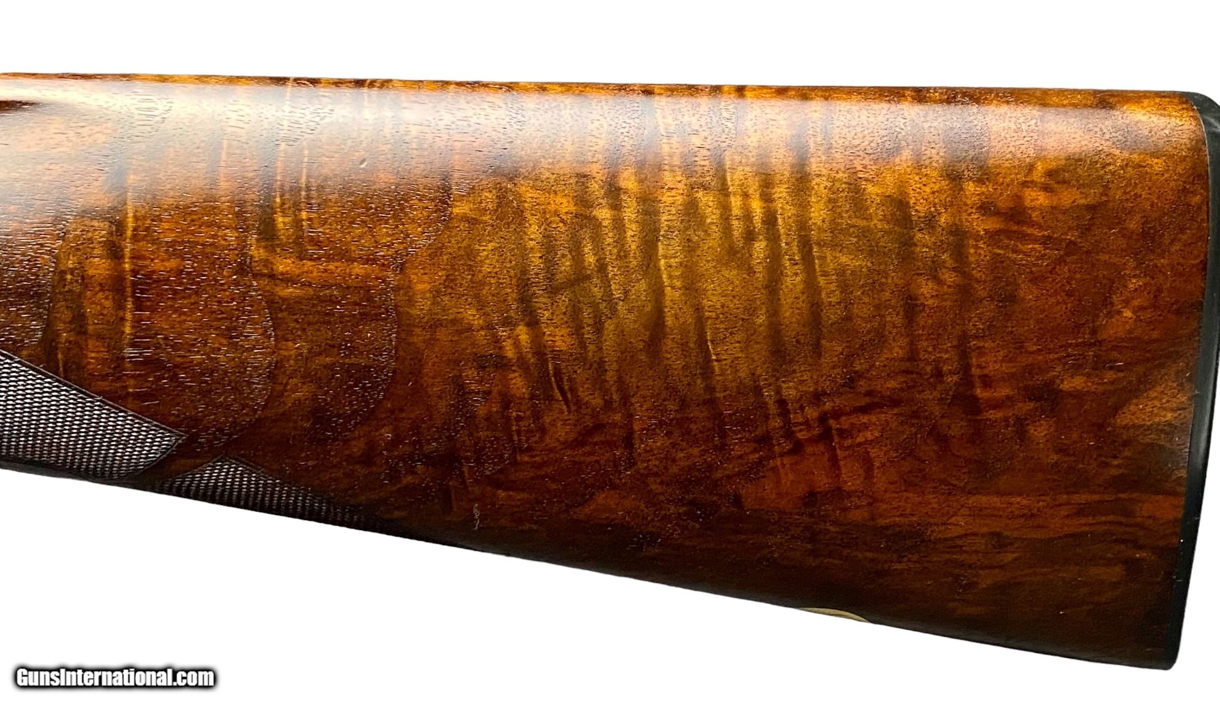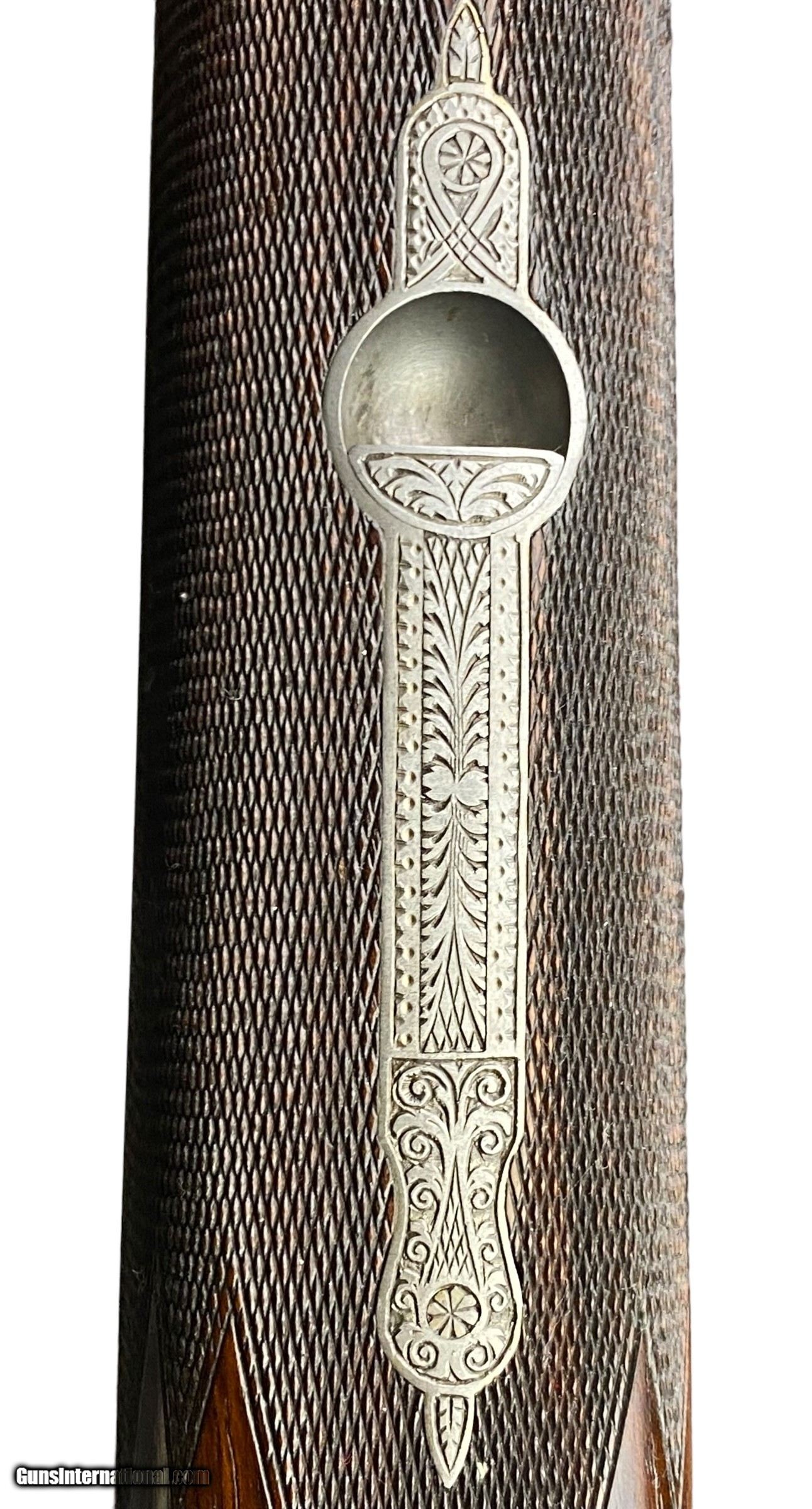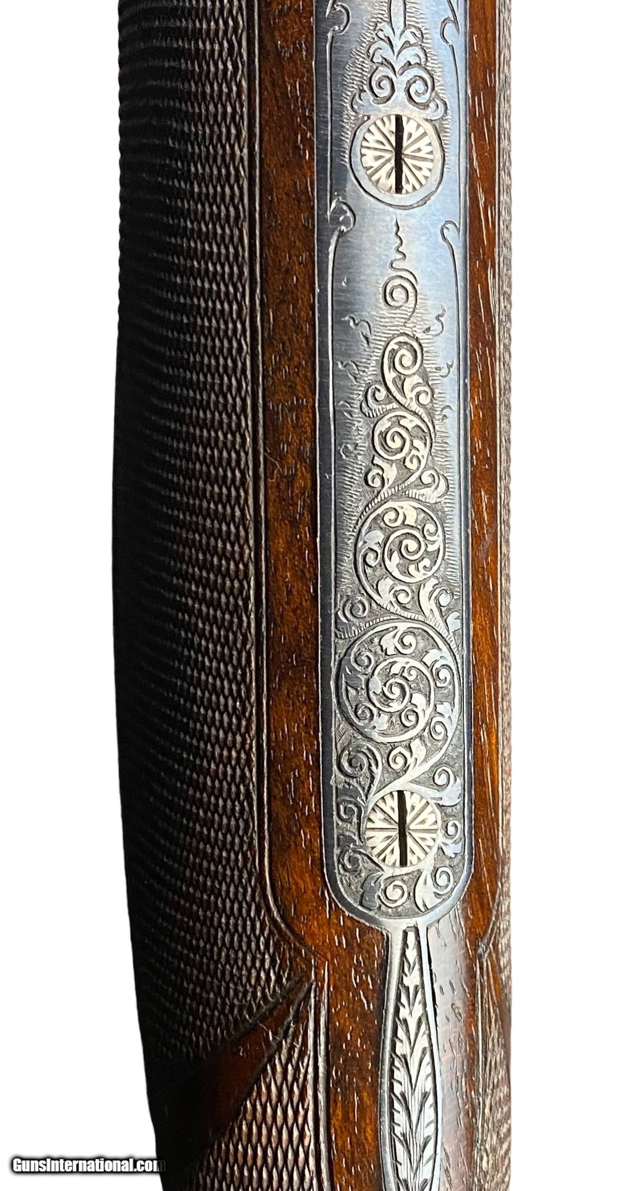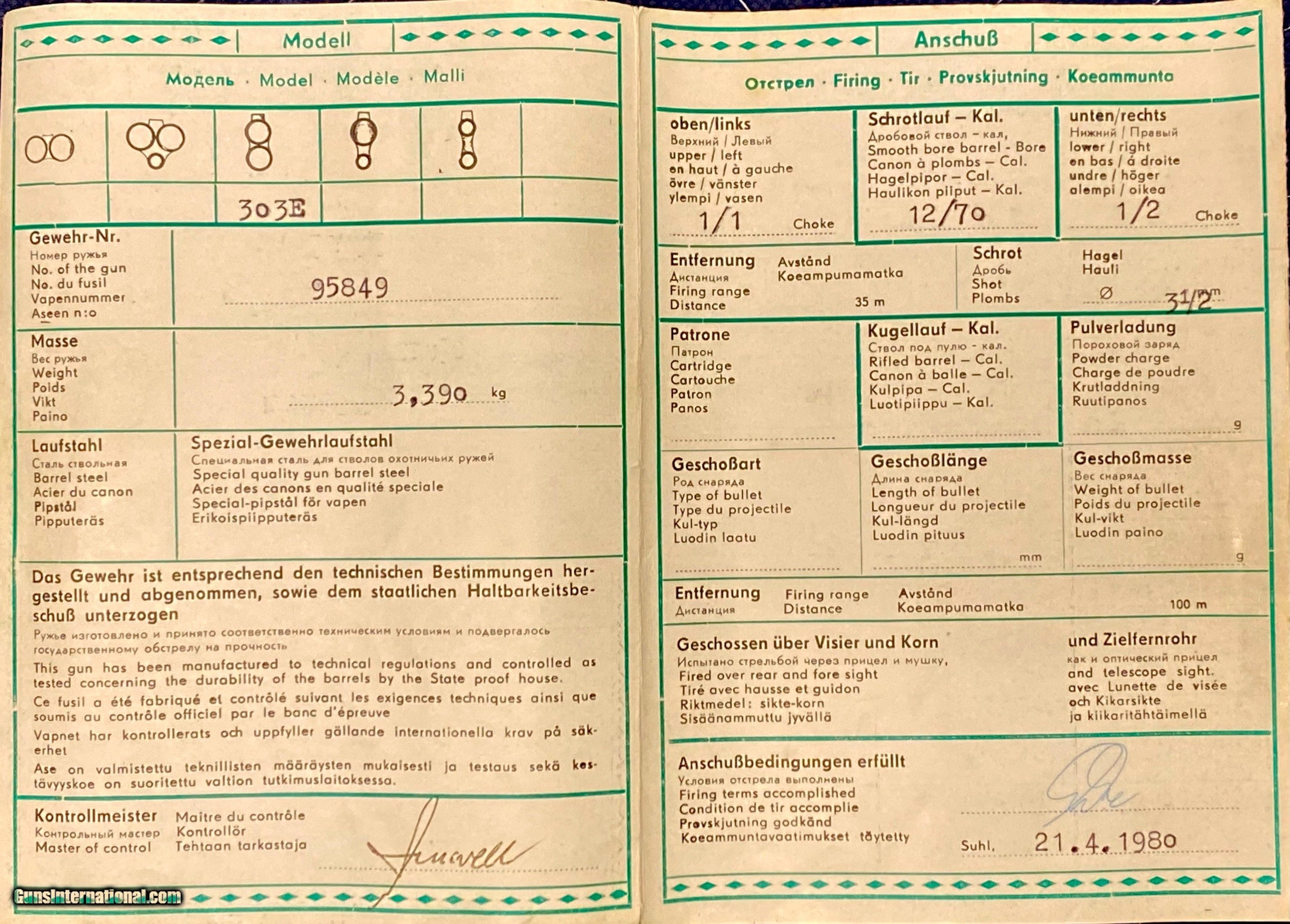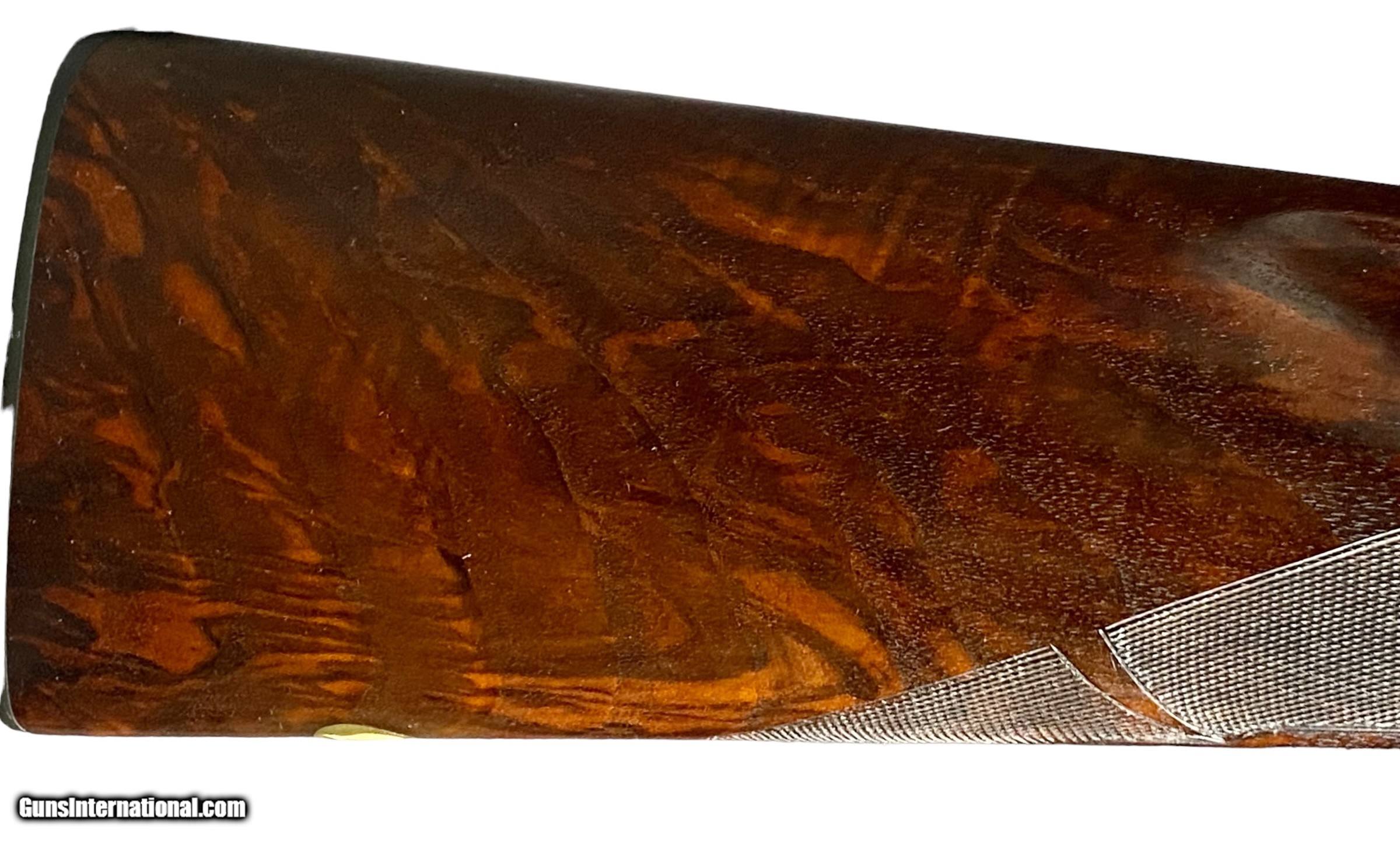 Description: SOLD TO A SATISFIED CLIENT - PLEASE SEE OUR OTHER FINE FIREARMS LISTINGS - MERKEL - GERMANY MADE 1980 MODEL: 303E SIDELOCK O/U WITH HIDDEN TAB HAND-DETACHABLE LOCKPLATES 12GA - 2.75" EXQUISITE GAME SCENE AND SCROLL ENGRAVED - 100% COVERAGE 28" SOLID RIB BARRELS CHOKED IM/F OR 032"/042" EJECTORS AND SINGLE SELECTIVE TRIGGER BEAUTIFULLY FIGURED WALNUT STRAIGHT GRIP SUPERLIGHT STOCK AND THREE-PIECE FOREND.FINELY CHECKERED WITH SINGLE MULLERED BORDER. MERKEL LOGO HARD POLY BUTTPLATE. LOP: 14.375 X 1.25" DAC X 2.125" DAH WEIGHT: 7LBS 8OZ INCLUDES ORIGINAL PAPERWORK FROM MERKEL CONDITION: GUN IS IN LIKE-NEW CONDITION SHOWING LITTLE EVIDENCE OF USE. ALL ORIGINAL FINISHES REMAIN. GUN IS TIGHT. EJECTORS IN-TIME. BORES CLEAR. GENTLEMEN, THIS IS A FINE AND CLASSIC SHOTGUN FROM THE FAMED MERKEL WORKSHOP. MODERN BUILD WITH PRE-WAR QUALITY. RARE TO FIND IN THE SUPERLIGHT STRAIGHT GRIP AND SINGLE TRIGGER CONFIGURATION. ENGRAVING IS SUPERB! YOU WILL BE PLEASED WITH THIS FINE FIREARM. FFL REQUIRED FLAT $50 S/H/I CARD FEE APPLIES SOLD Shotgun Gauge: 12 Gauge Manufacturer: MERKEL Model: 303E Serial Number: 95849 Chambers: 2.75 Ejectors: YES Condition: EXC Metal Condition: EXC Wood Condition: EXC Bore Condition: EXC Barrels: 28 Barrel Type: STEEL Action: SLE Triggers: SINGLE SELECTIVE Rib: SOLID RIB Manufacture Date: 1980 |