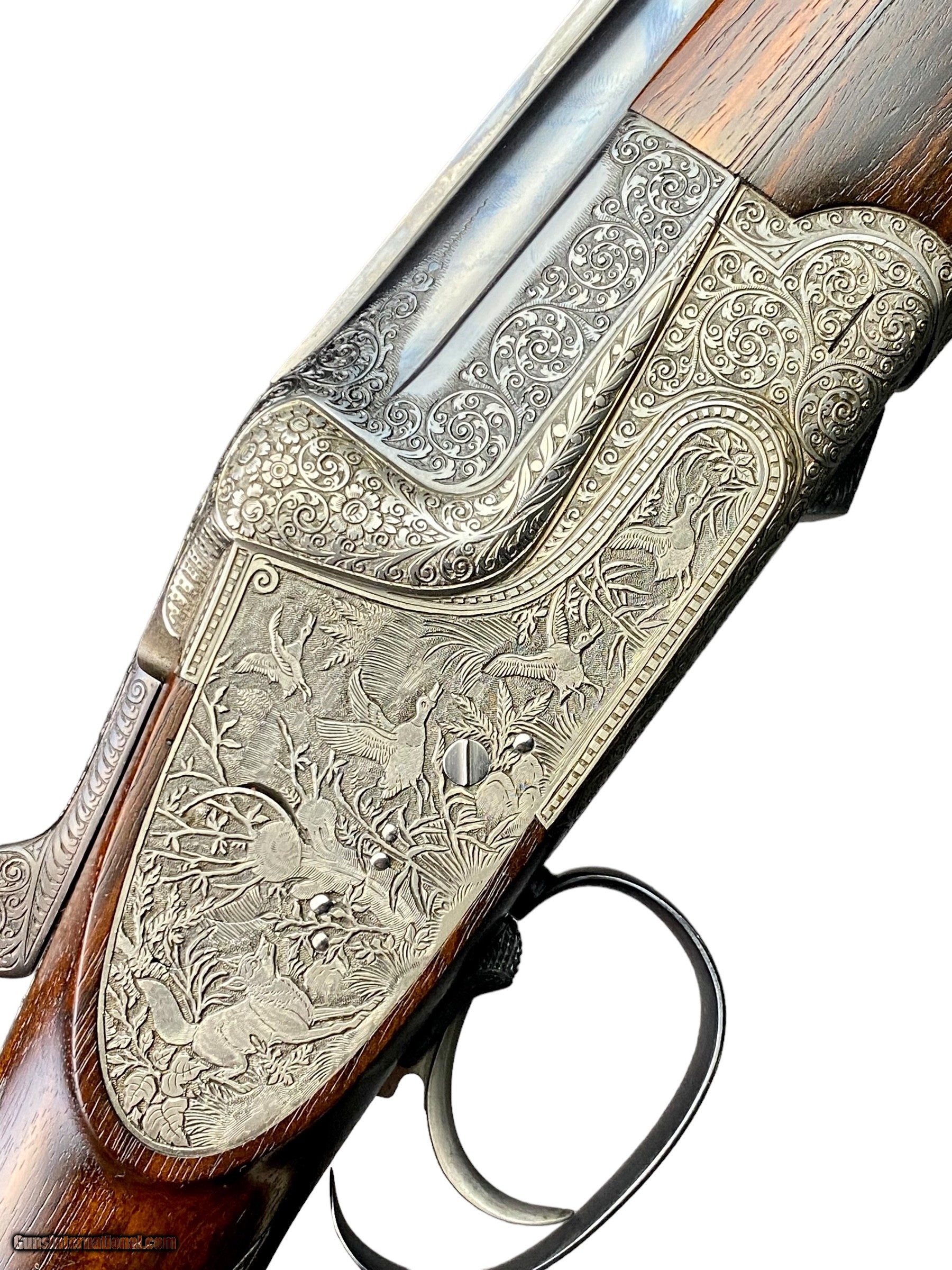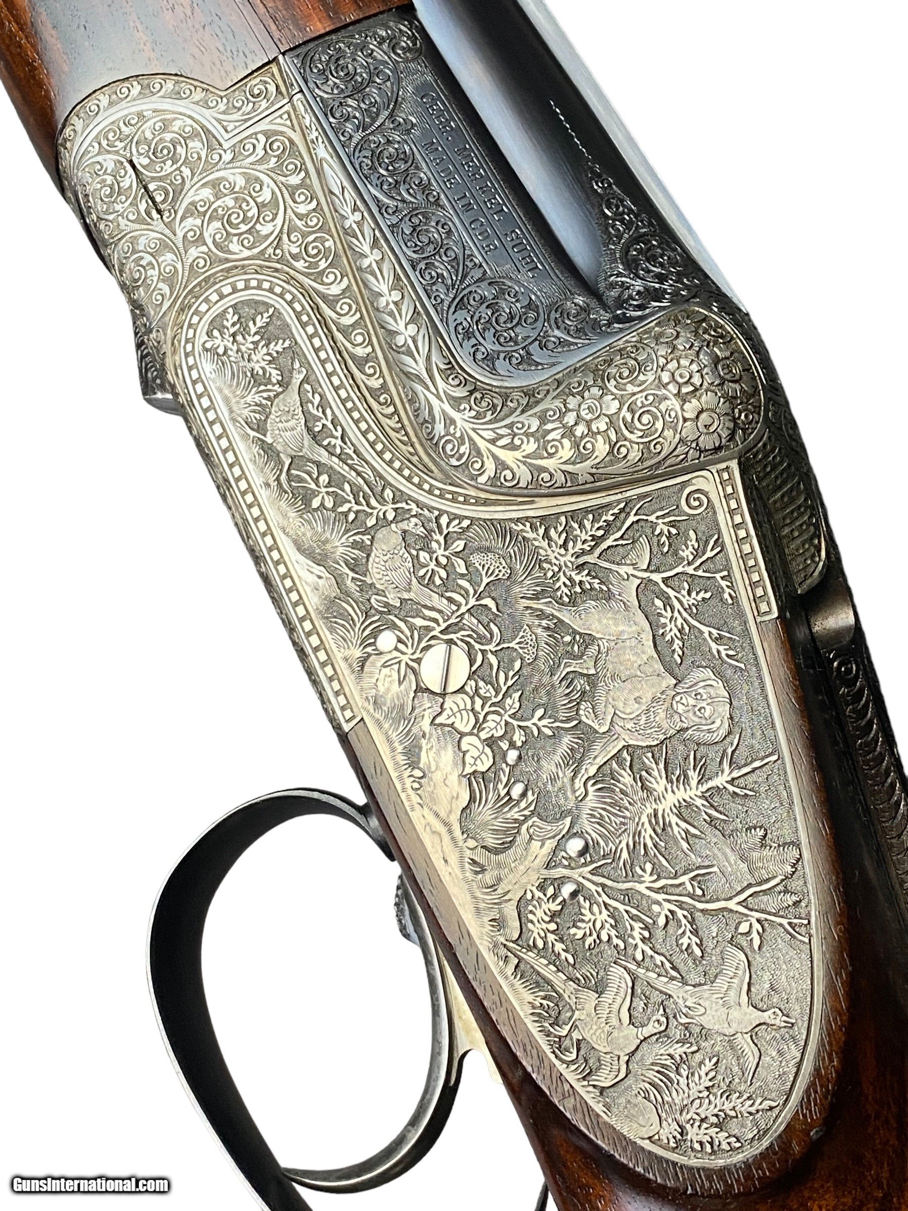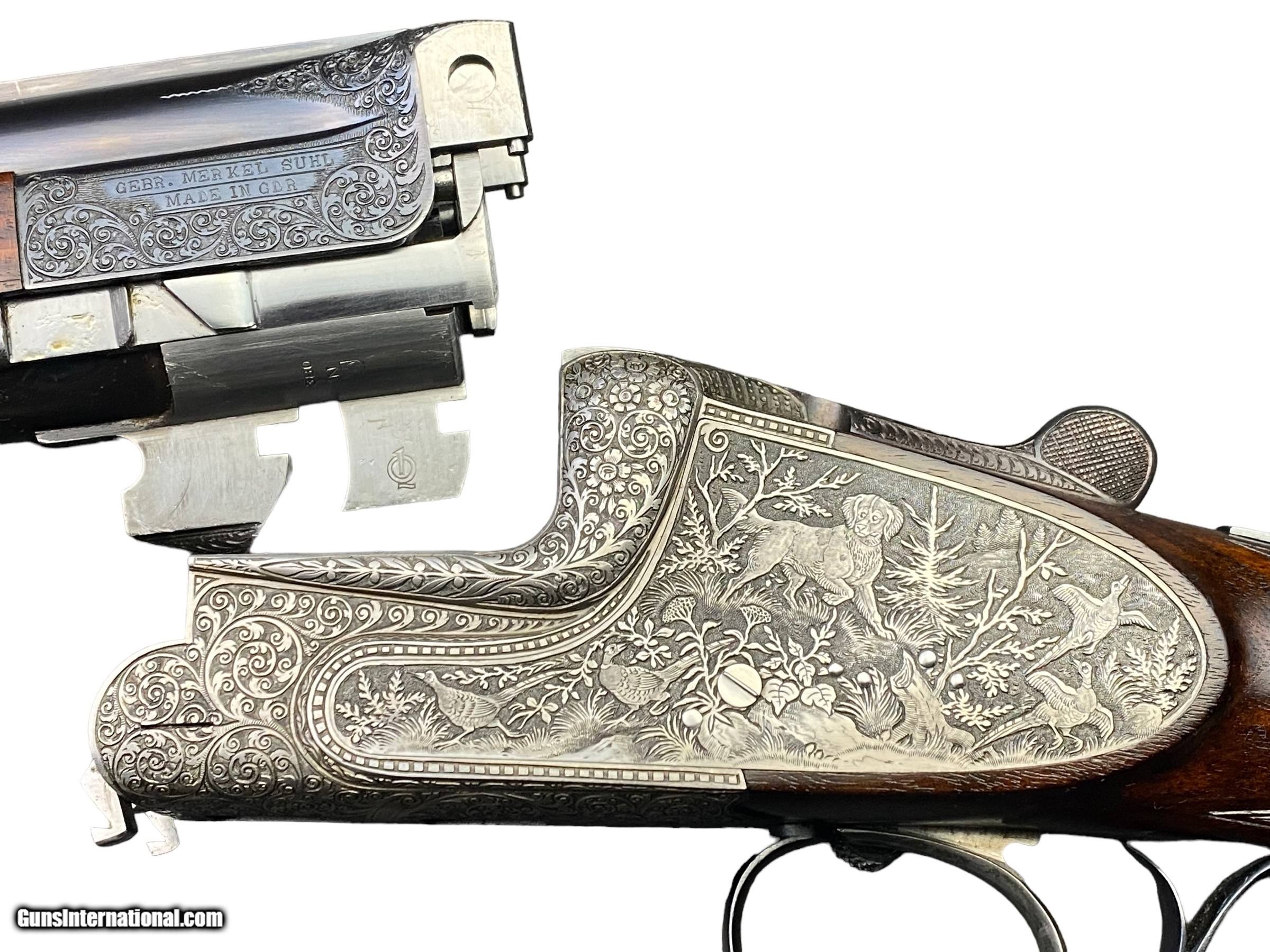 CLASSIC MERKEL 303E GAME SCENE ENGRAVED SUPERLIGHT HAND-DETACHABLE SIDELOCK GAME GUN W/ SINGLE TRIGGER