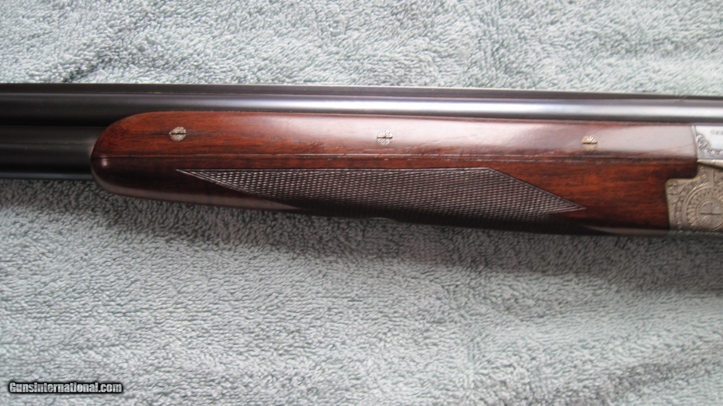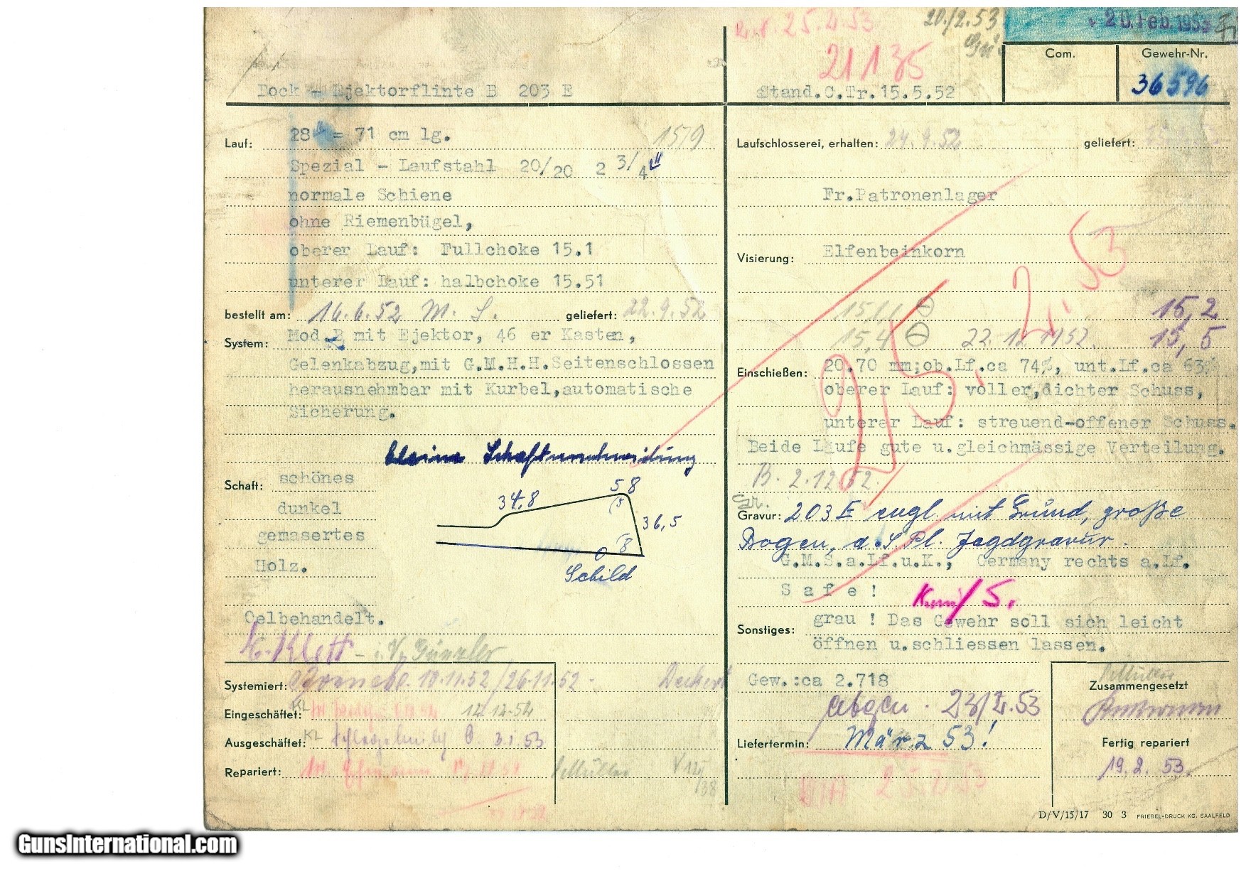 Description: Gebruder Merkel 203EL DELUXE model game scene engraved carved stock, 20 gauge, 28 inch barrels . Has a single selective trigger by Joseph Jerjevic, added in 1980 cost then $ 800 . Joe Jerjevic was a ferlach trained gun maker moved to New York, His work was highly regarded, He was a genius. Made in november 1952 imported by Abercrombie + Fitch New york. Comes with A+F leather trunk,and griffen + howe research records of original owner, . [ There are no choke markings on the barrels, One would need a bore micrometer to properly read choke restriction and i do not have one, A+F log on the sales record states Imp. + 3/4 choke] BUYER PAYS SHIPPING SOLD Curio/Relic: Yes Manufacturer: Gebruder Merkel Model: MOdel 203 EL Bore: 20 gauge EXC. Chambers: 2 3/4 Ejectors: auto Condition: EXC. Metal Condition: EXC. Wood Condition: EXC. Bore Condition: EXC. Barrels: 28 inch Barrel Type: blue Action: Holland + Holland side lock Triggers: single selective Gauge Info: 20 gauge Stock: see photo Stock Comb: 1 3/8 Stock Heel: 2 1/4 Butt Pad: horn Rib: ventilated Finish: game scene coin Sights: Ivory front bead Manufacture Date: november 1952 Choke Left: IMP. Choke Right: 3/4 Engraving: game scene Case: A+F leather trunk Proof:Nitro: yes |
