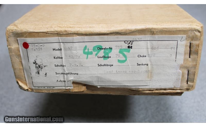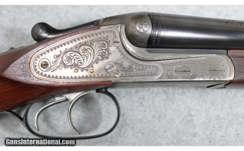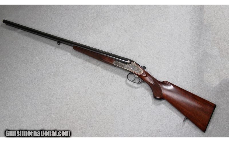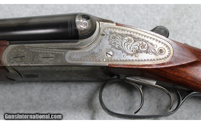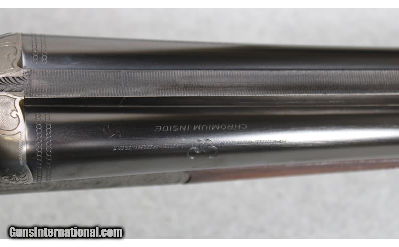 Description: Factory engraved Gebrüder Merkel Model 47S sidelock double barrel shotgun chambered 12 gauge. German proof marks date the shotgun to 1969. Features include a coin-finished action with floral scroll engraving and blued-steel barrels with a single brass bead sight on a matted soldi rib. Has double triggers and a tang-mounted automatic safety. Overall, in very good condition with very minor handling marks. Comes with a correct factory box. 12 Gauge SOLD Curio/Relic: Yes Chambers: 2 3/4 inch with Auto Ejectors Metal Condition: Excellent with Minor Handling Marks Wood Condition: Very Good with Minor Handling Marks Bore Condition: Bright And Clear with No Pitting Barrels: 30 inch Triggers: Double Stock Dimensions: LoP: 14 3/8 inch; DC: 1-9/16 inch; DH: 2-9/16 inch Fore End: Checkered Splinter Butt Pad: Checkered Plastic Weight: 7 Lbs 2 oz Sights: Single Bead Front Chokes: Fixed with .034/.039 Constrictions Item Location: Fort Worth, TX |