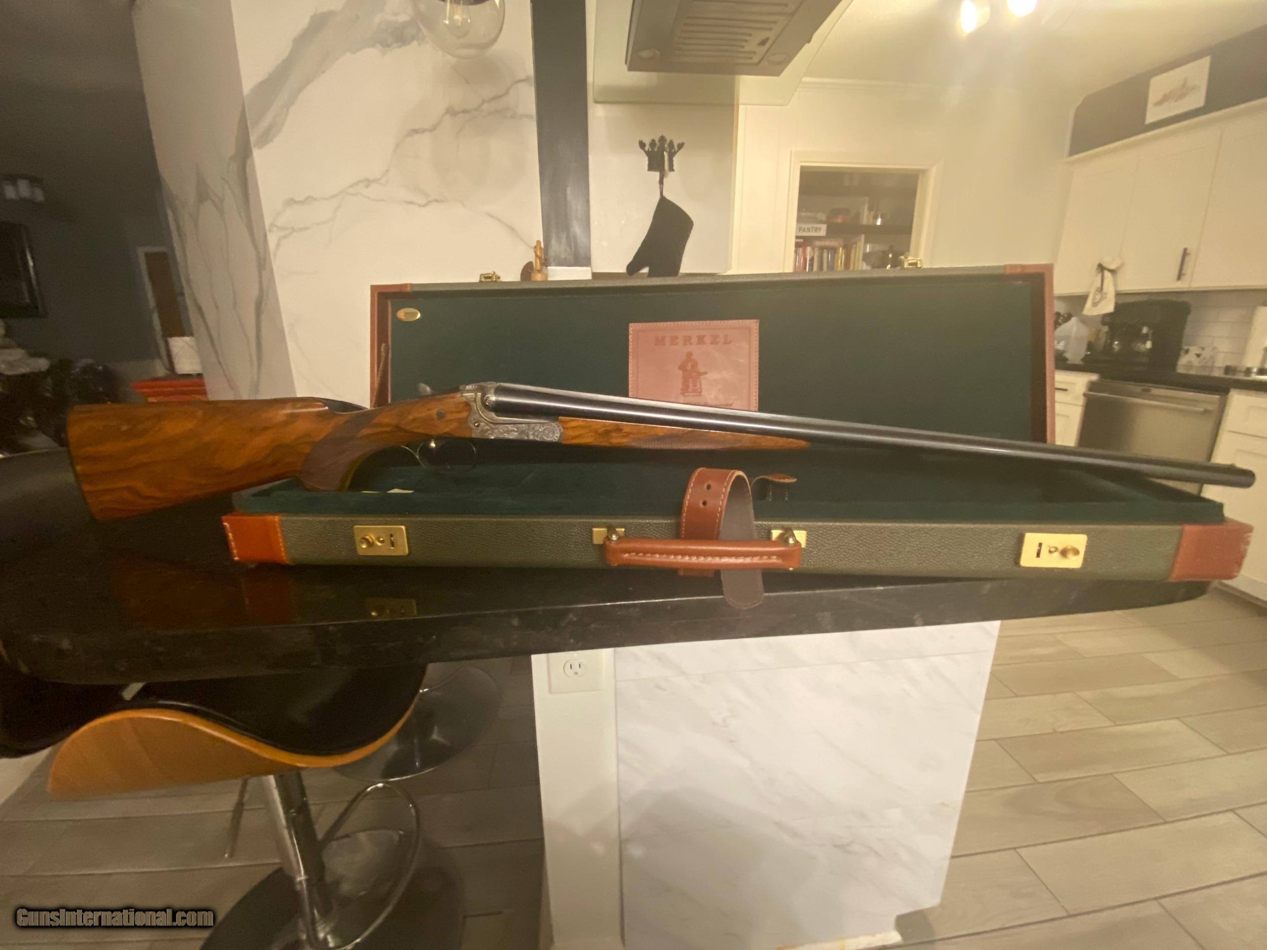 Description: A very litely used gun. In great shape and priced to sale. Probably not more than 100 rounds fired through it. SOLD Shotgun Gauge: 20 Gauge Manufacturer: Merkel Model: 20 gauge Serial Number: 384362 Barrel Length: 28” Bore: 20 gauge Condition: Excellent Metal Condition: Excellent Wood Condition: Excellent Bore Condition: Excellent Triggers: Single Manufacture Date: 11/2001 Chokes: Multiple-see picture. Extras: Chokes |