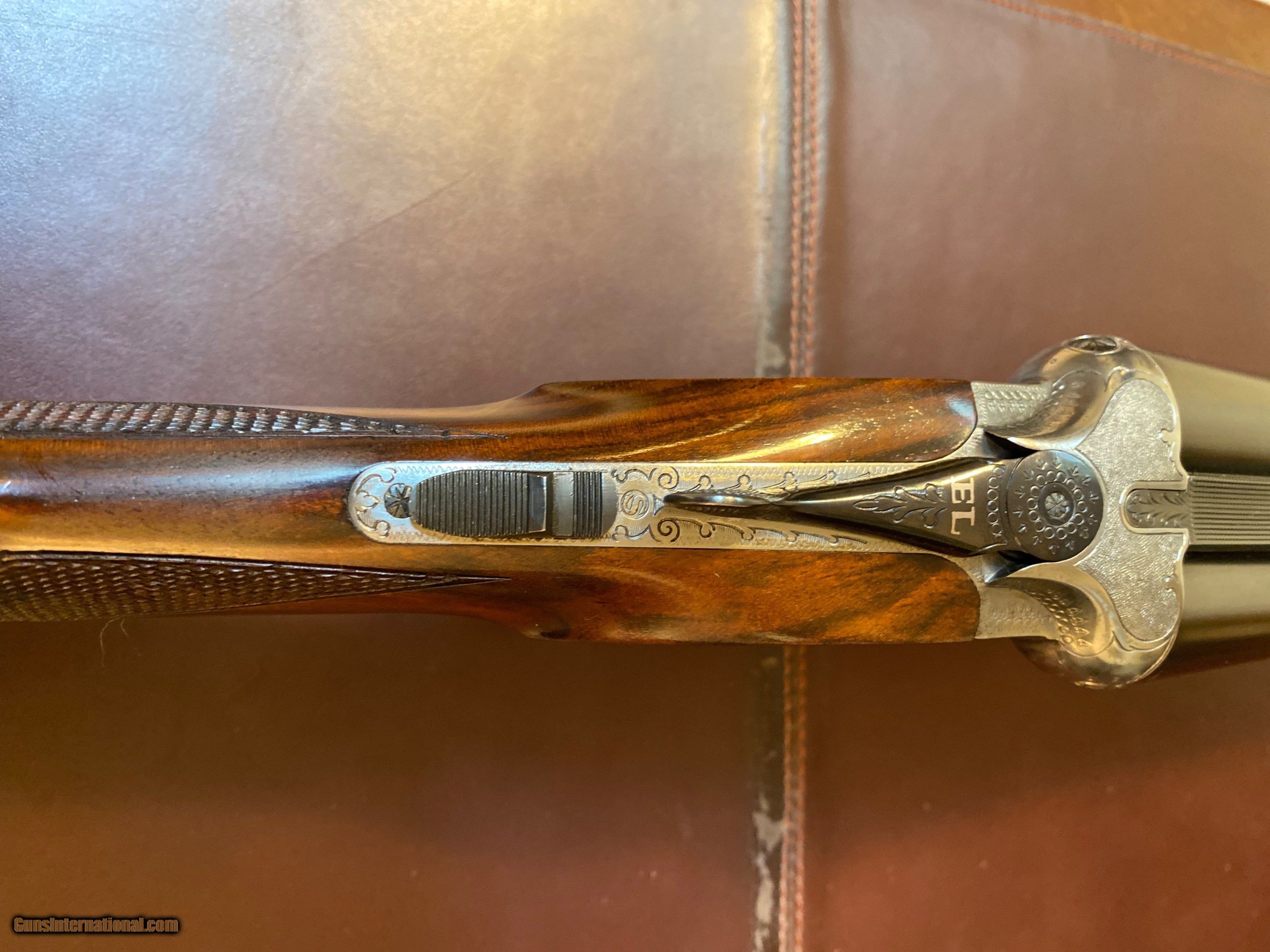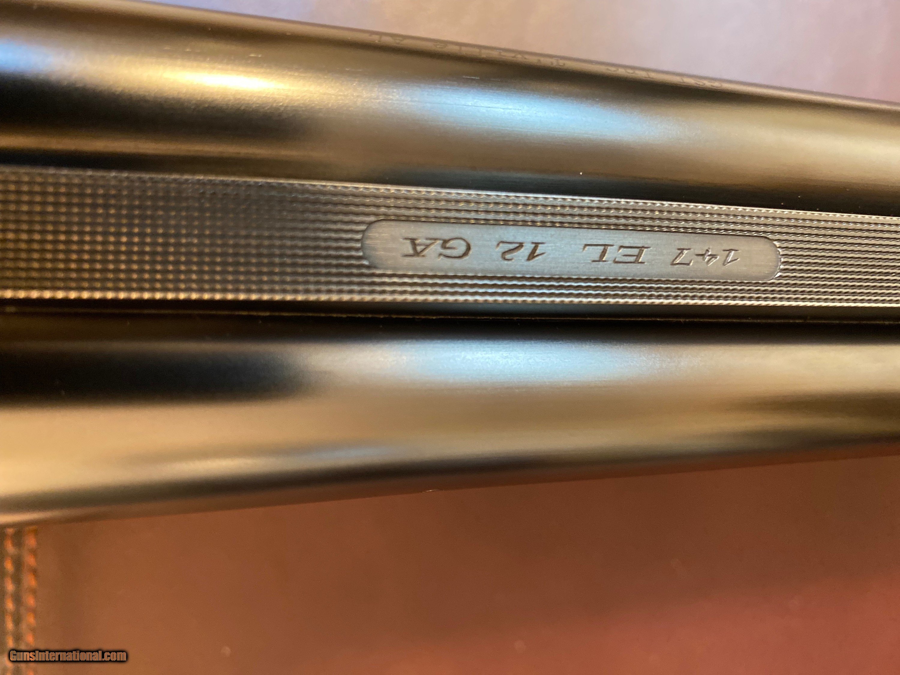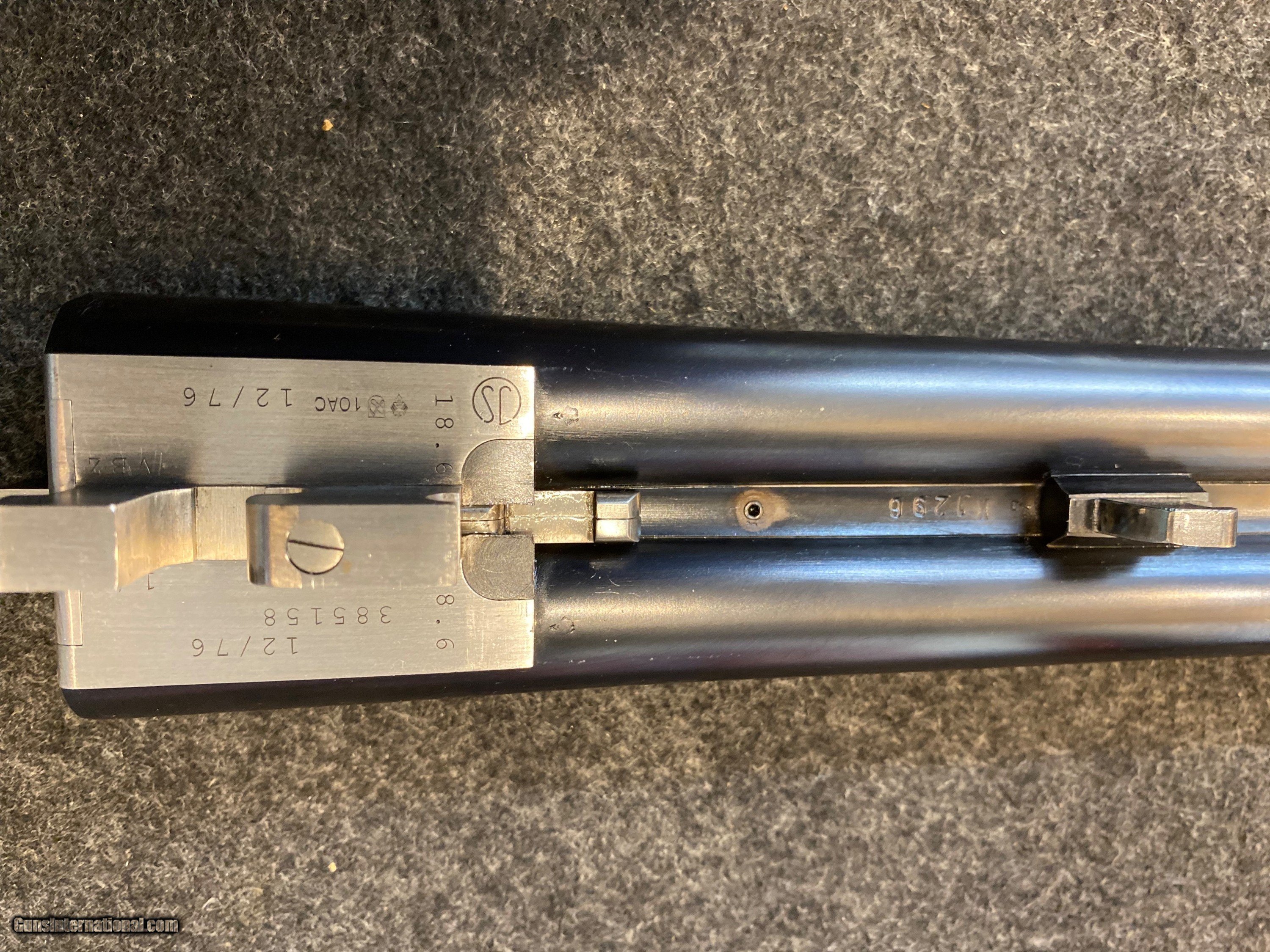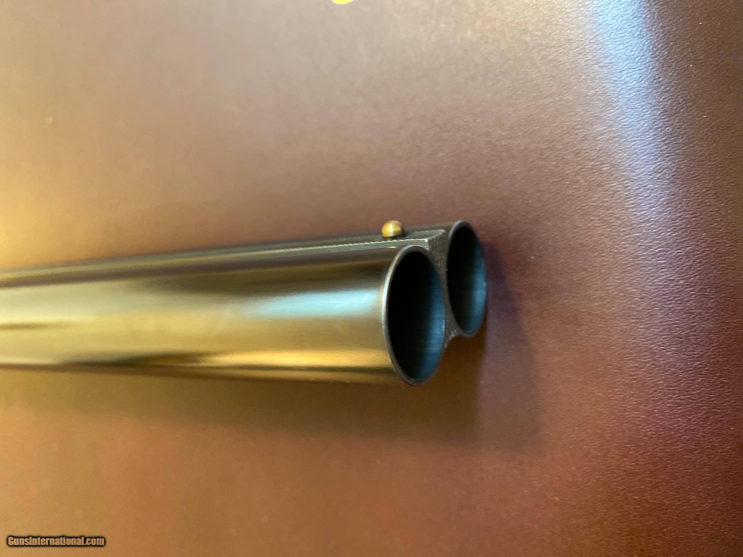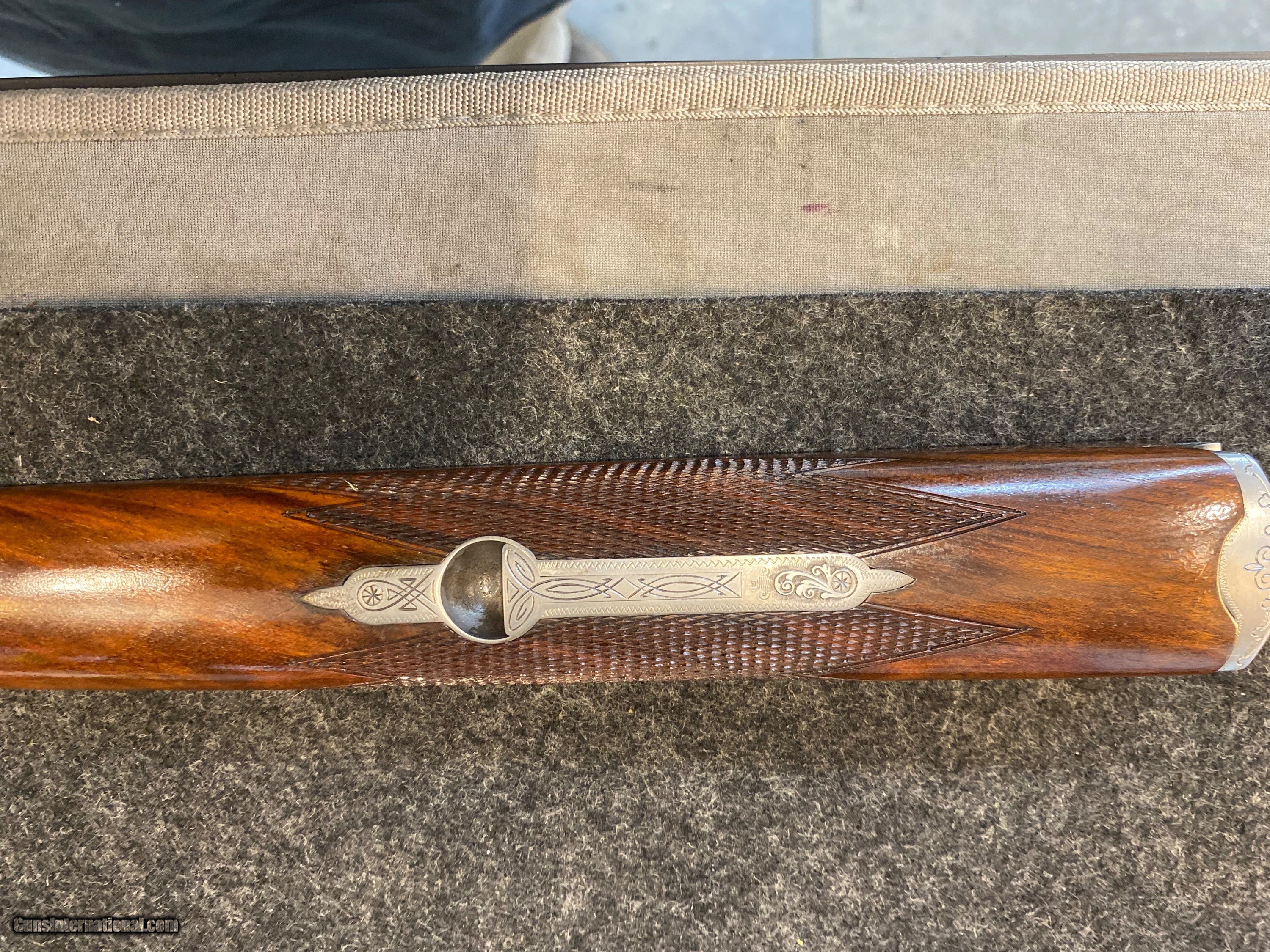 Description: Here is a beautiful engraved Merkel 12 Gauge Side x Side shotgun, it has cocking indicators, fixed chokes Mod, on the left and IC on the right, automatic safety, bore is 18.6 and is overall in excellent condition. LOP front trigger is 14 3/4 back trigger is 14 inches, has a Kick-Ees recoil pad for soft comfortable shooting. Hardly ever shot and has been a safe queen. Purchased new from L.L. Bean, Freeport, Maine. Thank you for looking and remember it is always "GO TIME" !!!! $2995.00 SOLD Shotgun Gauge: 12 Gauge Manufacturer: Merkel Model: 147 EL Barrel Length: 28 inch Bore: 18.6 Ejectors: Yes Condition: Excellent Metal Condition: Excellent Wood Condition: Very Nice Bore Condition: Bright and Shiny Triggers: Double Stock: English Style Fore End: Splinter Butt Pad: Kick-Eez Rib: Slight Raised Weight: 7 lbs. Choke Left: MOD Choke Right: IC Engraving: Yes Case: Yes |