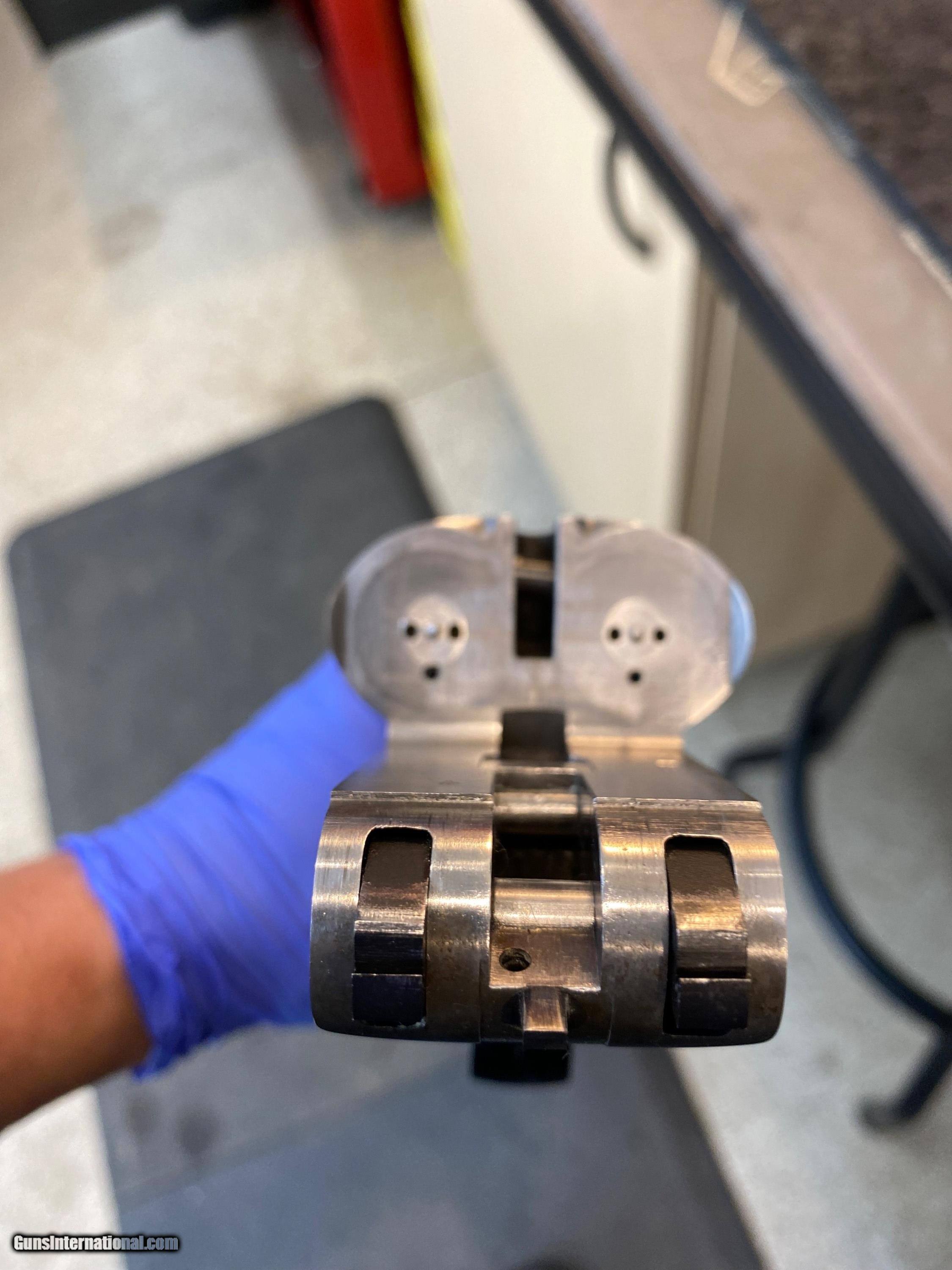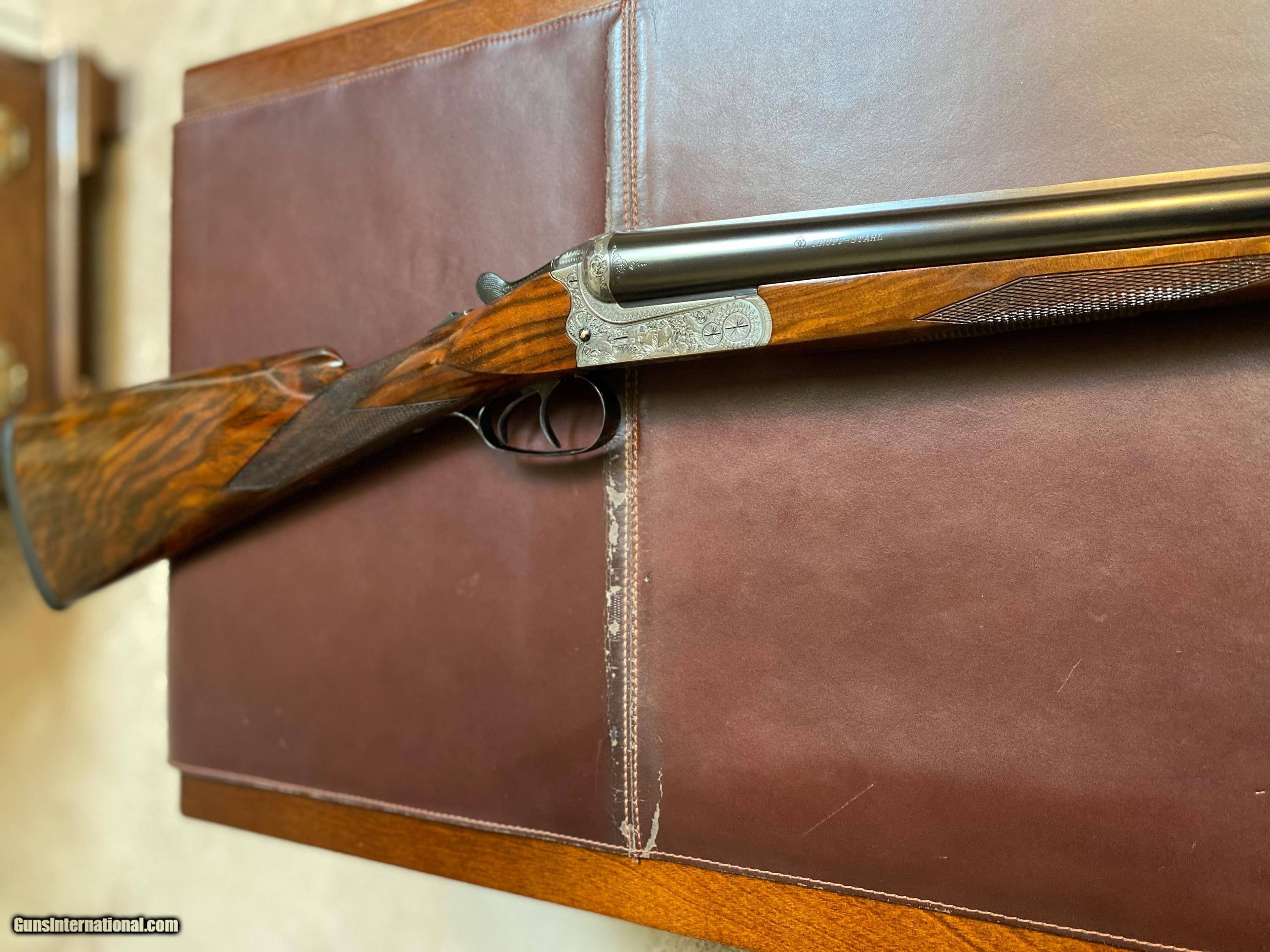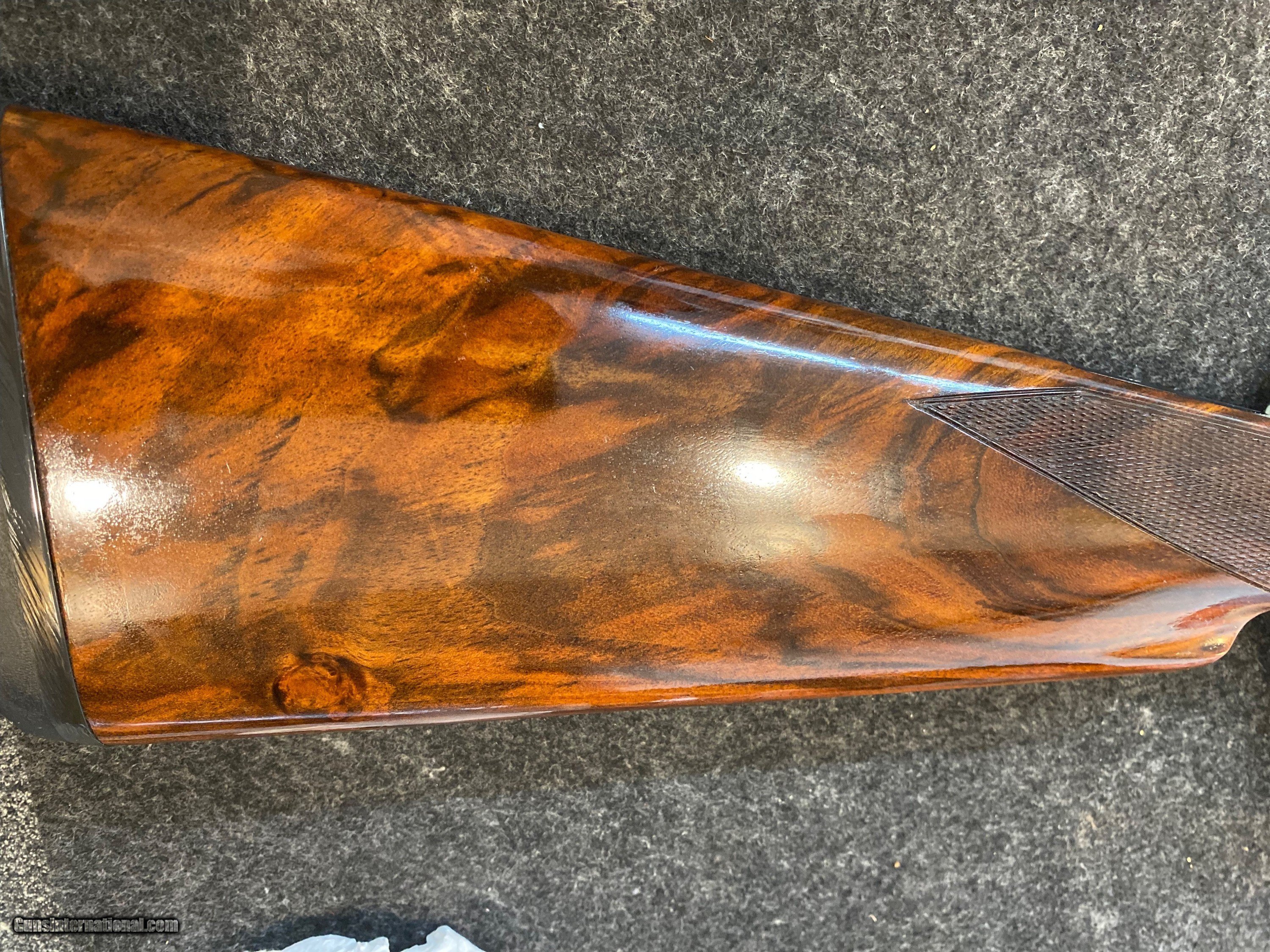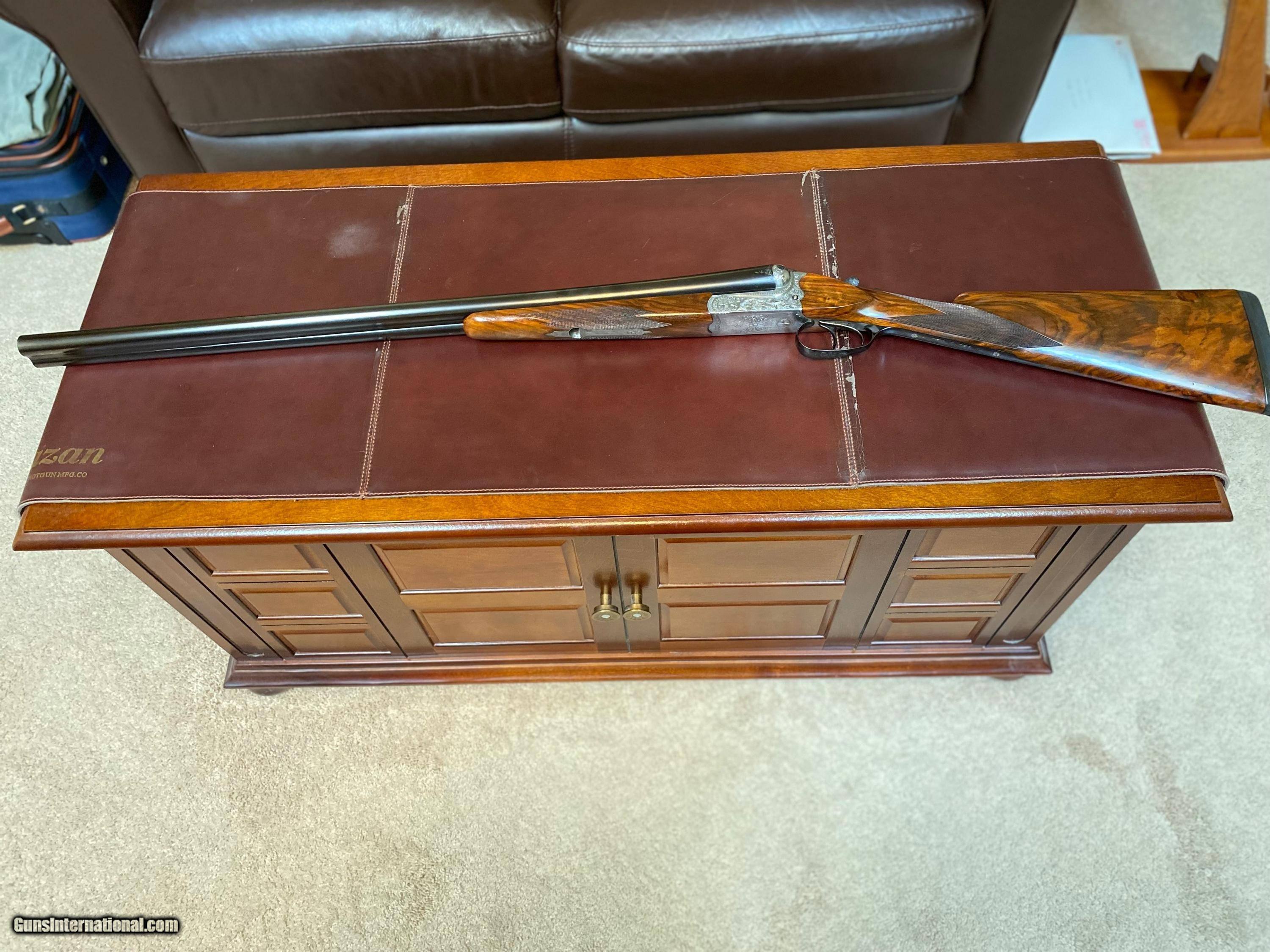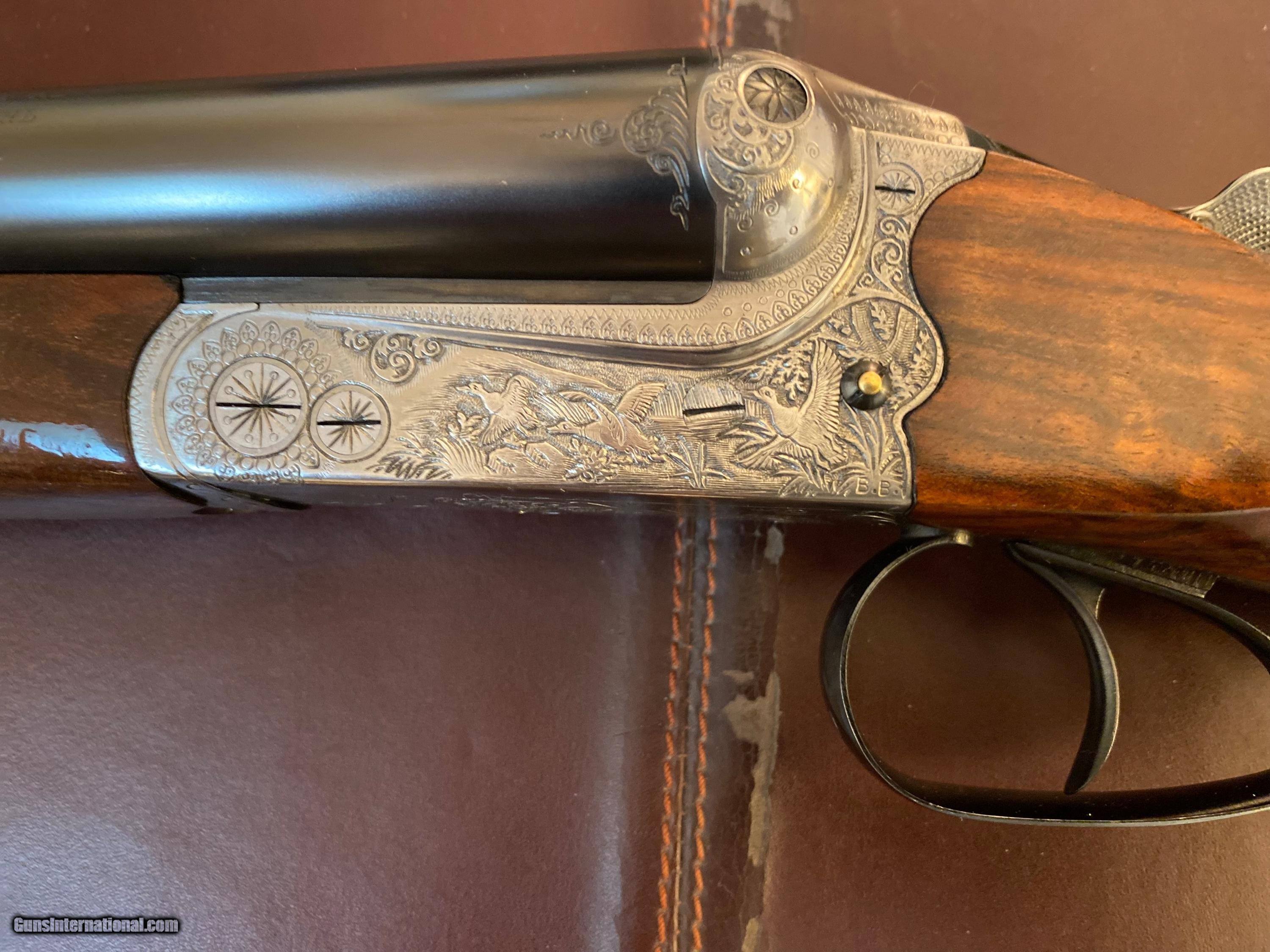Description: Here is a beautiful engraved Merkel 12 Gauge Side x Side shotgun, it has cocking indicators, fixed chokes Mod, on the left and IC on the right, automatic safety, bore is 18.6 and is overall in excellent condition. LOP front trigger is 14 3/4 back trigger is 14 inches, has a Kick-Ees recoil pad for soft comfortable shooting. Hardly ever shot and has been a safe queen. Purchased new from L.L. Bean, Freeport, Maine. Thank you for looking and remember it is always "GO TIME" !!!! $2995.00 SOLD Shotgun Gauge: 12 Gauge Manufacturer: Merkel Model: 147 EL Barrel Length: 28 inch Bore: 18.6 Ejectors: Yes Condition: Excellent Metal Condition: Excellent Wood Condition: Very Nice Bore Condition: Bright and Shiny Triggers: Double Stock: English Style Fore End: Splinter Butt Pad: Kick-Eez Rib: Slight Raised Weight: 7 lbs. Choke Left: MOD Choke Right: IC Engraving: Yes Case: Yes |