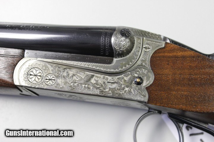 Description: Merkel 147 EL. 20 ga. 27” ic/mod. Here is a beautiful handmade, German quality gun. The Merkel name is known worldwide as building a great shotgun. The action on this gun is gone is a coin finish. It is that totally engraved with a deep relief game scene engraving. The game scenes are then bordered by attractive scroll accents. The wood is highly figured with lots a black grain running throughout the wood. The wood is finished off in a hand rubbed oil finish. You have a traditional game gun pattern with double triggers, straight stock and a splinter forearm. The gun has seen little use and is in near new condition. $4250. Quality Arms, Houston, TX. Call Direct: 281-870-8377 ( 1 ½ x 2 ½ x 14 ¾ * 6 lb) LL- 18-13 SOLD Manufacturer: Merkel |