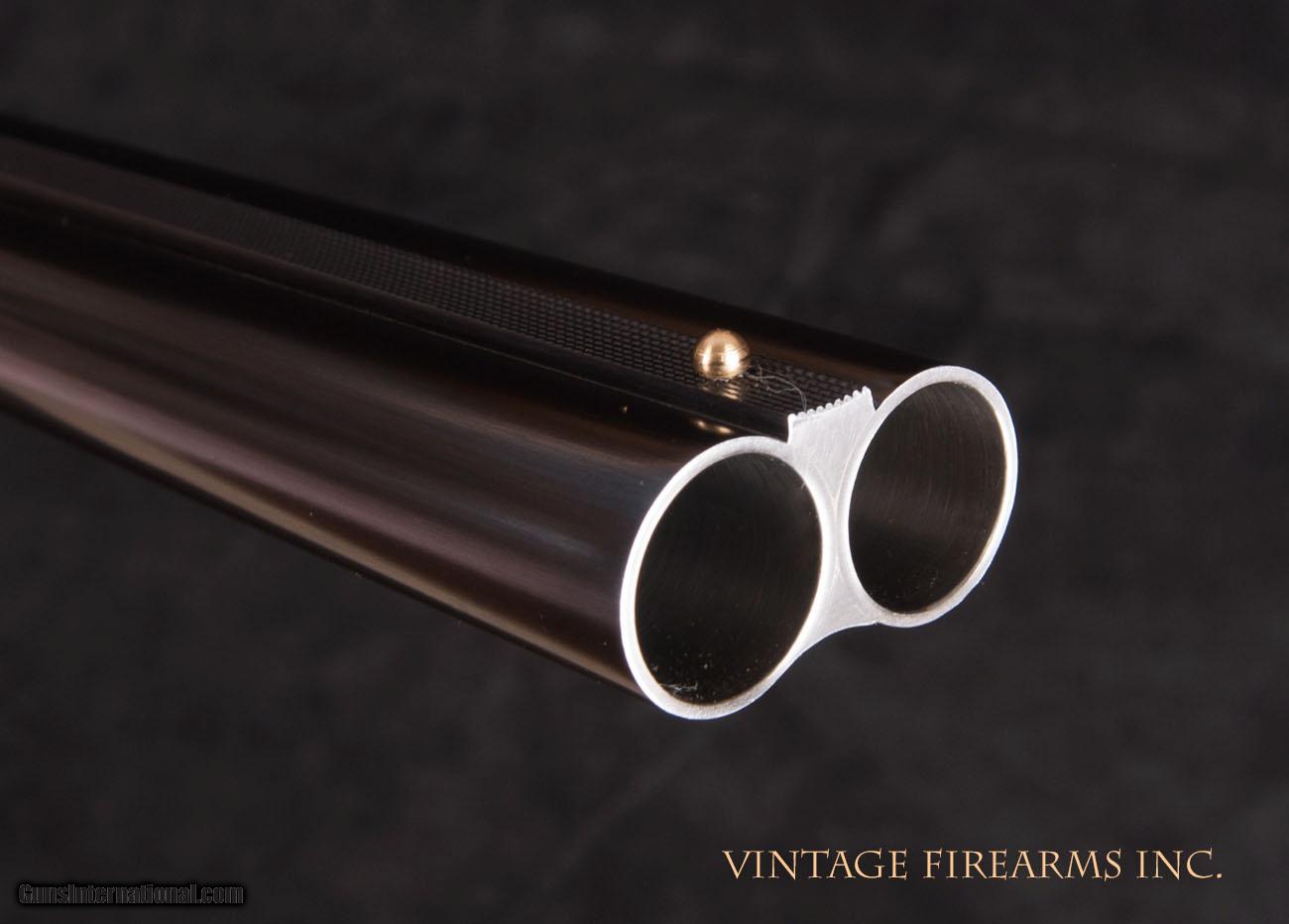 Description: Merkel 147 SL 20 Gauge SxS Shotgun L.L. BEAN 100th ANNIVERSARY, #5 of 20 TOTAL General Specs: Merkel, Year 2013, 20 Gauge, 6lbs 6oz, Side by Side Serial Number: 482490 This is a very special, NEW IN THE BOX, LIMITED EDITION MERKEL WITH ONE-OF-A-KIND UPGRADES. In celebration of their 100th Anniversary L.L. Bean contracted with Merkel to create a unique and highly decorated sidelock double gun in 20ga. The base model from Merkel is the 147SL, and L.L. Bean had them customize it with a checkered butt, a 3" wedge of engraving at the barrel breech, fine game scene engraving with gold inlays on the bottom of the action dedicating the gun to the anniversary, and gold numbers in the rib showing this gun as number 5 of 20 total made, signed by master engraver B. Hafner, upgraded wood with fine skip line checkering, packaged in a fine leather case with an embossed label both inside and out. The case is fully accessorized with cleaning rod, jags, snap caps, etc. The Merkel 147SL is a fine gun in and of itself, with hand engraving and checkering. L.L. Bean has been a world leader in the outdoor business and this limited edition gun will maintain a very collectible and special status for generations to come. It is a stunning gun both visually and in its handling characteristics. A great gun for upland game or clay targets, and a fitting tribute to an American icon in the hunting and gunning world. This gun is new, unfired, with the original box, hang tags, and one of the nicest leather trunk cases I have seen, even on guns at 5 times the price. A great investment quality firearm with prestige galour. Barrels Barrel Length: 28" Chokes: .008/.015 IC/M Bores: mirror Bore Diameter: .630/.630 Wall Thickness: .030/.032 % Blue: 100% factory new Chambers: 3" Ribs: tight Sights: single Action Action: new, centered Ejectors or Extractors: ejectors, strong, timed Case Color: coin finish Screws: perfect Engraving: finest game scene B. Hafner signature Trigger Type: double, crisp Trigger Guard Color: 100% coin finish Stock Type: english stock/splinter forend, Oil new LOP: 14 1/2" LOP To End Of Wood: same DAH: 2 1/2" DAC: 1 1/2" Cast: 3/16" off Checkering Condition: skip line checkering Butt Treatment: checkered butt There are more photos upon request. We offer a 30 day mechanical warranty on this fine shotgun. Call us for full details. PLEASE SEE MY OTHER FINE VINTAGE FIREARMS. Just open one of my ads and click on the line that says “see all items from this seller” and a very nice list of fine sporting and collectible arms will appear. I have many more fine sxs shotguns not yet listed. Thanks for looking! We employ a full time gunsmith on premises and can perform alterations to suit your needs within a few weeks of purchase. Payment Methods: Money Order, Certified Check, Personal Check, Wire Transfer Inspection Period / Return Policy: Three Days from the date the item was received. Sales Tax: 6% Michigan Only Shipping & Insurance: Ground $140.00 We ship internationally! Item Condition: Used Requires FFL?: Yes If you have any questions about this item or payment, please email or call us directly, at #616-292-6240. Thanks! Vintage Firearms, Inc SOLD |