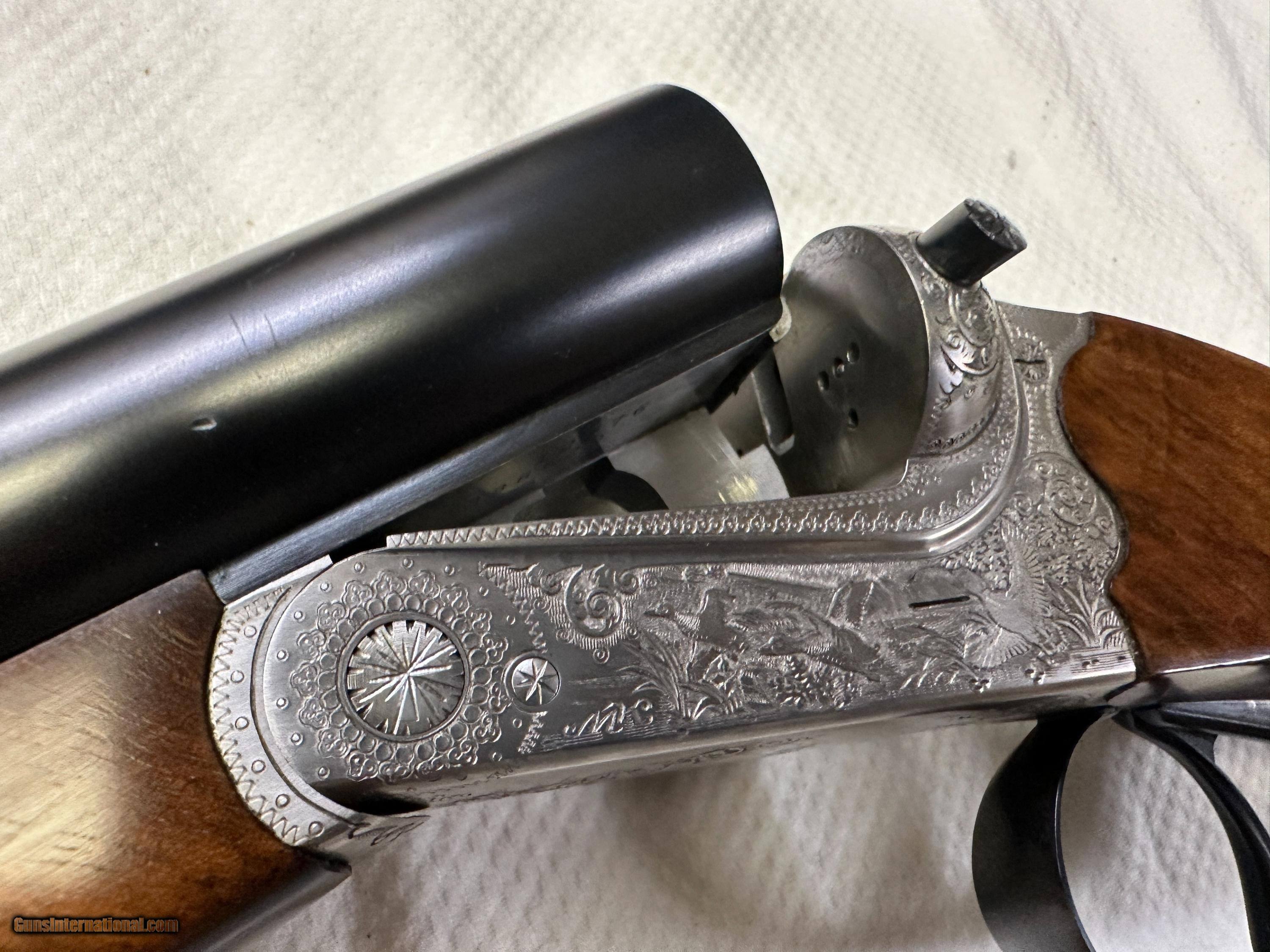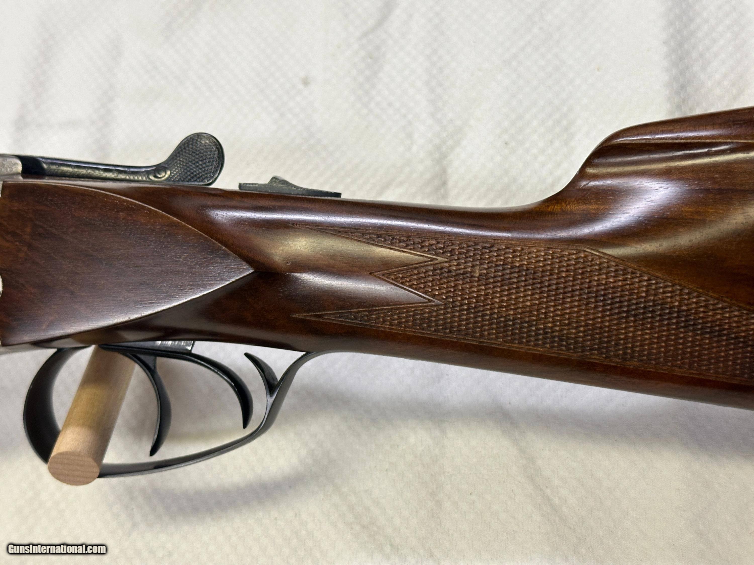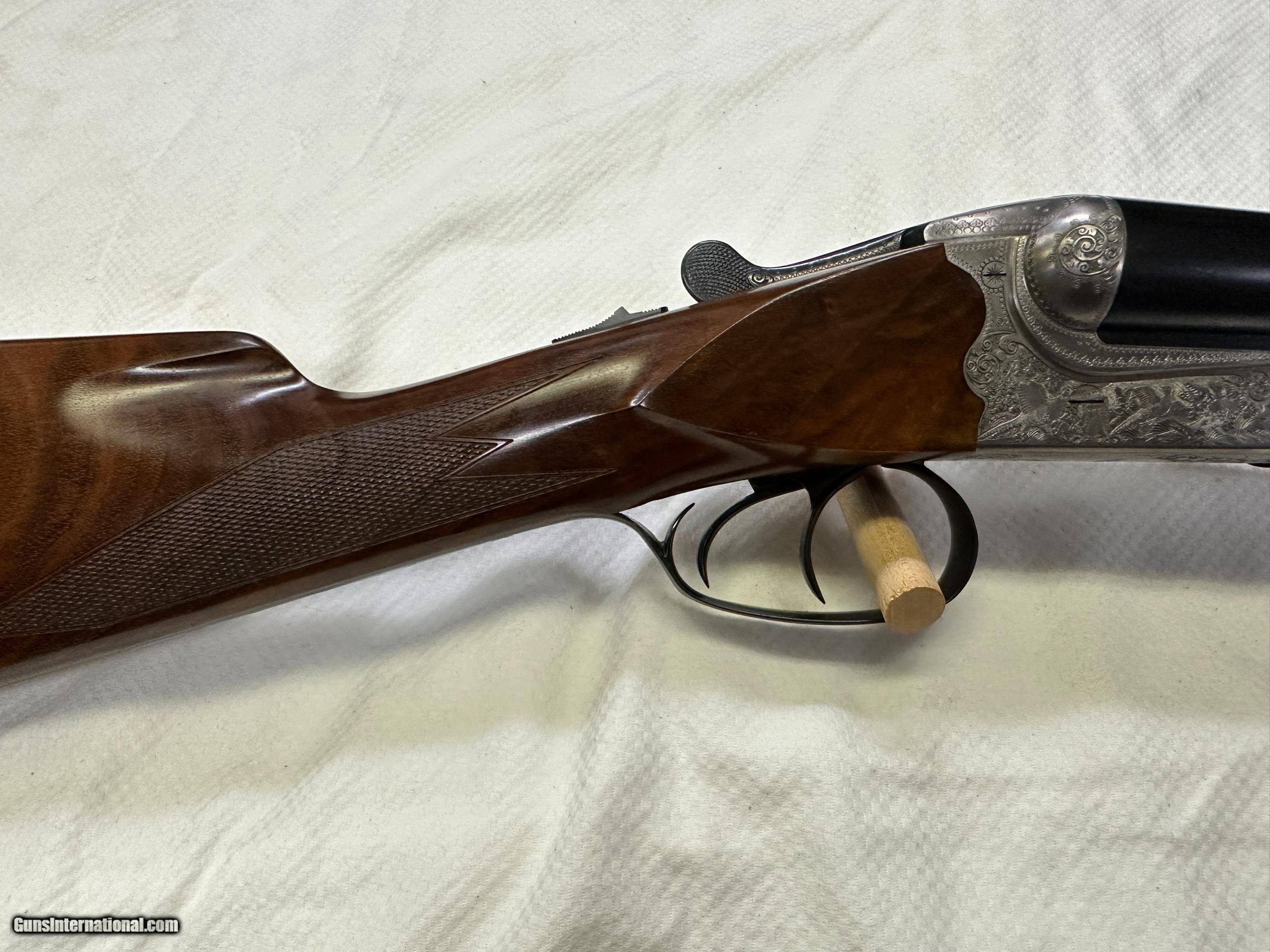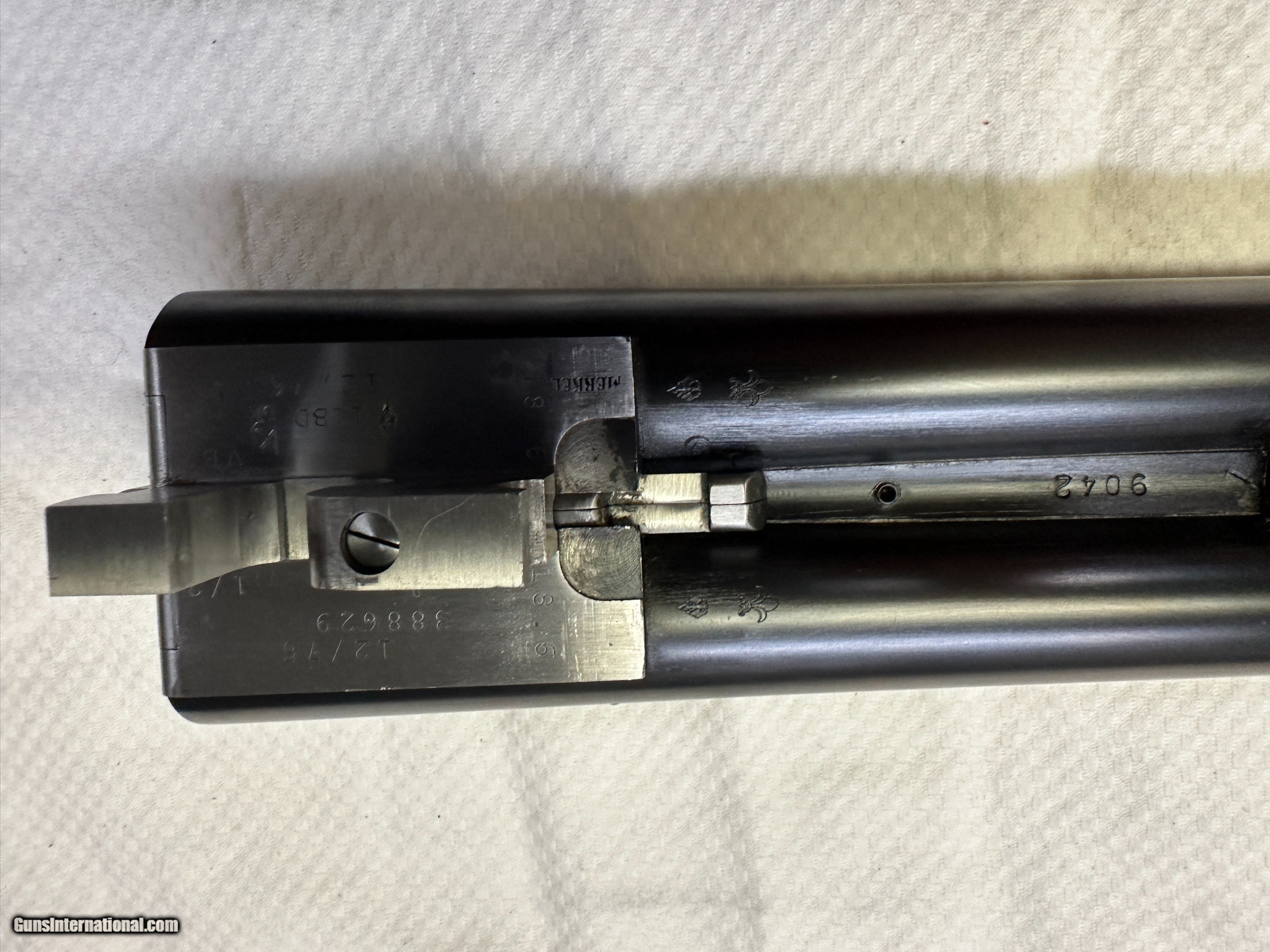 Description: Beauitful Merkel 147E in 98+% condition has been fired but very little and shows as near new. Double triggers and ejectors chokes are fixed Mod/IC. Gun comes with free new but slightly damaged Negrini case. No California sales. Arkansas residents will be charged 7.5% sales tax. Buyer pays actual shipping and insurance cost. Item will only be shipped to verified FFL, be sure you can purchase item where you live. No returns unless item is not as advertised, buyer will pay for all return FFL fee's, shipping and insurance cost. SOLD Shotgun Gauge: 12 Gauge Manufacturer: Merkel Model: 147E Serial Number: 388629 Barrel Length: 27 7/8 Bore: MOD / IC Chambers: 3 Ejectors: YES Condition: 98%+ Metal Condition: 98%+ Wood Condition: 98%+ Bore Condition: 100% Barrels: SIDE BY SIDE Barrel Type: SIDE BY SIDE Action: Break open Triggers: TWO Stock: WOOD / ENGLISH Stock Drop: 1 15/16 Stock Comb: 1 1/2 Stock Heel: 2 1/2 Stock Cast: NONE Fore End: WOOD / SPLINTER STYLE Butt Pad: FACTORY ORIGINAL LOP: 14.25 TO FRONT TRIGGER Rib: YES 3/8" wide Finish: Gloss Weight: 7.3 LBS. Sights: FRONT BEAD Chokes: FIXED Choke Left: MOD Choke Right: IC Engraving: YES FACTORY Case: Negrini with small dent Item Location: Arkansas |