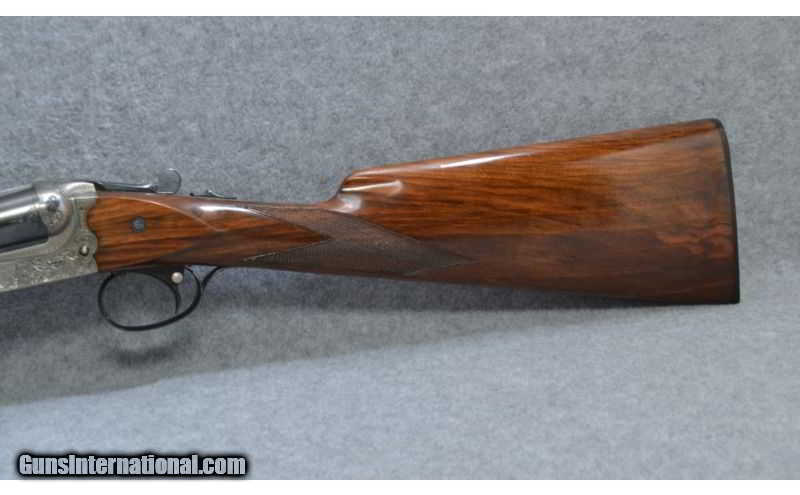 Description: Great Side/Side Shotgun that will Turn Heads at the Range and a Great Bird Gun Also. Excellent Craftsman and Quality in this Gun SOLD Caliber Info: 12 GA Chambers: 3 Inch Metal Condition: Excellent Wood Condition: Excellent Bore Condition: Bright & Shiny Barrels: 28 Inch Triggers: Blue Steel Selectable Stock: Highly Figurative Stock Dimensions: LOP: 14 3/4 Inch Fore End: Highly Figurative Butt Pad: Black Weight: 7 Lbs Sights: Front: Bead Chokes: Improved Cylinder / Improved Cylinder Ejector Extras: Case Item Location: Thornton, CO |