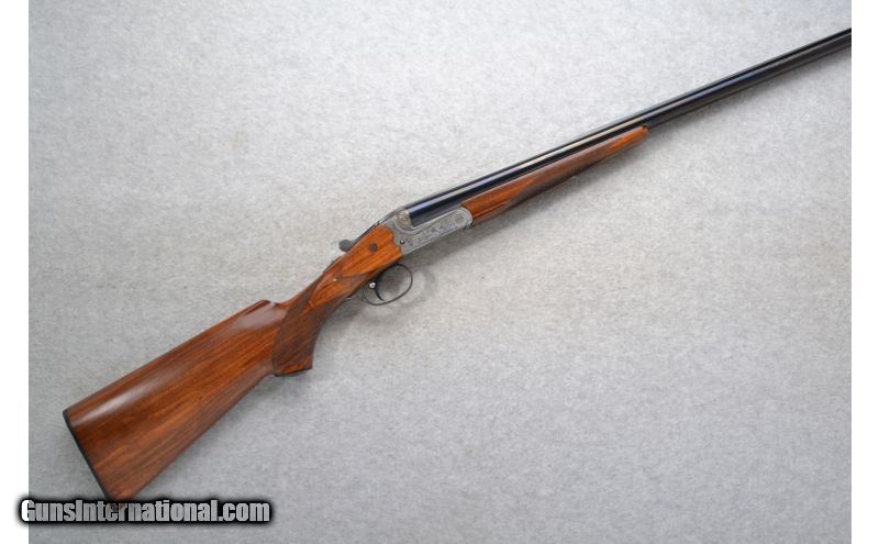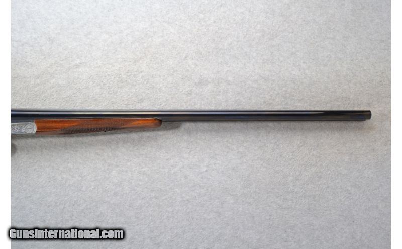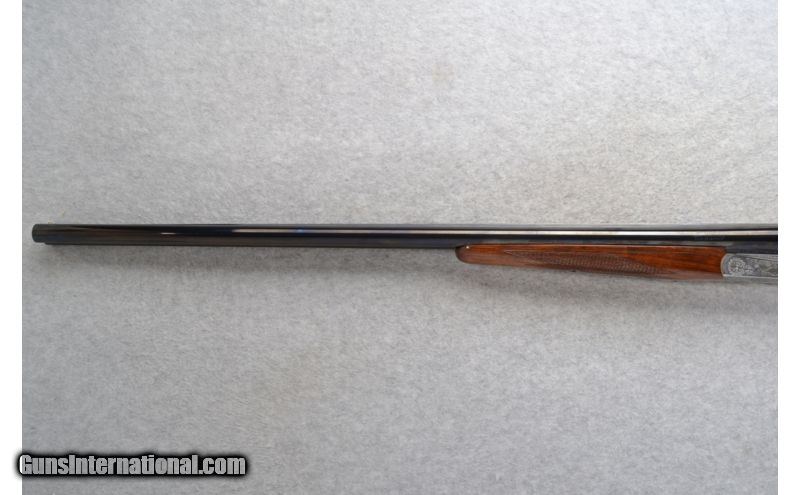 Description: This fine Merkel 20 Ga. with 3 inch chambers side by side shotgun comes with a 26.75 inch barrel and has fixed IC and Mod. Chokes. It has a Single Selective Trigger and Automatic Ejectors. It has a very nicely done game scene receiver that was Master Engraved & Signed by Dorothee Wage. In excellent condition it comes in it's original cardboard box with Owners Manual. It has an original date of purchase of 03/2000. SOLD Manufacturer: Made in Germany. Caliber Info: 20 Ga. Chambers: 3 inch. Metal Condition: Excellent. A couple of minor handling marks. Wood Condition: Excellent with a couple of minor handling marks. Bore Condition: Excellent. Barrels: 26.75 inches with a solid rib. Triggers: Single Selective Trigger. Auto Ejectors. Stock: Diamond checkered grip walnut pistol grip with a black cap. Stock Dimensions: LOP 14 1/4 inches. DAC 1 3/8 inch. DAH 2 1/4 inch. Fore End: Diamond checkered grip walnut splinter. Butt Pad: Horizontal grooved black plate. Weight: 6 lbs. 5 oz. Sights: Brass bead front. Chokes: Fixed IC and Mod. Item Location: Richfield, WI |