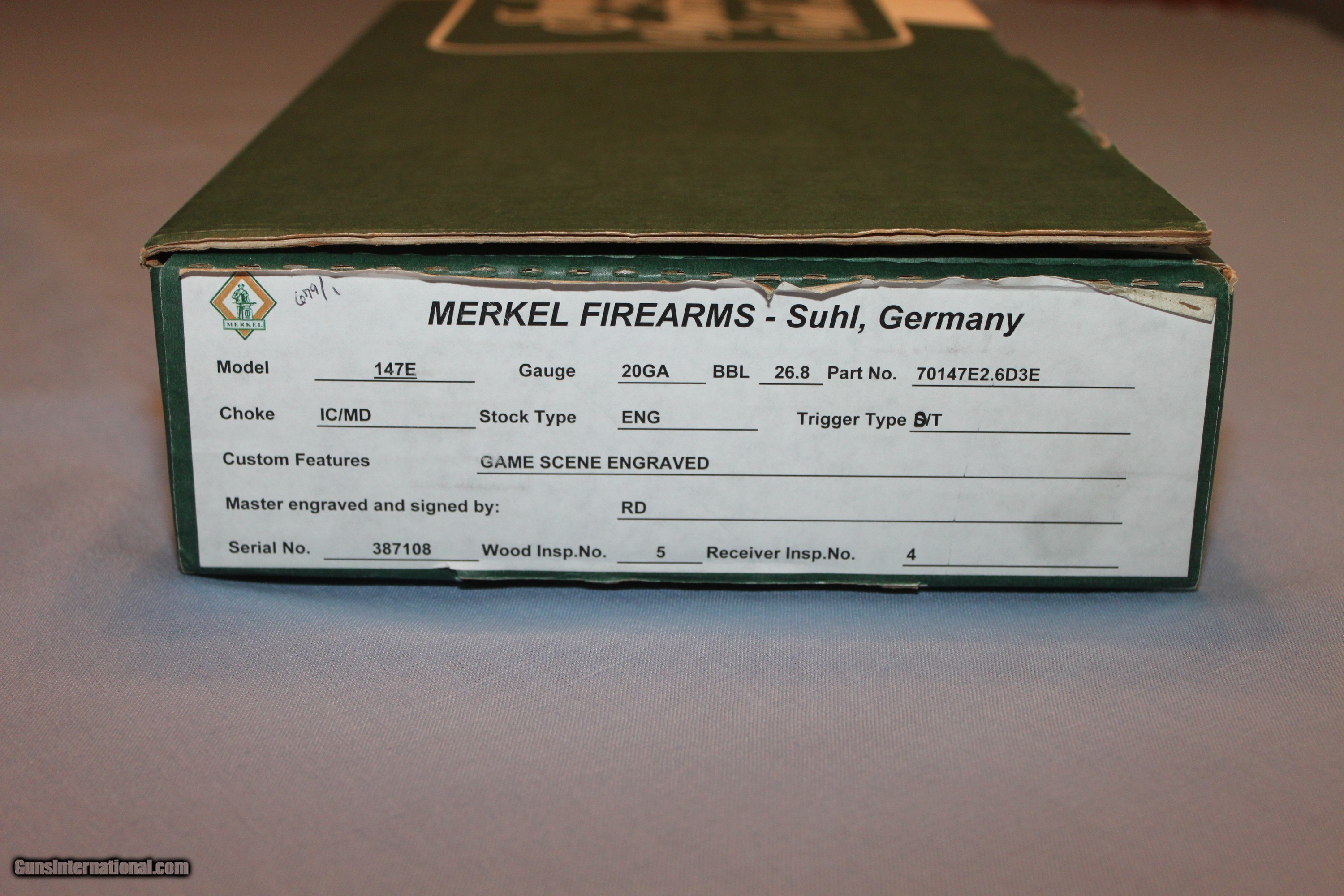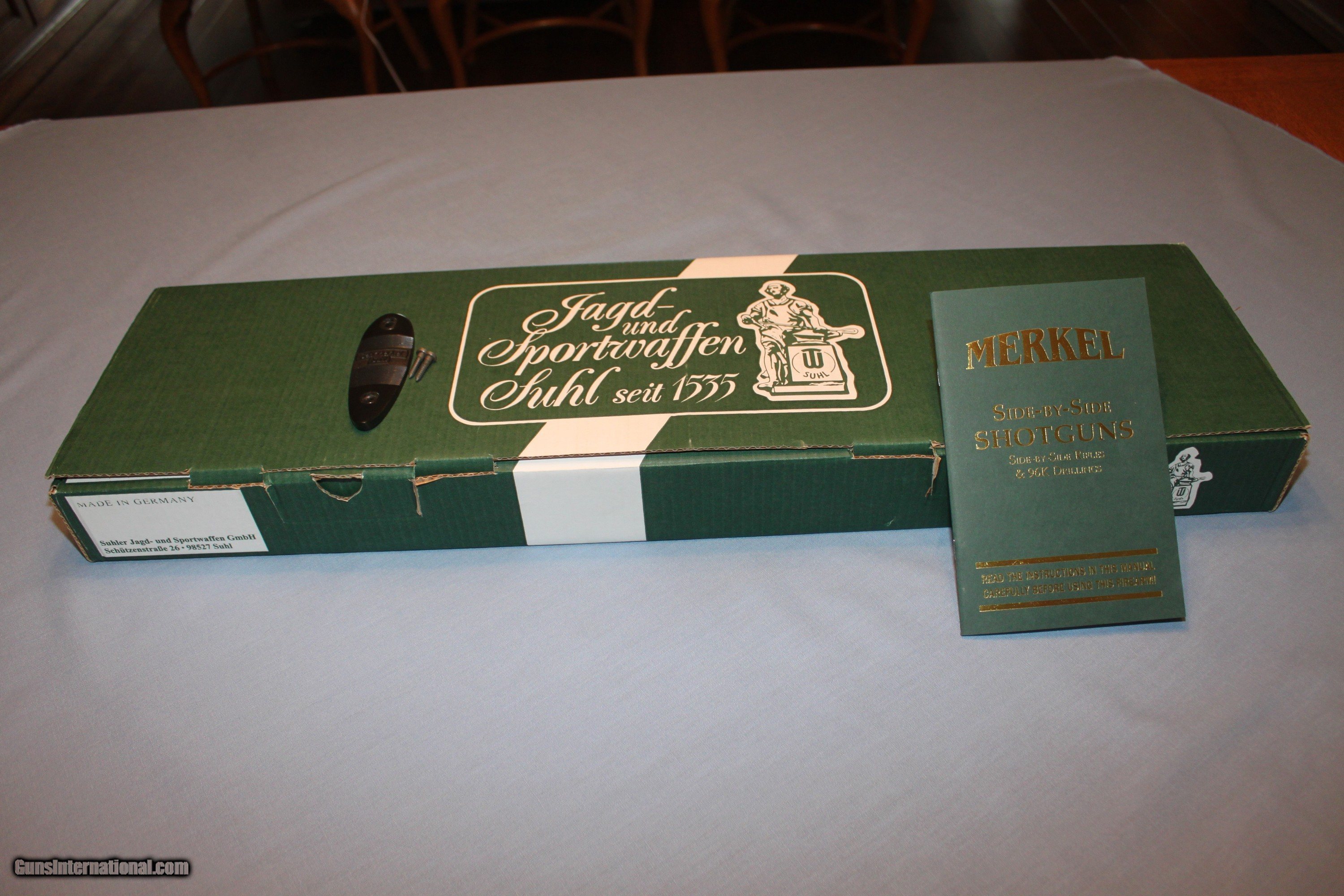 Description: Merkel 147E 20 gauge. 26 3/4" inch barrels improved / modified. Pachmayr recoil pad XLT Magnum added. No wood cut. Length of pull front trigger 15 inches. Rear 14 inches. Excellent condition some light handling marks on the wood SOLD |
