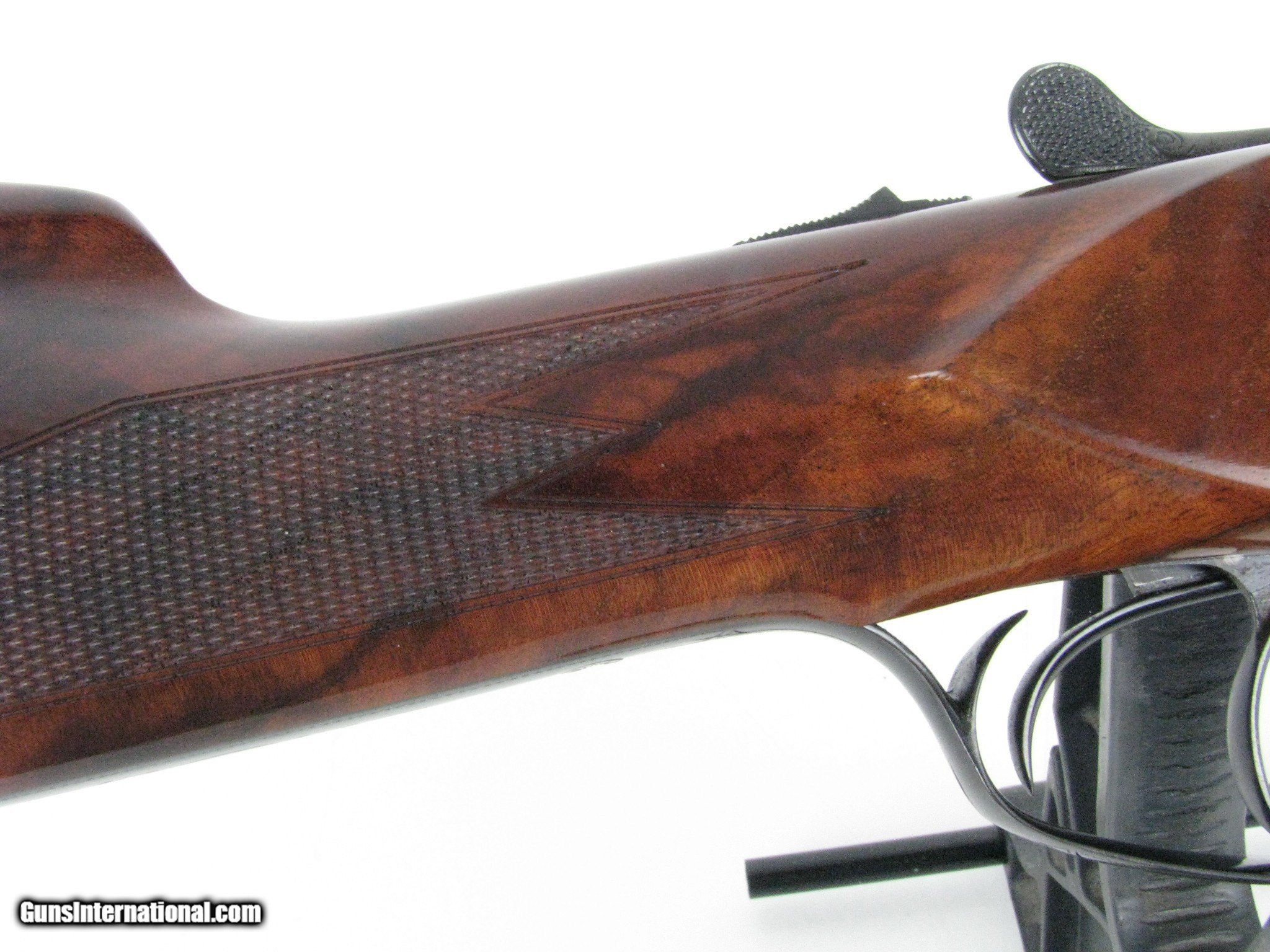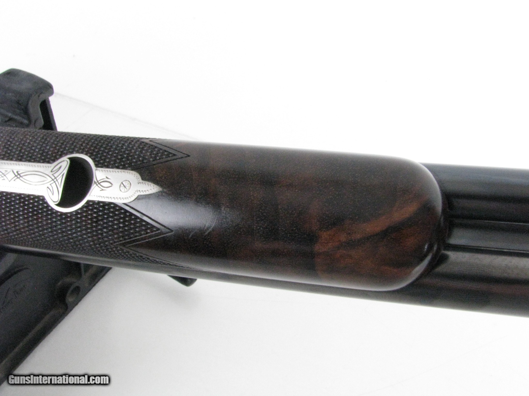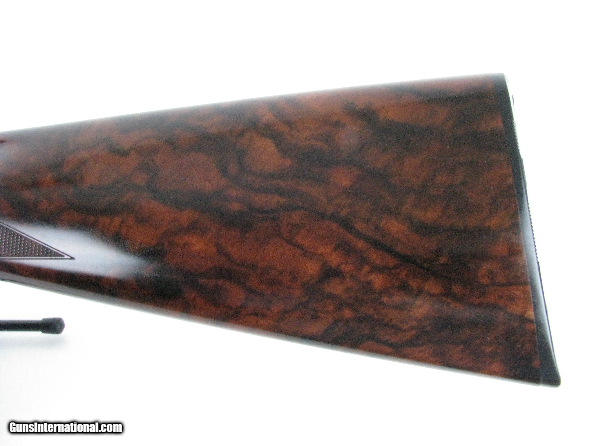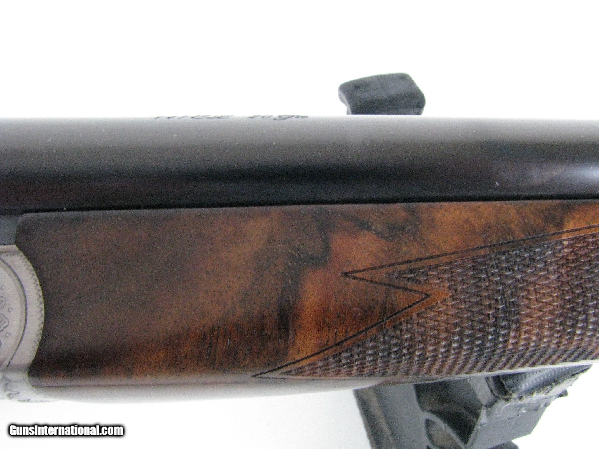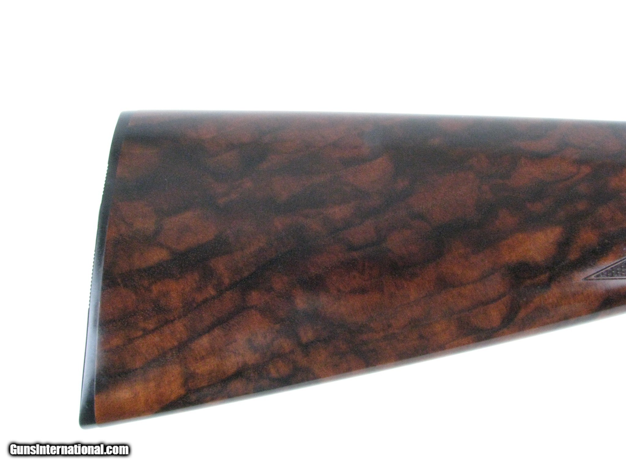 Description: This is a Merkel 147EL Side by Side shotgun chambered in 20 Ga. It is sr# 388442. This is a Greener side lock gun. It has 28" barrels with 3" chambers. The barrels have fixed chokes with one IC and the second Cyl. It has auto safety and ejectors. The length of pull is 14.5 & 13.5 inches long. The drop at comb is 1.75 inches, drop at heel is 2.75 inches. The bore is clean and shiny. The receiver is fully engraved with very nice game scenes. The factory checkered wood stocks are Turkish Walnut and are absolutely gorgeous with no visible cracks. Overall in wonderful condition with minimal signs of use. The lock up is very tight. Check out the pictures for all the details. More pictures available upon request. SOLD Shotgun Gauge: 20 Gauge Manufacturer: Merkel Model: 147EL Ejectors: Holland and Holland Condition: Mint Metal Condition: Mint Wood Condition: Mint Bore Condition: Mint Stock Comb: 1.75 Stock Heel: 2.75 Stock Cast: None Choke Left: IC Choke Right: Cyl Engraving: Factory |
