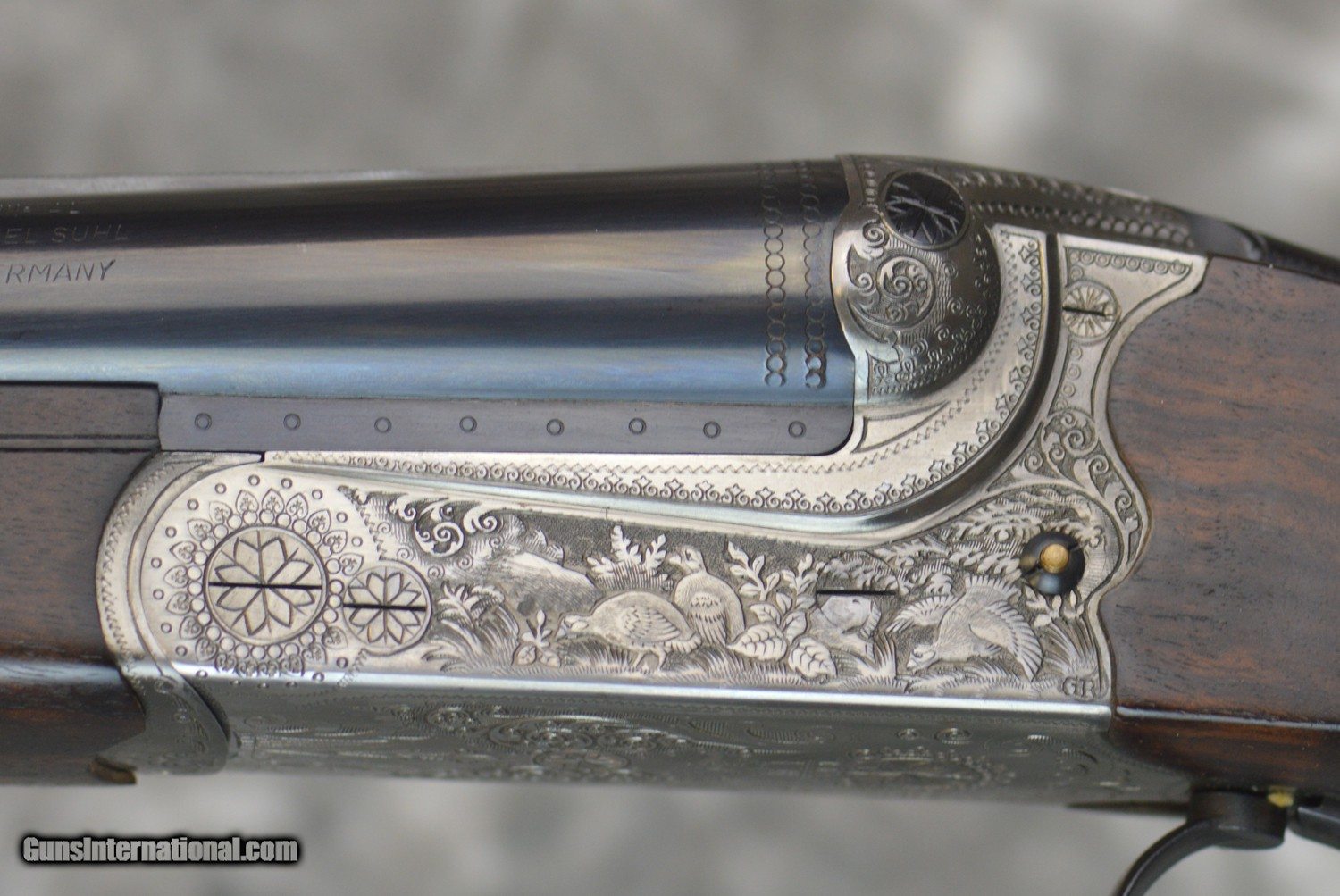 Description: Pre-Owned Merkel 147 EL Game 20GA with 26 3/4" fixed choke (IC/M) barrels, factory solid concave rib. Nickel finished action featuring deeply hand-engraved game scenes and scrolls. Factory single, selective trigger. Highly figured English straight-hand stock to factory removable butt plate, splinter forearm. Very minor handling marks in stock and forearm, includes factory canvas presentation case. Overall excellent condition. SOLD Shotgun Gauge: 20 Gauge |
