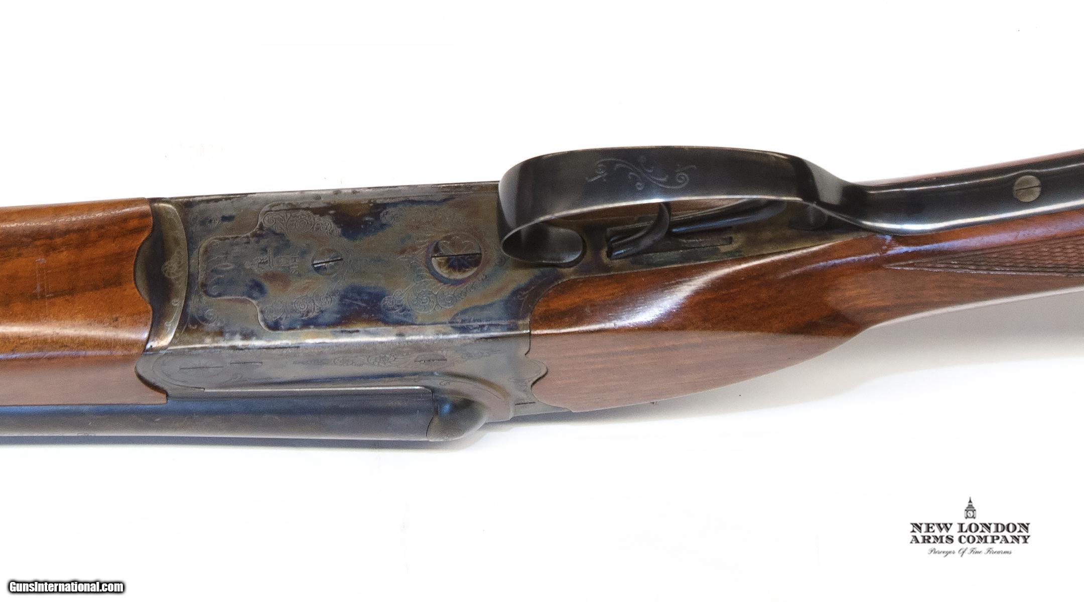 Description: This is a very tight little bird gun in excellent condition. It comes in its orginal Merkel factory canvas/leather case and includes the original shipping box serial numbered to the gun. I can tell you when owners take care of the box they take care of the gun! Includes: - Concave rib that is grooved and has a very nice look to it. - Sideclips and crossbolt. - English straight stock over a very nice horn Merkel butt plate. - Excellent case coloring. - Stock is very good with some handling marks. - Barrels are 28" and marked Krupp Steel. The best! Payment The listed price is for payment by certified funds, like money orders and certified checks. Most major credit cards are accepted for a 3% processing fee based on the price of the item(s) purchased. North Carolina residents are subject to applicable state sales and local sales taxes. Shipping and Handling New London Arms Company charges a fixed rate on all Shipments. The charge forrifles and shotguns is $45. We do not ship to California, Massachusetts, Maryland or New York State. Buyers should know the applicable laws and regulations in their state and city to ensure this item(s) is legal in their area. Other If you have questions please email us. Our address is - info at newlondonarms then com We are a Premium firearms dealer and are not open to the general public. Our store is open by appointment only. For buyers, this ensures you get a pristine, mint condition firearm that has not been ‘manhandled’. Our inventory is usually shipped out in the same box it arrived in. All Firearms are new in box unless otherwise specified All firearms, magazines, receivers and restricted law enforcement items are sold and shipped in accordance with all existing federal, state and local laws and regulations. Many of the firearms, magazines and parts for sale on this may be restricted or prohibited in your area. Please check your local and state regulations before purchasing. SOLD Manufacturer: Merkel SUHL Model: 1620 Serial Number: 385192 Chambers: 2 3/4 Ejectors: Yes Condition: Excellent Original Metal Condition: Excellent Wood Condition: Very Good Bore Condition: Excellent Barrels: 28 Barrel Type: Krupp Steel Action: Boxlock Triggers: Double Gauge Info: 16 Stock: English Straight Stock Comb: 1 1/2 Stock Heel: 2 1/4 Stock Cast: 1/4" RH Butt Pad: Factory Horn LOP: 14 1/2 Rib: Concave Grooved Weight: 6 #s Chokes: Fixed Choke Left: .015 LM Choke Right: .005 SK Case: Factory |