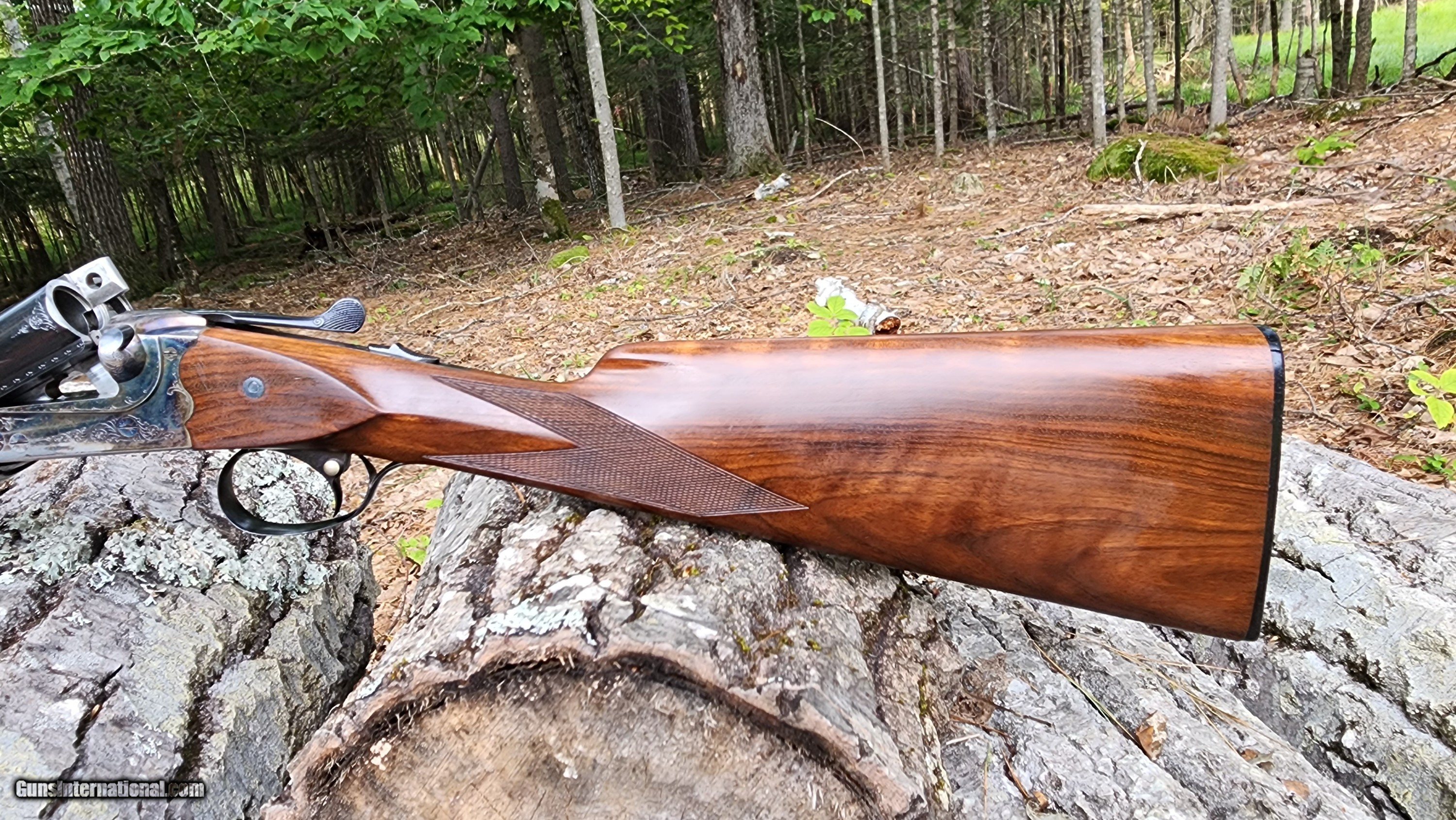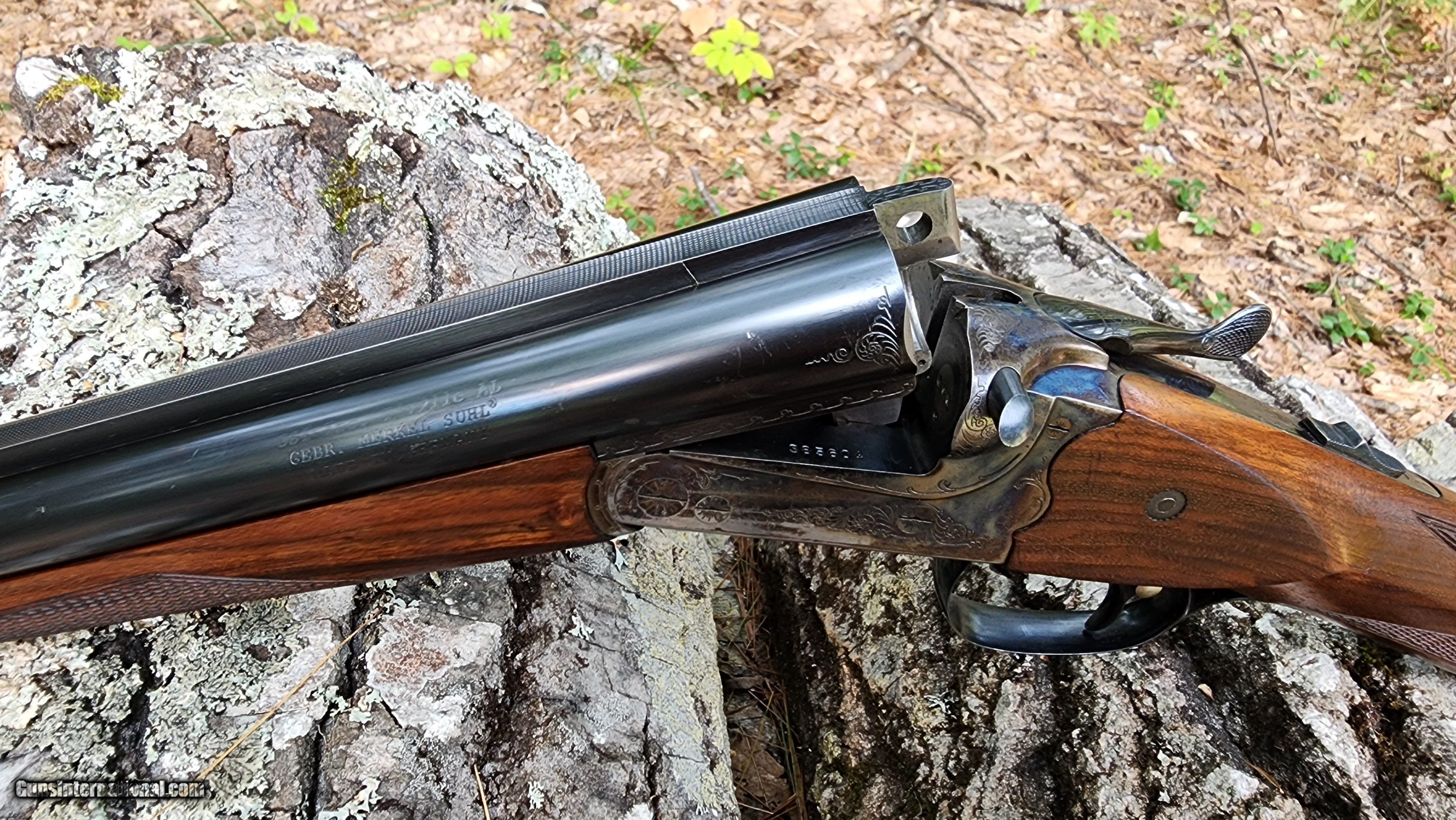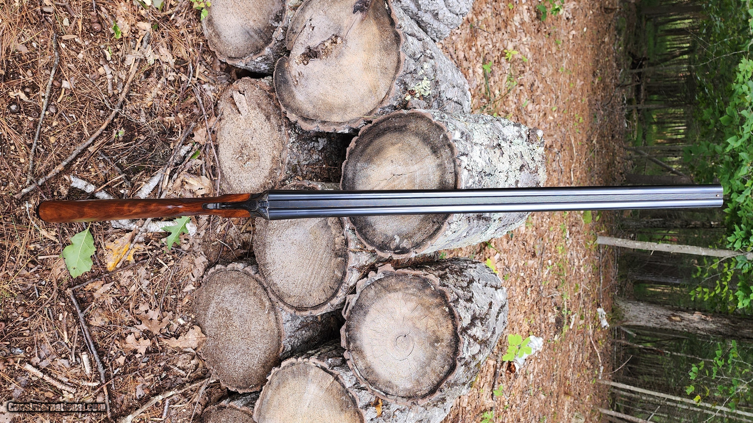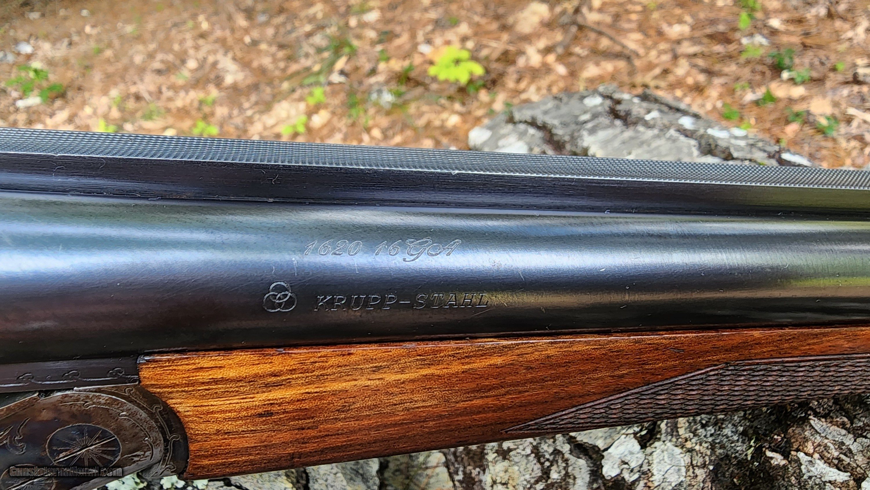 Description: Merkel 1620 is a 16ga built on 20ga frame, weighs 6lbs 2oz. 28" barrels with fixed chokes IC/M, 2.75" chamber. Single selective trigger. Ejectors. Splinter forend and English buttstock. 14-1/8in LOP. Light handling marks on the metal. Slight case color wear on receiver from hunting. Wood is in great shape. Canvas and leather Merkel breakdown case Electors. Side clips and intercepting safety sears. Greener cross bolt design. This is a perfect upland shotgun. Merkel no longer imports this model. SOLD Shotgun Gauge: 16 Gauge Manufacturer: Merkel Model: 1620 Barrel Length: 28 Chambers: 2.75 Ejectors: Yes |