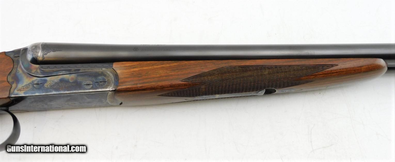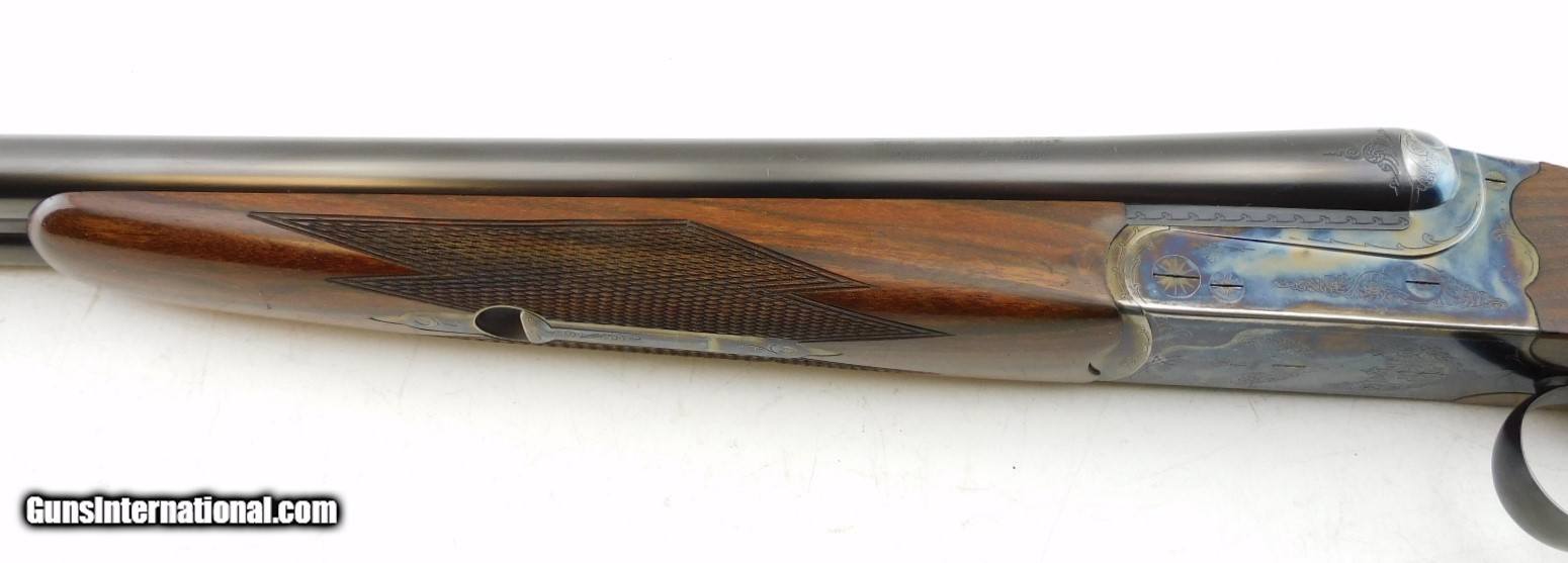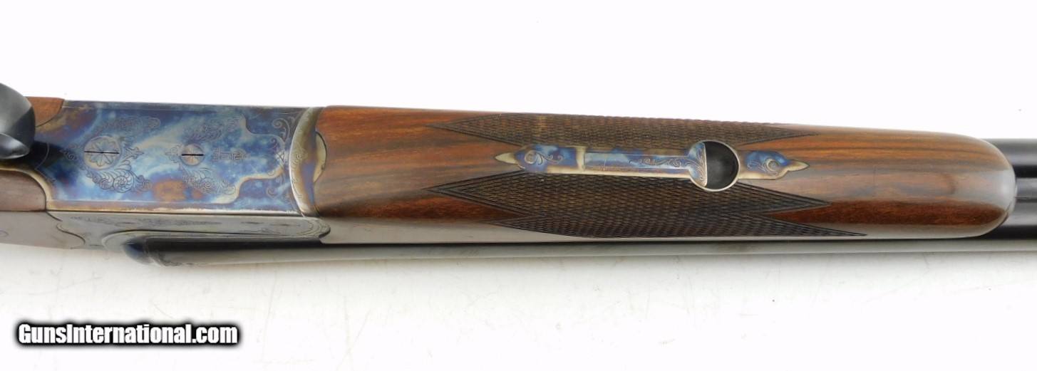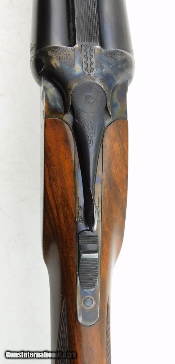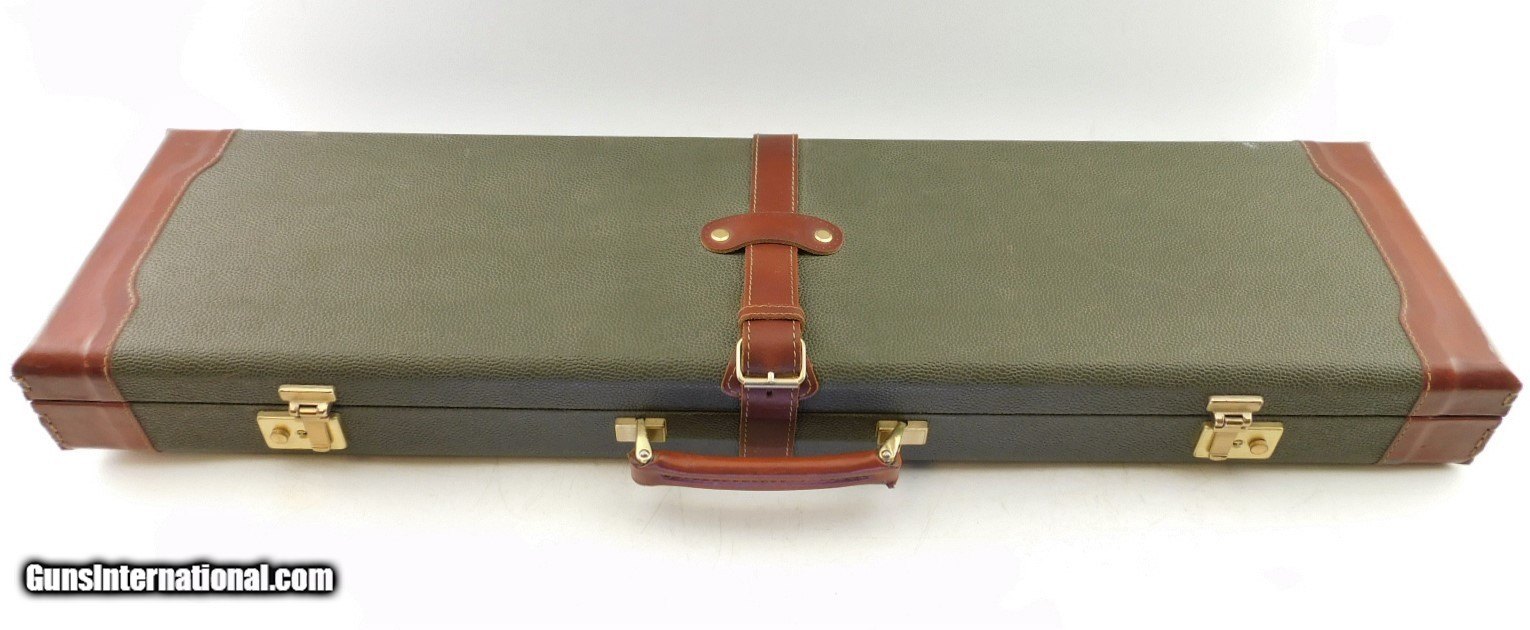 Description: Merkel 1620 SXS Field 16GA WCase, 28" bbls with fixed IC/M chokes, mirror bores, blued finish, etched color case hardened receiver, ejectors, very nice checkered straight wrist butt stock - forearm, LOP - 14", DAC - 1 5/8", DAH - 2 1/2",and black Merkel butt plate. Includes Merkel fitted luggage style case. Add 3% for Credit Card Shipping $35.00 SOLD |