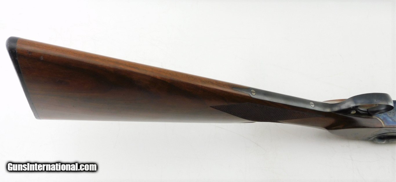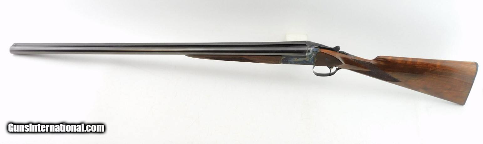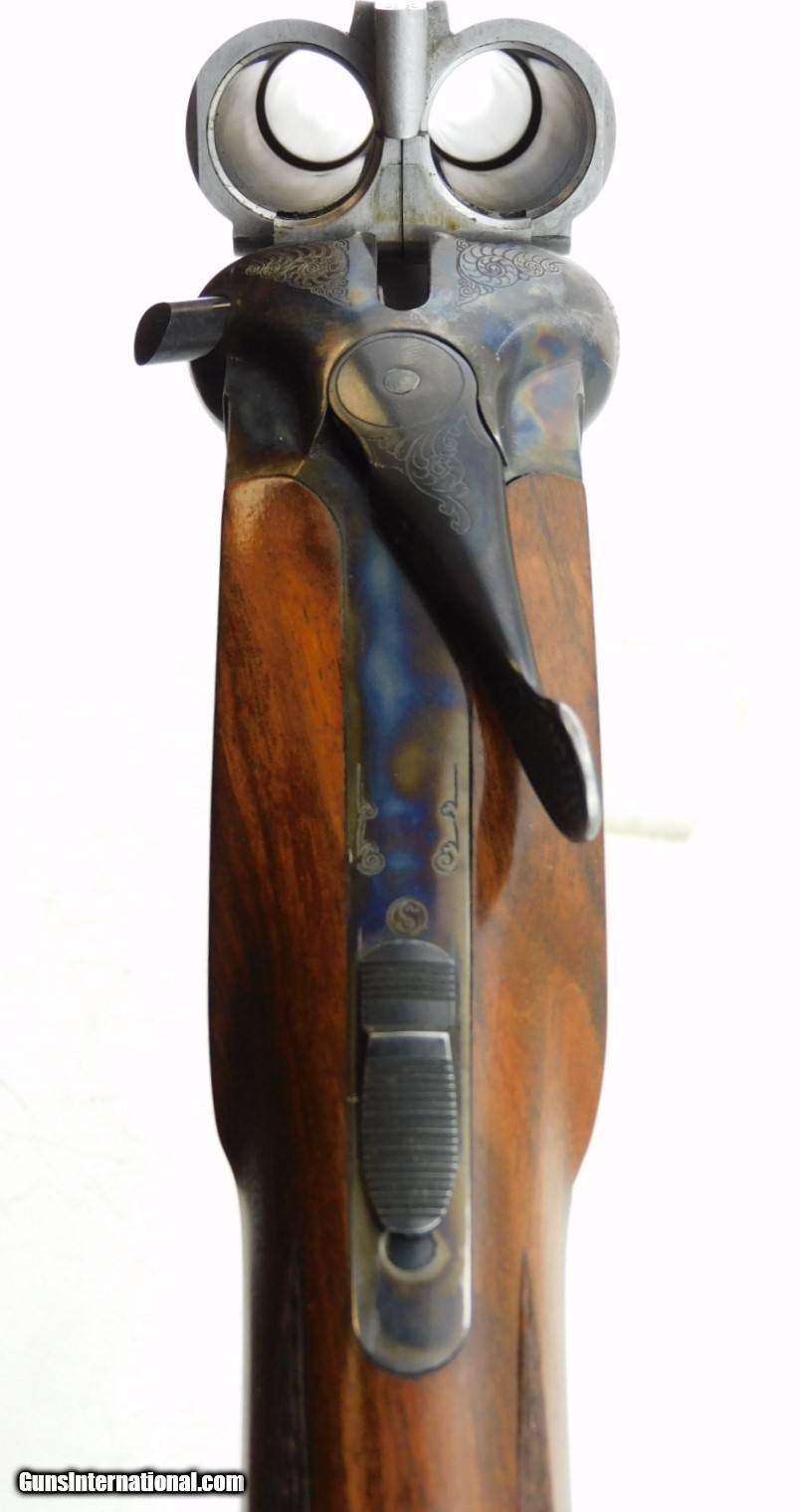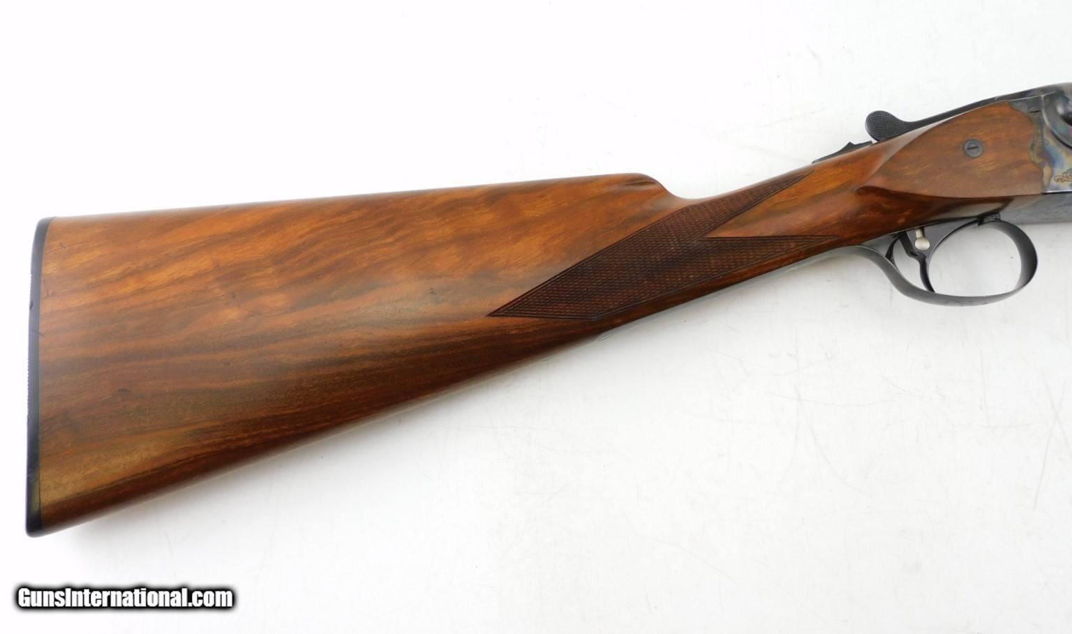 Description: Merkel 1620 SXS Field 16GA WCase, 28" bbls with fixed IC/M chokes, mirror bores, blued finish, etched color case hardened receiver, ejectors, very nice checkered straight wrist butt stock - forearm, LOP - 14", DAC - 1 5/8", DAH - 2 1/2",and black Merkel butt plate. Includes Merkel fitted luggage style case. Add 3% for Credit Card Shipping $35.00 SOLD |