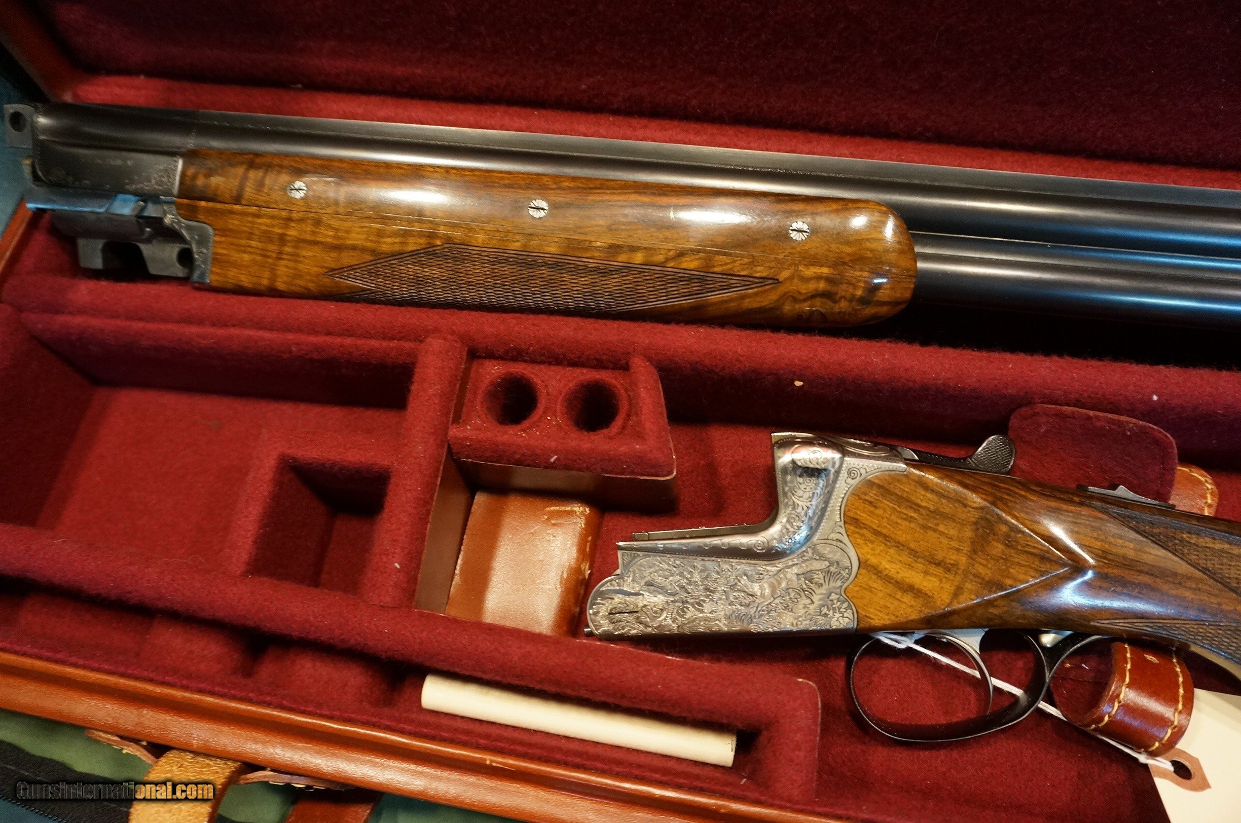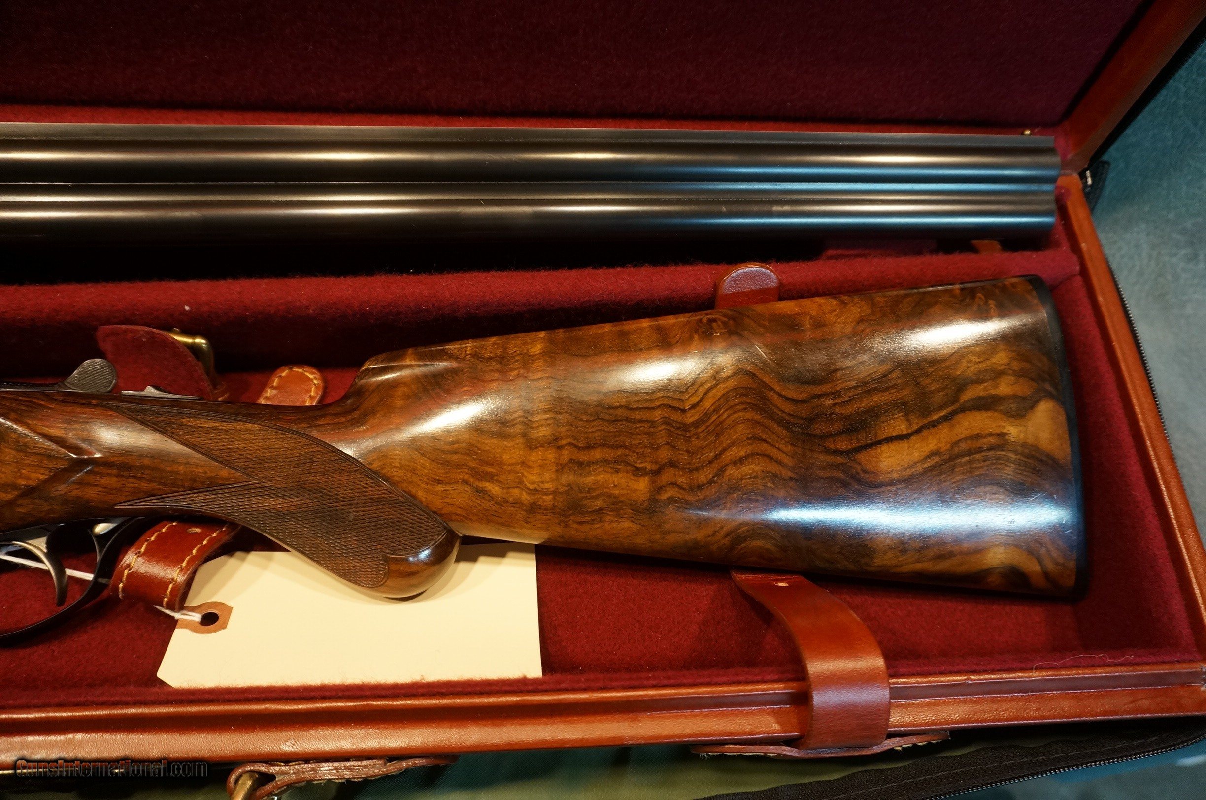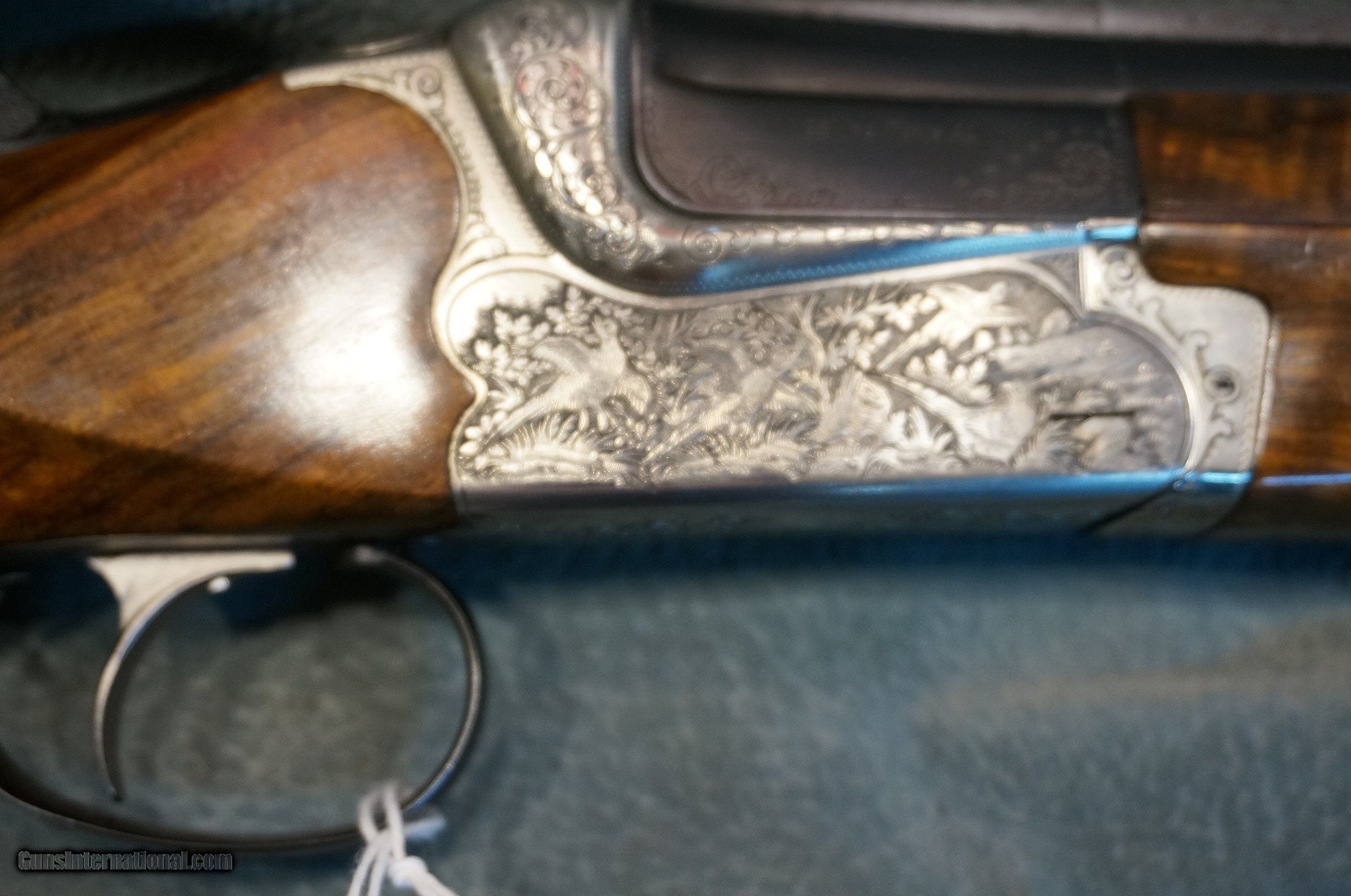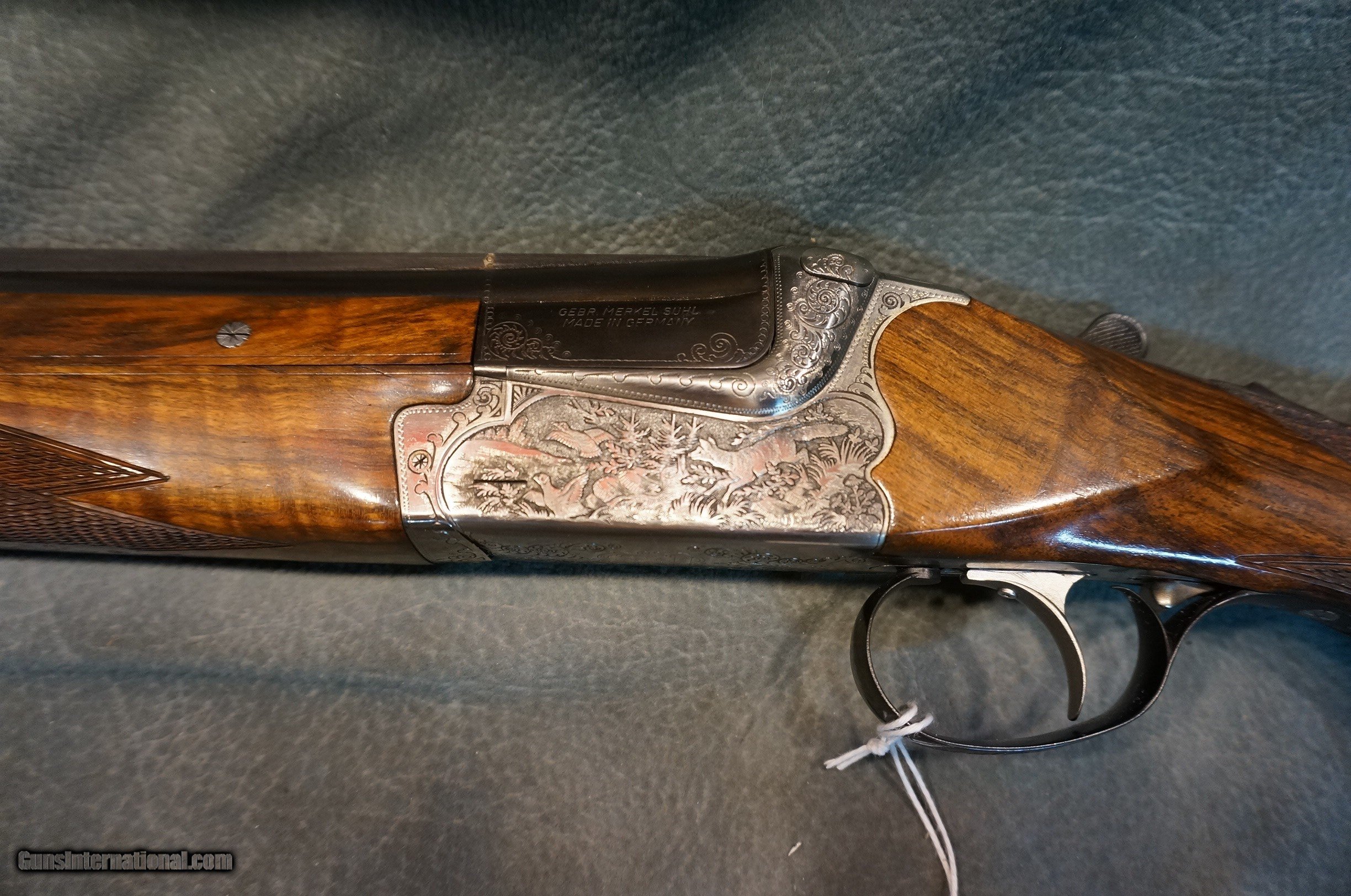 Description: Merkel 16ga Model 2116 EL,16ga 2 3/4" 28" single selective trigger,automatic ejectors,deluxe fancy Turkish Walnut stock with great figure,14 1/4" LOP,silver engraved receiver with scroll,pheasants on the right side and fox and grouse on the left side,excellent condition with leather case and overcase. GUN COLLECTIONS WANTED FOR CASH! We buy, sell, consign and trade new and used firearms.We will pay finders fees and travel for large collections. This is our 46th year in business. We offer 90 day layaways with 20% down. No return on layaways. Firearms will need to be transferred through a FFL dealer. Prices reflect a cash discount. There will be 3% added to credit card sales. We trade for gold and silver. THANK YOU! SOLD |