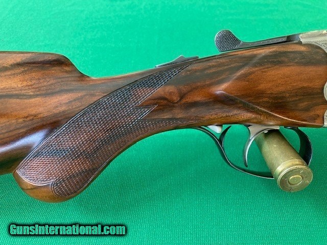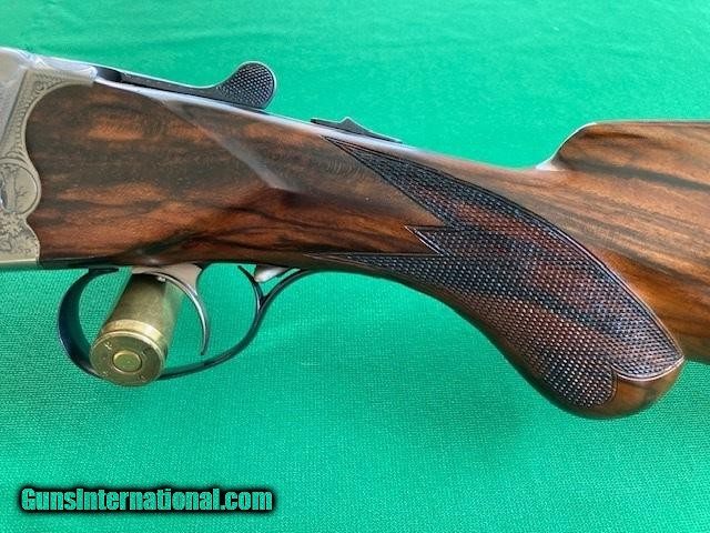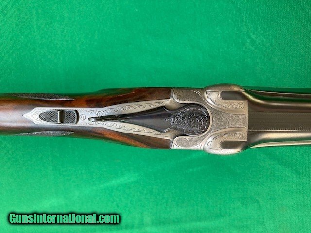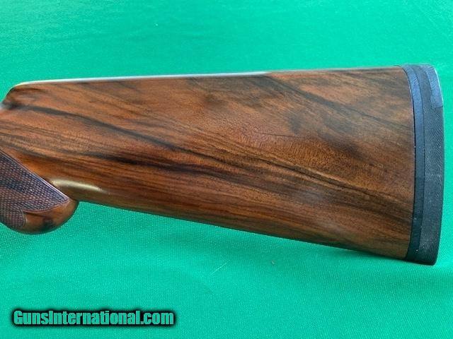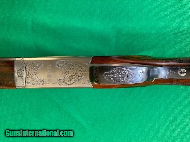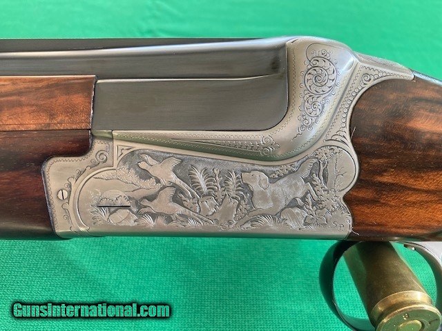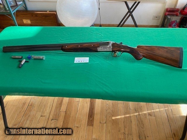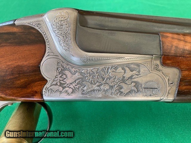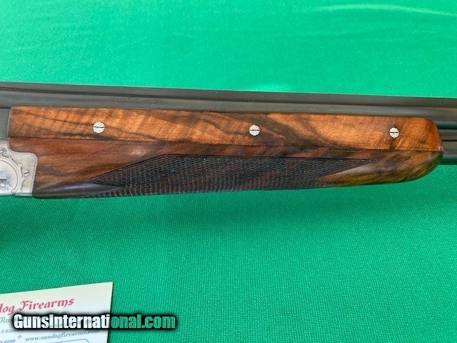 Merkel 2001EL 20 ga O/U shotgun. 28” bbls. Briley chokes (1-IC 1-M 2-SK) dbl Kersten cross bolt with Deeley three piece forearm latch, manual safety, adjustable single three position selective trigger. Bushed firing pins. 14 ¼” of LOP w/trigger in middle position. Prince of Wales round knob grip. Hand checkered Turkish walnut. Suzanne Pletheo Hand engraved: left side – setter flushing pheasants, rt side – four Hungarian partridges flushing. Used very little for hunting. Has handling and "safe-queen" scratches. no trades. email will get you quickest response. This is a very quick pointing, solid shotgun of the highest order.