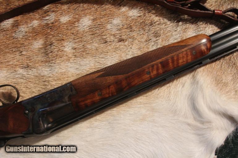 Description: A fine Merkel 20 gauge, 1-3/4" drop at comb, and 2-1/2" drop at heel, 28" barrels 200E, Merkel's double triggers offer the simplest, quickest, and most reliable method for instant barrel selection. This shotgun has a metal bead sight. Its wood and metal are in very good condition and its bore is in excellent condition.