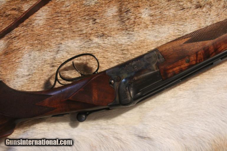 A fine Merkel 20 gauge, 1-3/4" drop at comb, and 2-1/2" drop at heel, 28" barrels 200E, Merkel's double triggers offer the simplest, quickest, and most reliable method for instant barrel selection. This shotgun has a metal bead sight. Its wood and metal are in very good condition and its bore is in excellent condition.