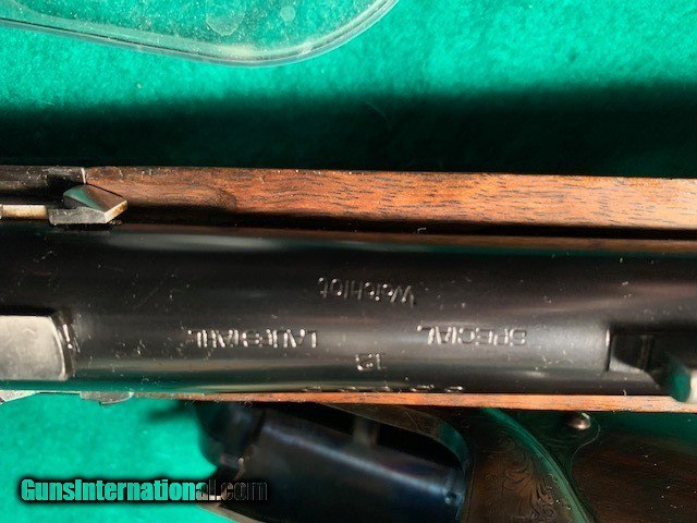 Description: Merkel 200E - 12GA, 28" barrels, 2 3/4 chambers, Full and tight IM. Weight 6lb 7oz. LOP 14 1/4 to 14 1/2 to the toe. 1 3/8 x 2 1/4 aprox dimentions. No factory cheek piece, double trigger, front articulated, made in 1952. Original and new 100% condition. Only 2 boxes of shells shot in this gun from factory. $2850.00 plus shipping to your FFL dealer. Best-offer-For more information call Rick at 973-478-5066. SOLD |