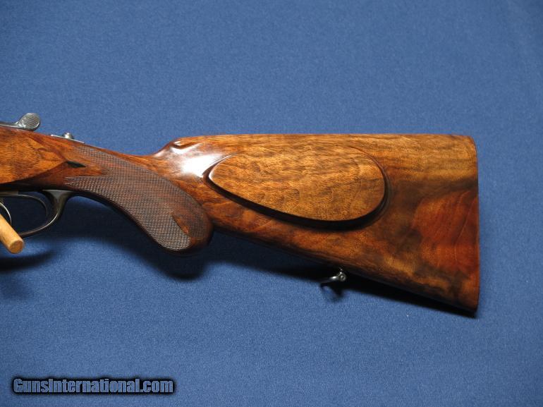 Description: Merkel Merco 201E 16 gauge. 28 1/2 barrels. Full and Full. .038 & .041. Double triggers. Automatic ejectors. 2 3/4 chambers. Scalloped frame. 3 piece forearm. 14 3/4 LOP checkered butt. 1 1/2 comb 2 3/4 heel. Side cheek. 97-98%. Horn trigger guard. 6lbs 5oz. SOLD |