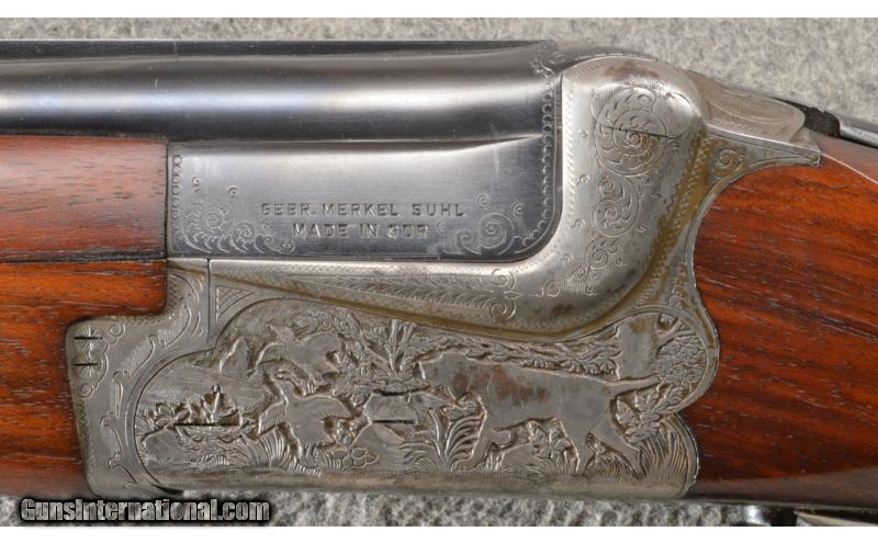 Description: This is a very nice used Merkel 201 Scalloped Boxlock over/under with 2 3/4 inch chambers and ejectors. The 28 inch blue barrels are in close to new condition with very minor blue wear and a raised solid rib. The fully engraved receiver is also very nice with no issues. The walnut stock and matching 3 piece forearm are a good grade with nice grain and only a few small field dings. This nice shotgun was made in the GDR. SOLD Caliber Info: 12 Gauge. Chambers: 2 3/4 inch over/under with ejectors. Metal Condition: Very good with very minor wear. Wood Condition: Very good with a few small dings and dents. Bore Condition: Bright and shiny. Barrels: 28 inch blue with a solid rib. Triggers: Double trigger. Stock: Very nice walnut with a checkered straight grip. Stock Dimensions: 14 1/2 inch LOP to the front trigger, 1 1/2 inch DAC and 2 1/4 inch DAH. Fore End: Three piece matching checkered walnut. Butt Pad: Black Merkel butt plate. Weight: 6 Lbs. 13 Oz. Sights: Ivory color front bead on the solid rib. Chokes: Fixed IM and IC. Item Location: Mitchell, SD |