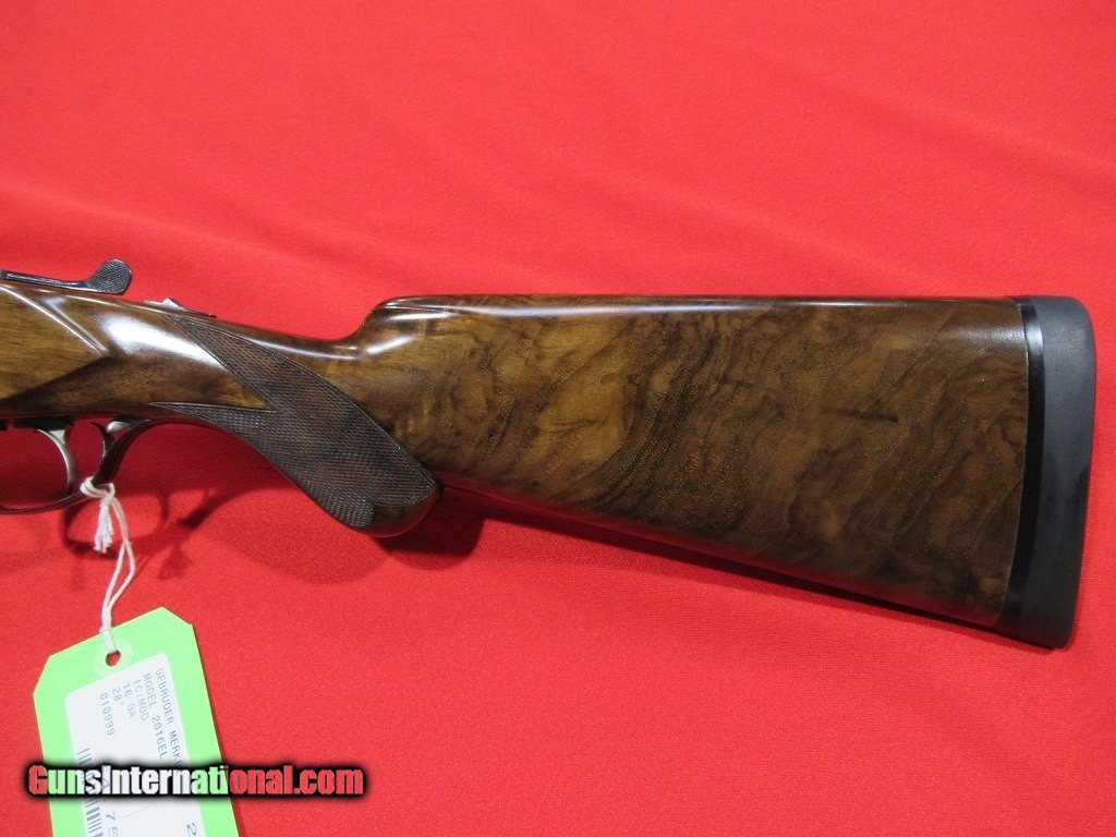 Description: Merkel 2016EL 16ga/28" Mod/Full -- Scalloped receiver with vivid factory color case, cocking indicators, single selective trigger, solid rib, three-piece forened, and 14 3/8" lop over an after-market pad. This gun has some extremely light field wear to the stock. All-in-all this gun is in very good condition. SOLD |